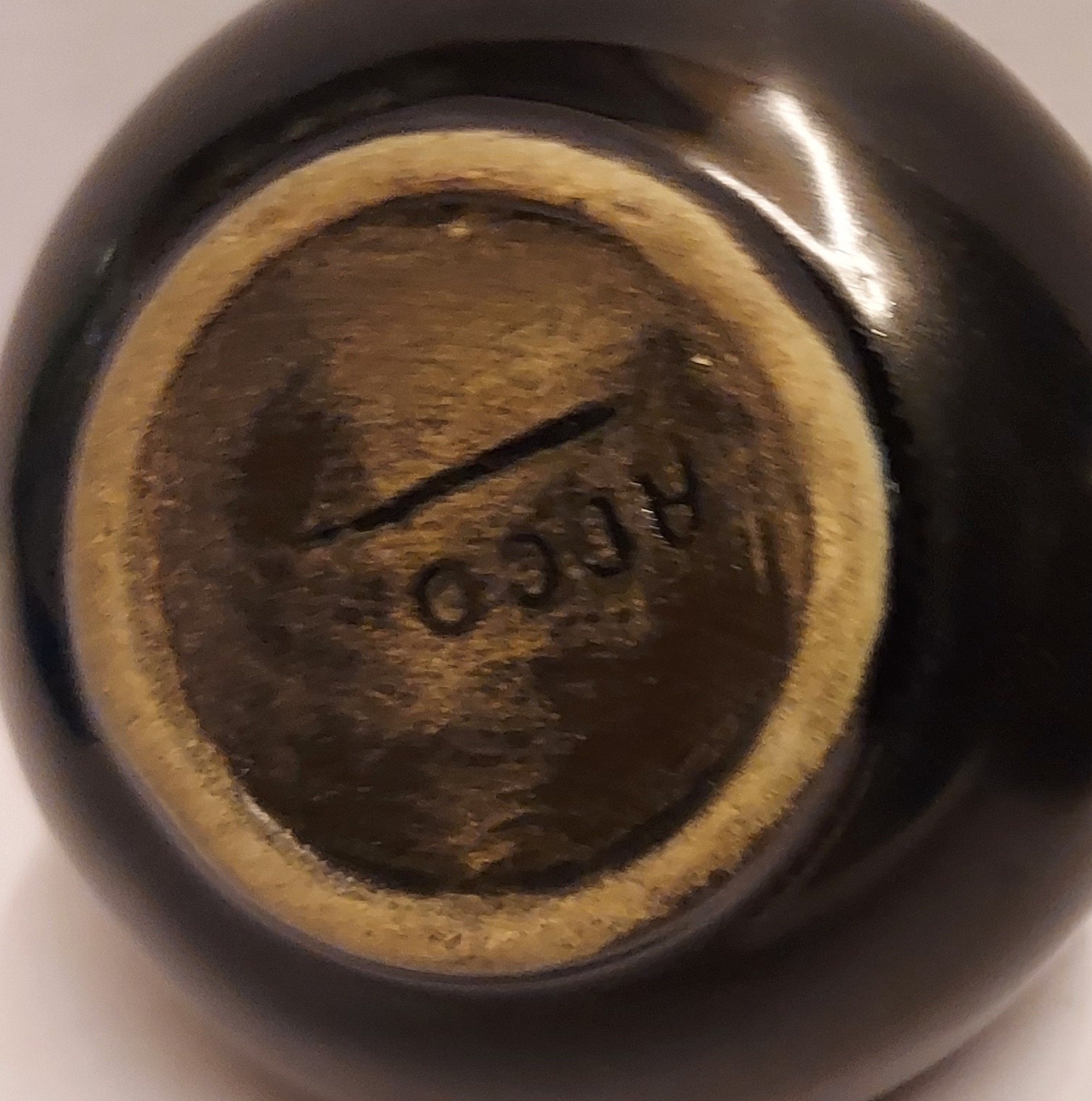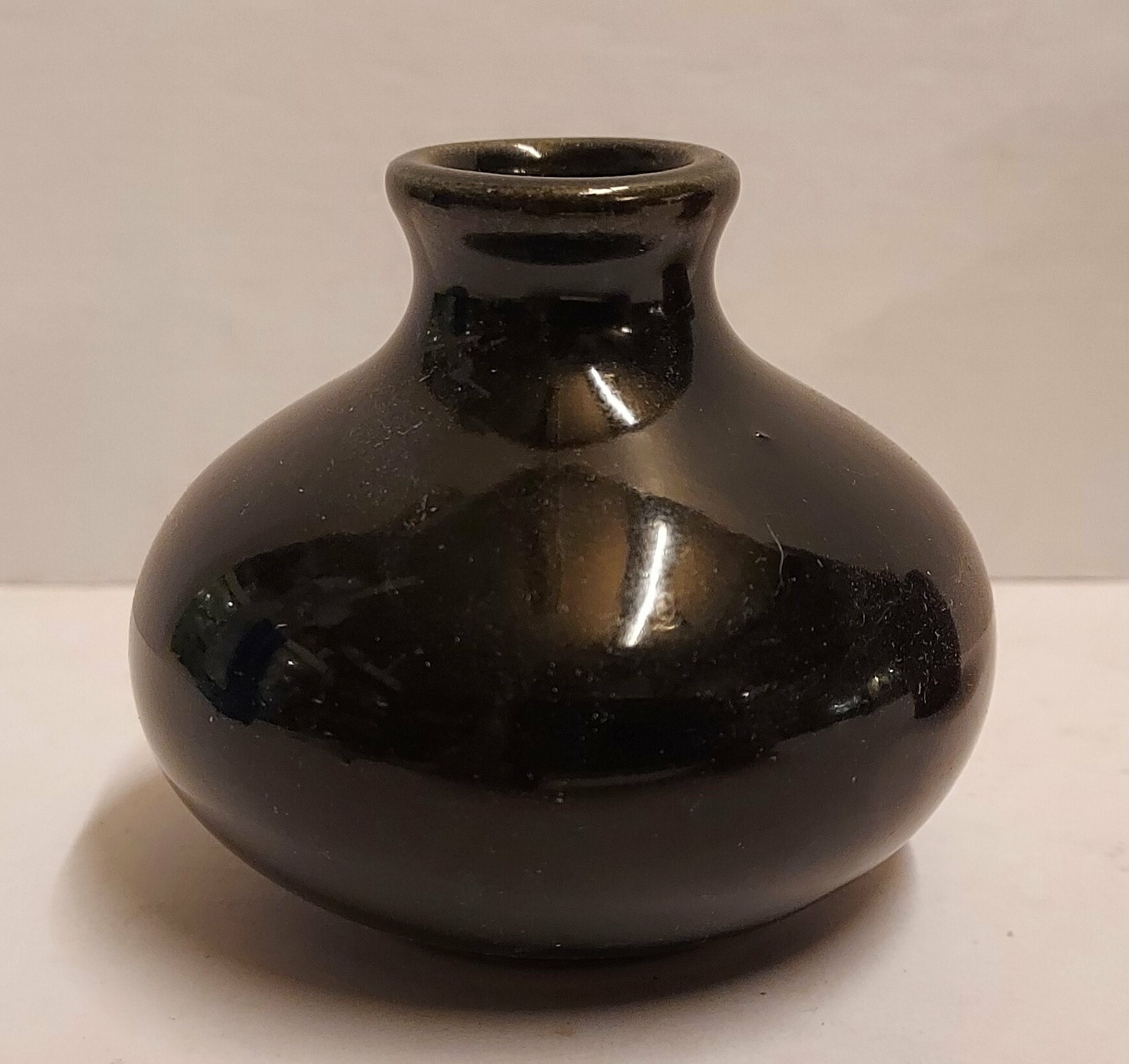 Schwarz glasierte Miniaturvase. Unterseite markiert.
