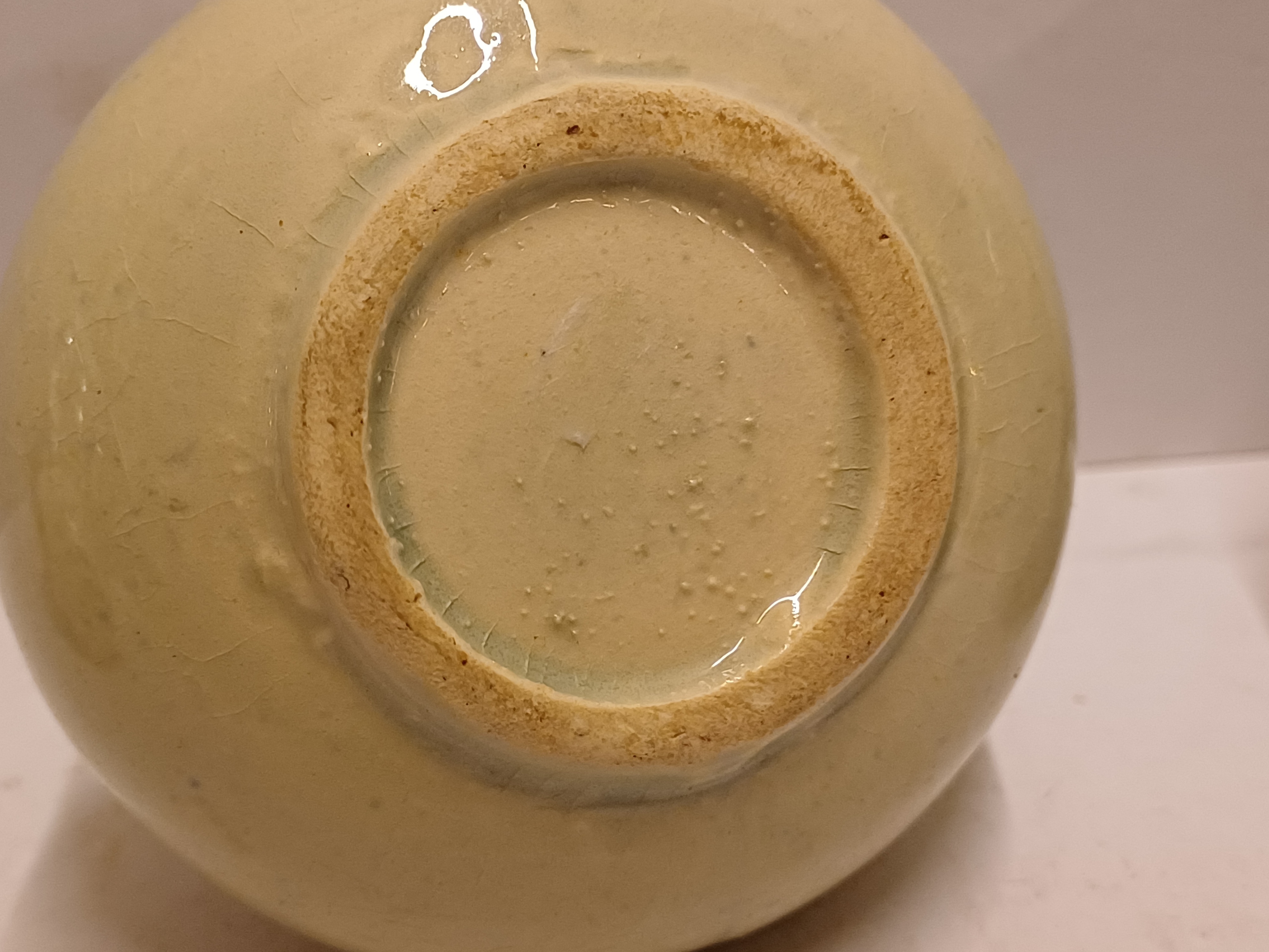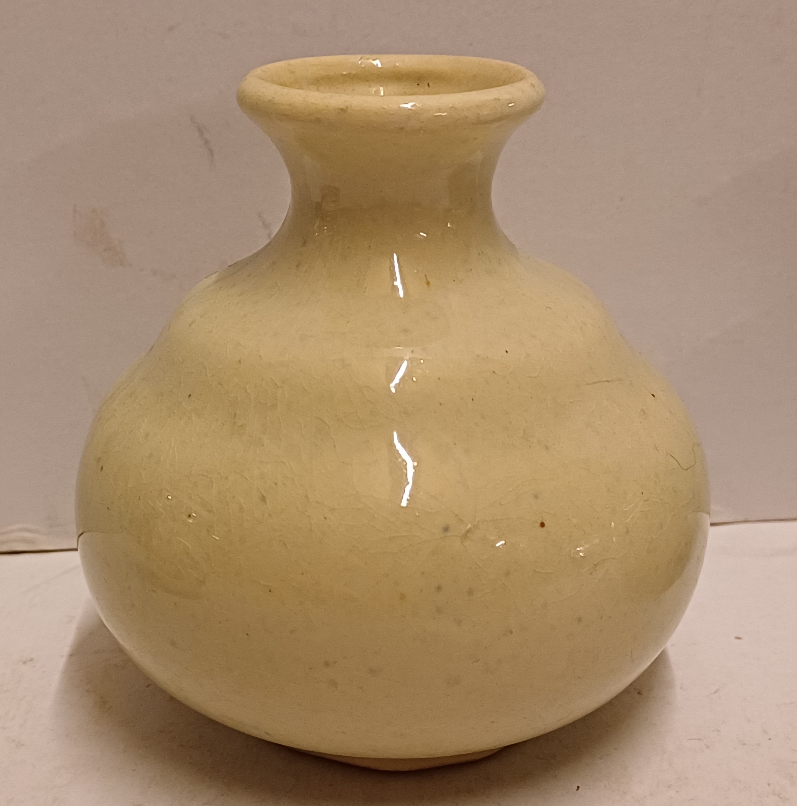 Miniaturvase mit cremefarbener Glasur. Nicht signiert.