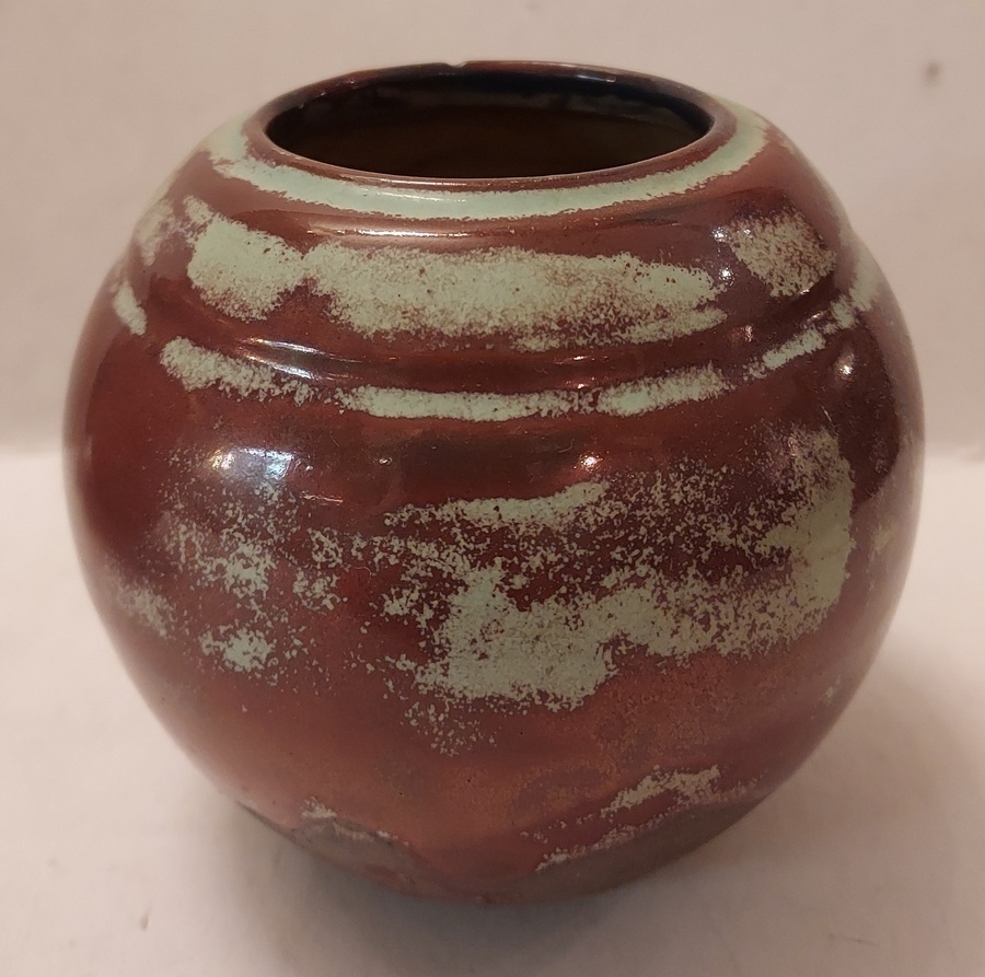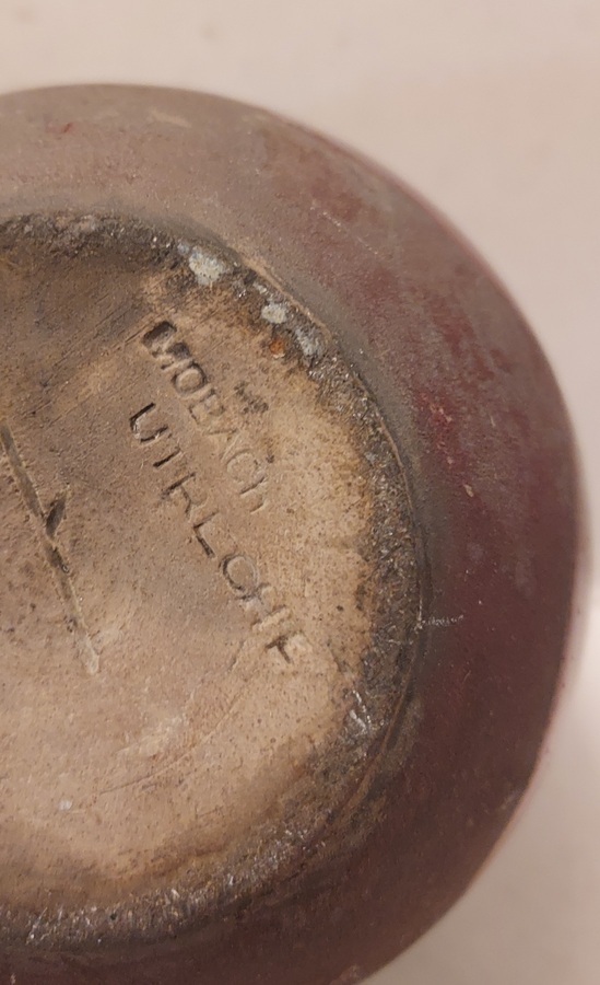 Väschen mit rotbrauner Glasur. Unterseite mit gestempeltem Markenzeichen.