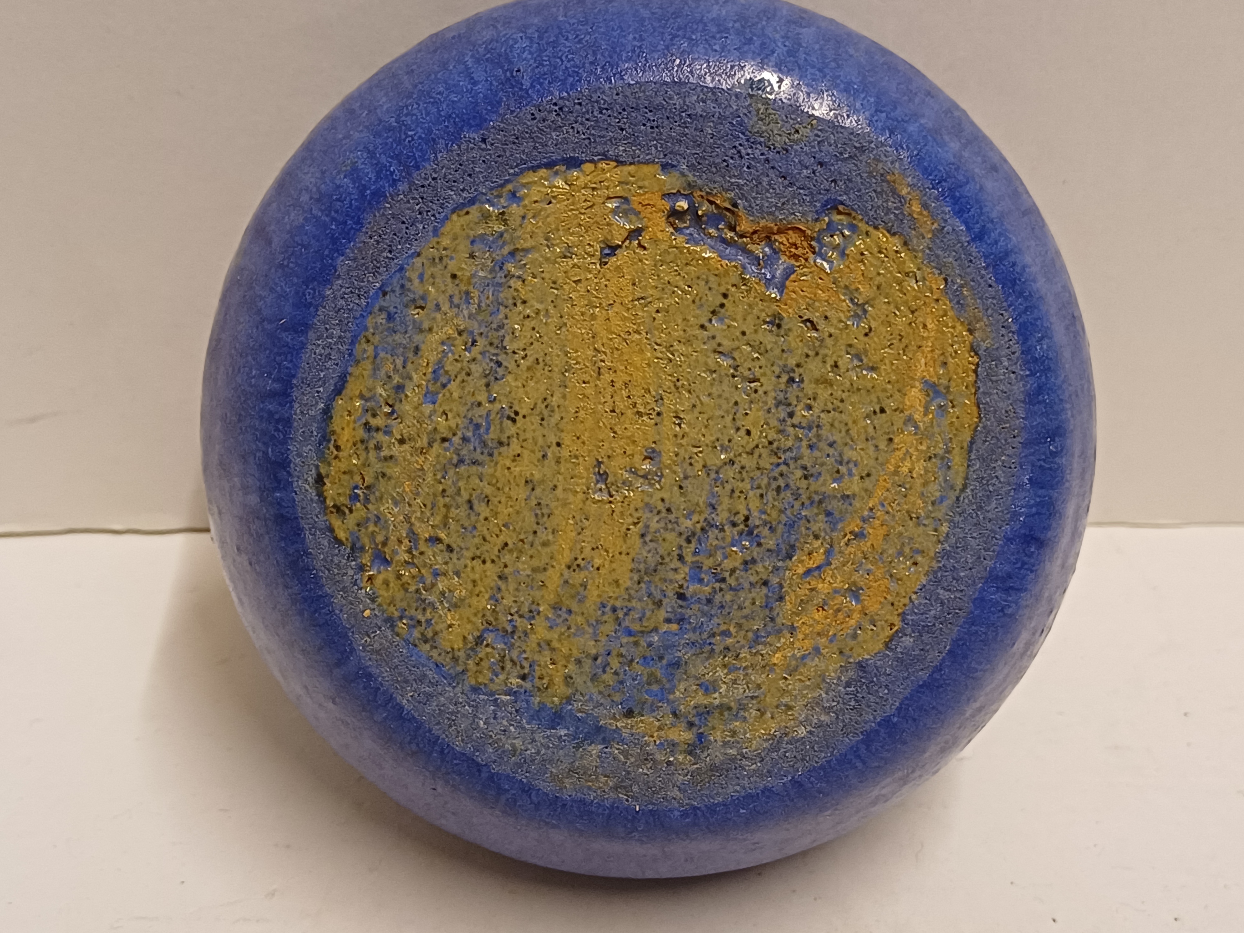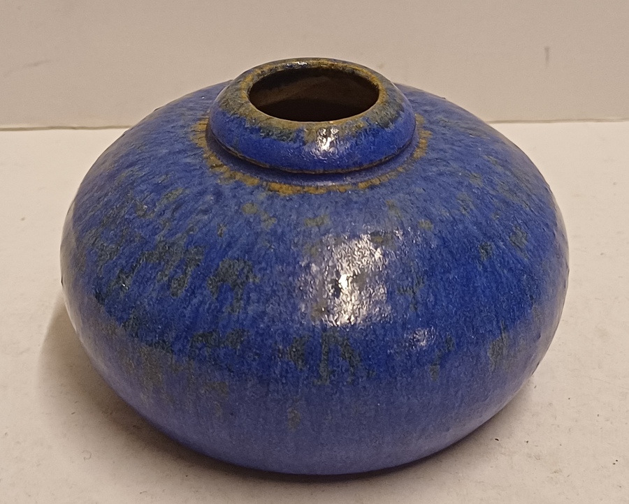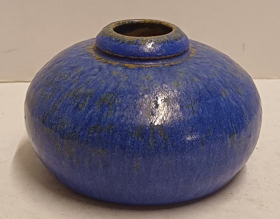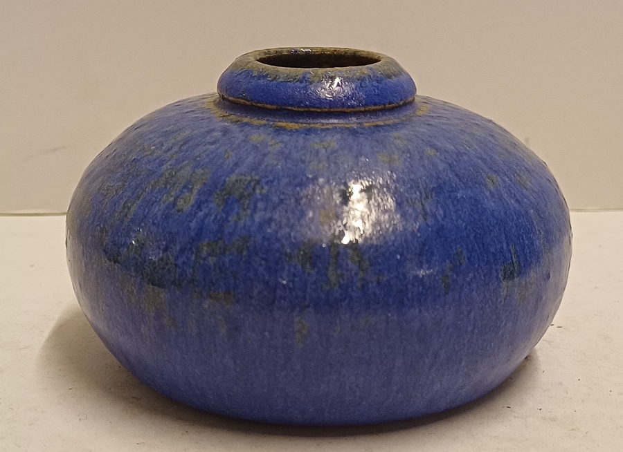 Kleines flaches Vasen mit Kobaltblauer Glasur. Nicht signiert.