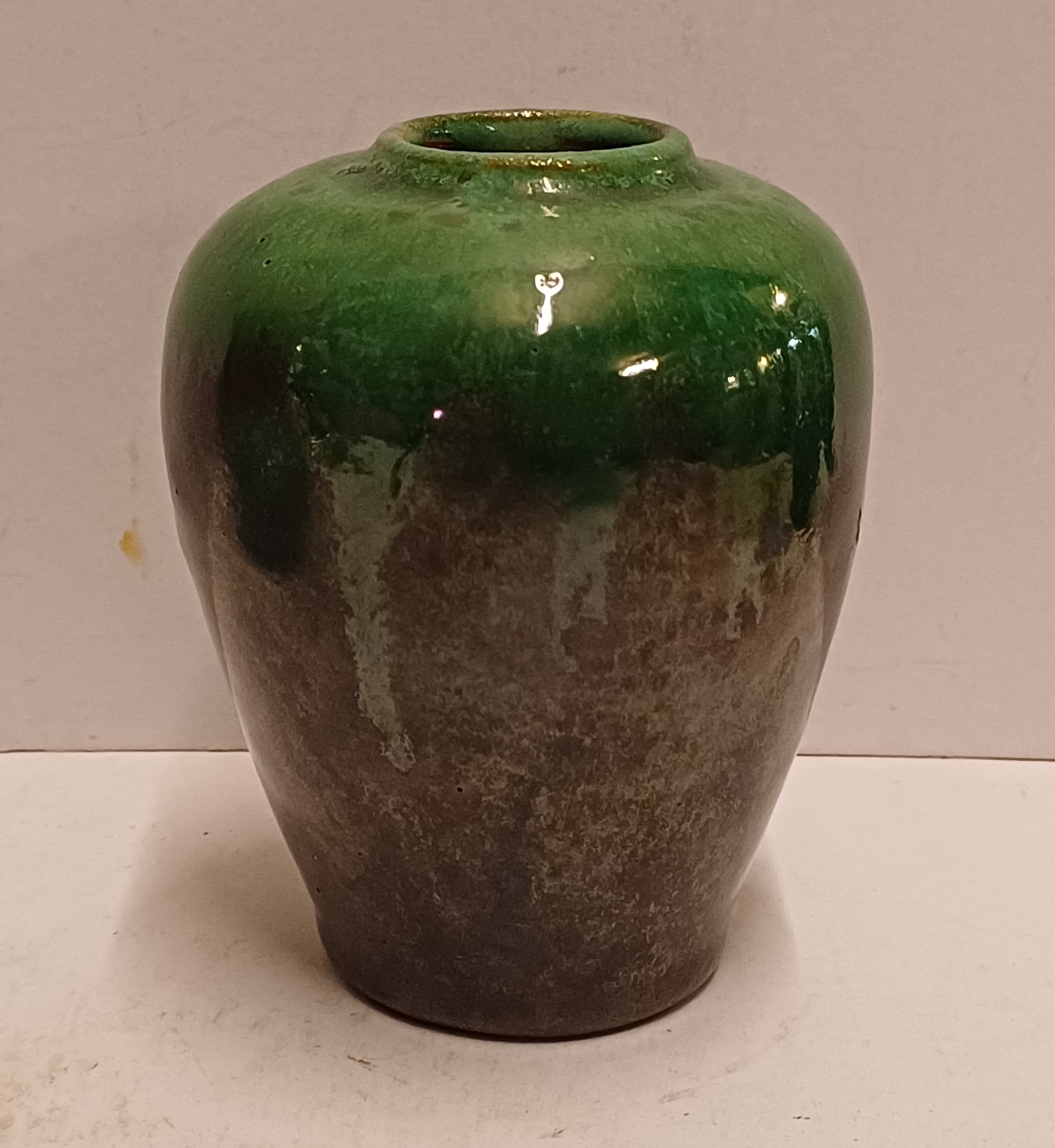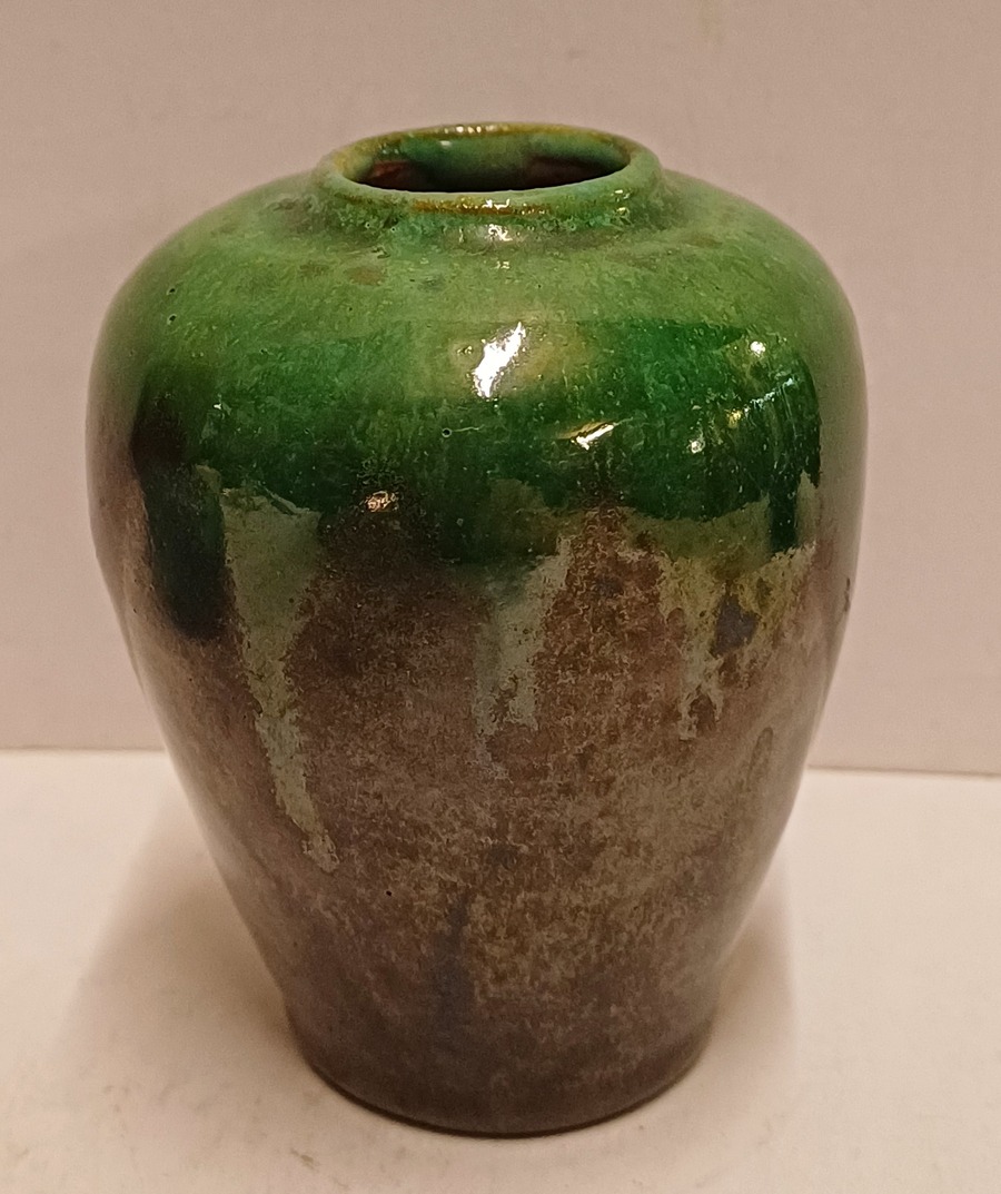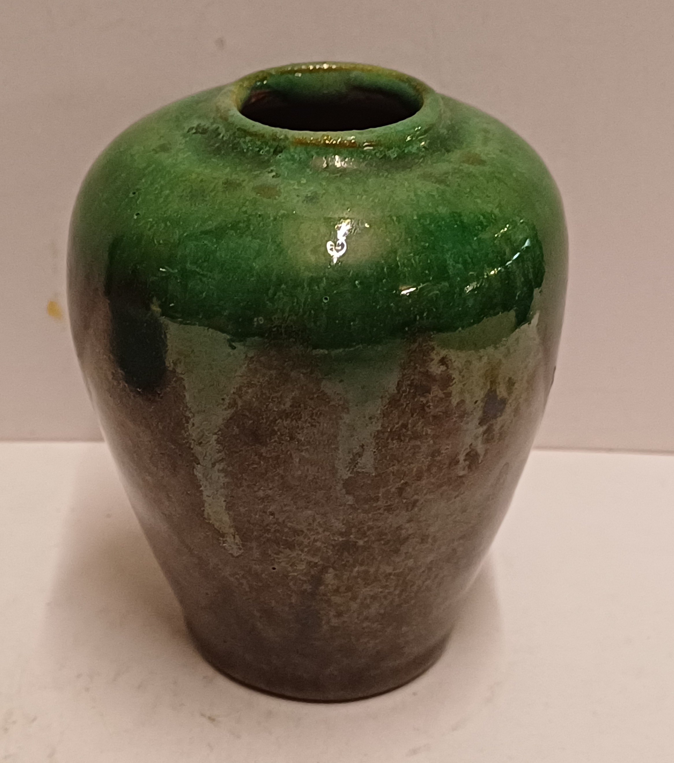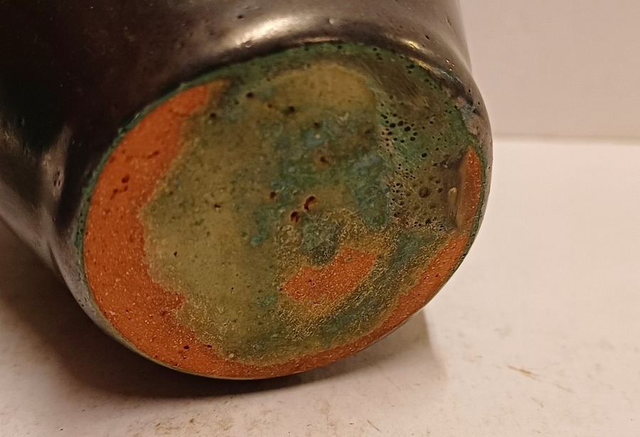 Keramikvase mit grün-schwarzer Glasur. Nicht signiert.