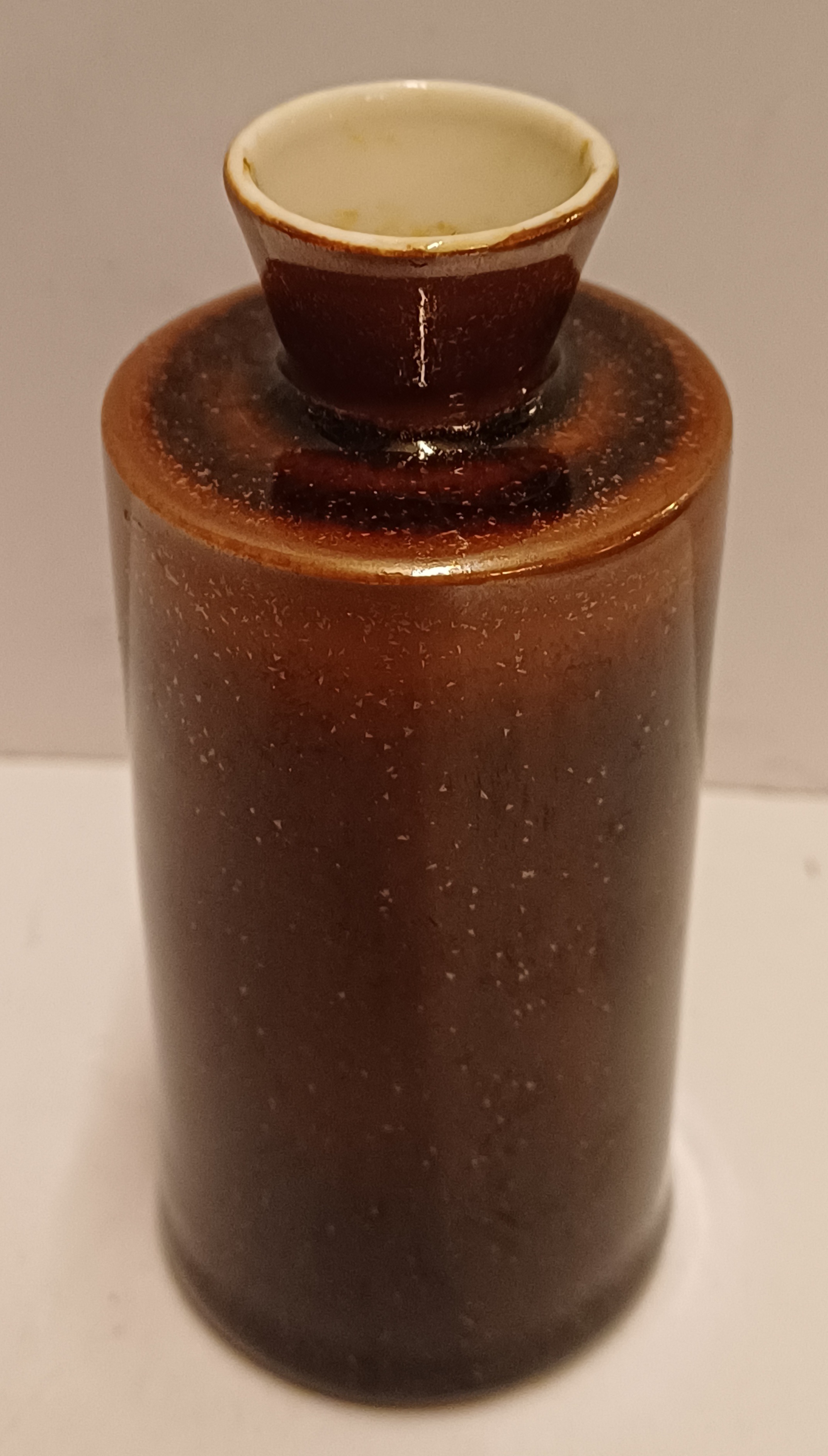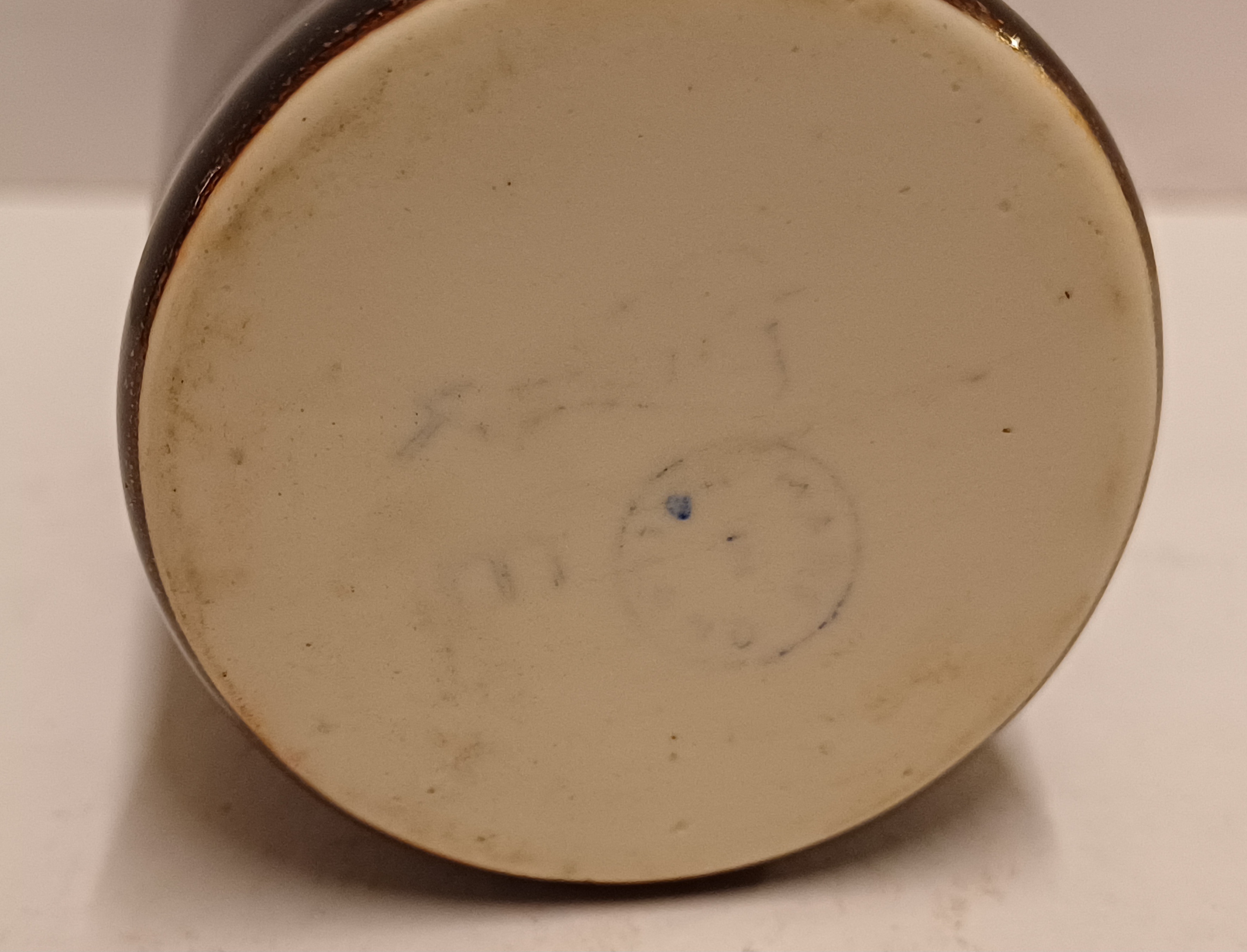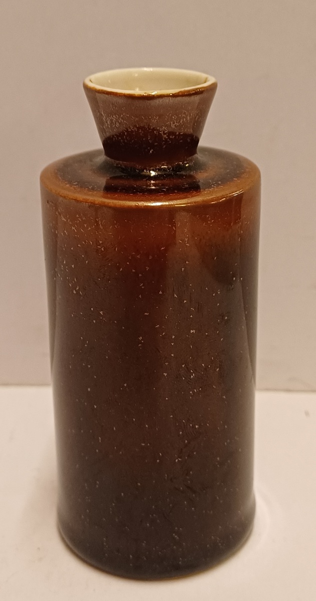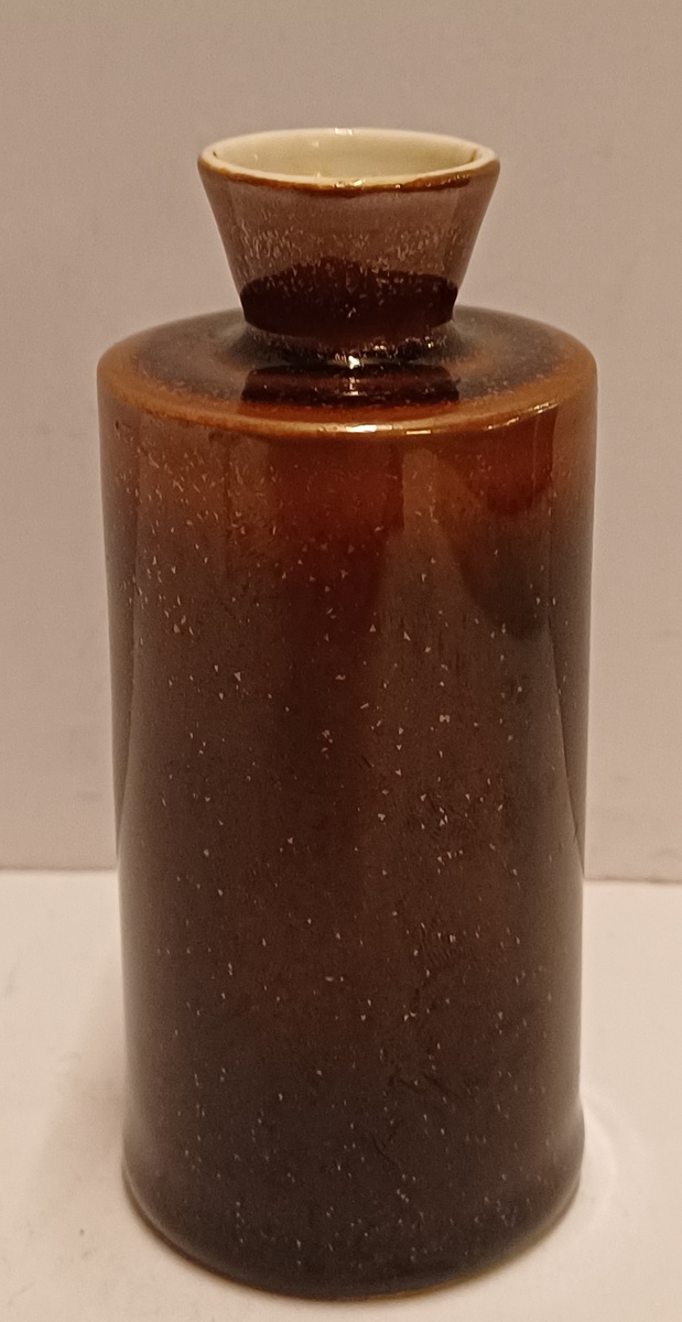 Weiße Porzellanvase mit brauner Tenmoku-Glasur. Unterseite mit schwachem Fabrikzeichen, Entwurf Han Knaap.