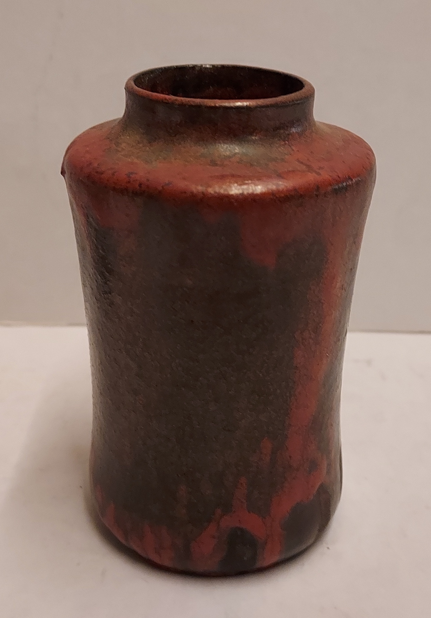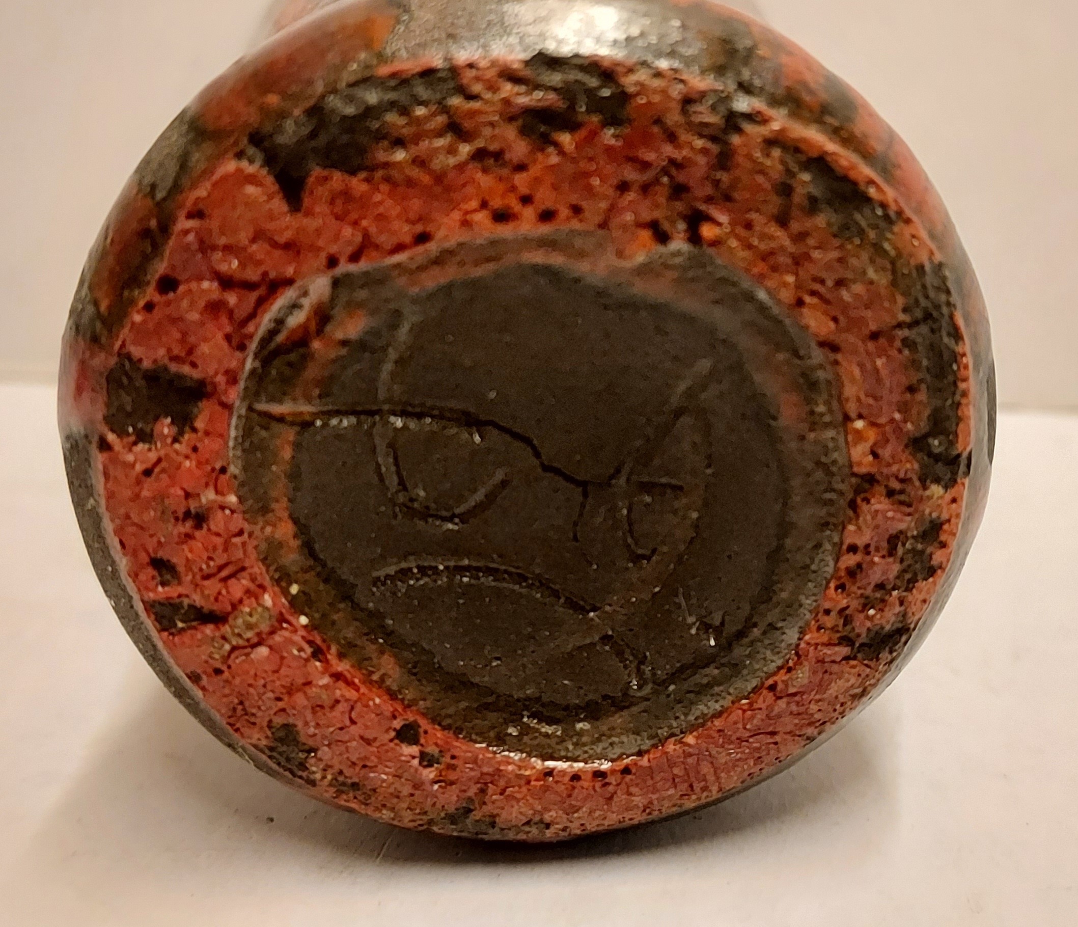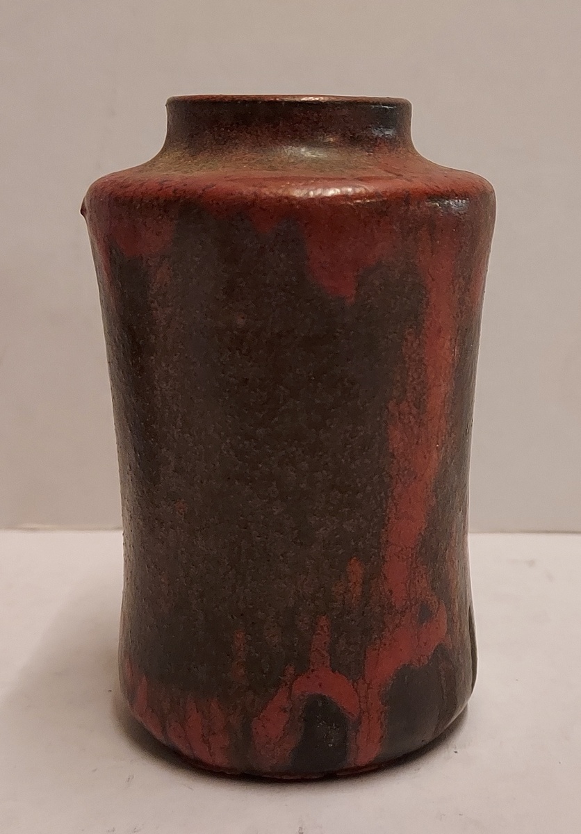 Braun rot glasierte Vase. Entwurf und Ausführung von Jan van Ham. Unterseite markiert.