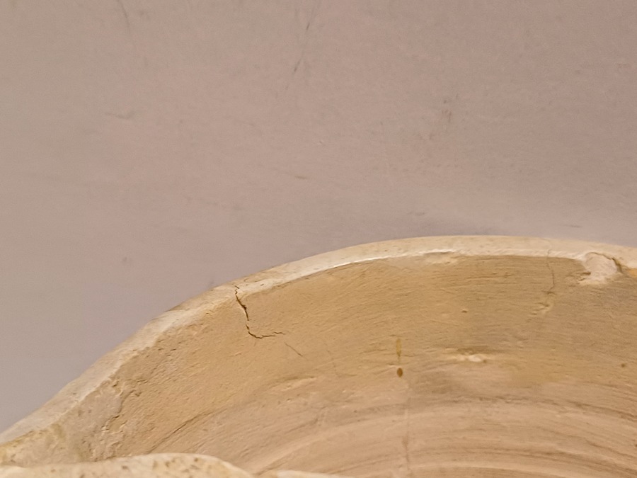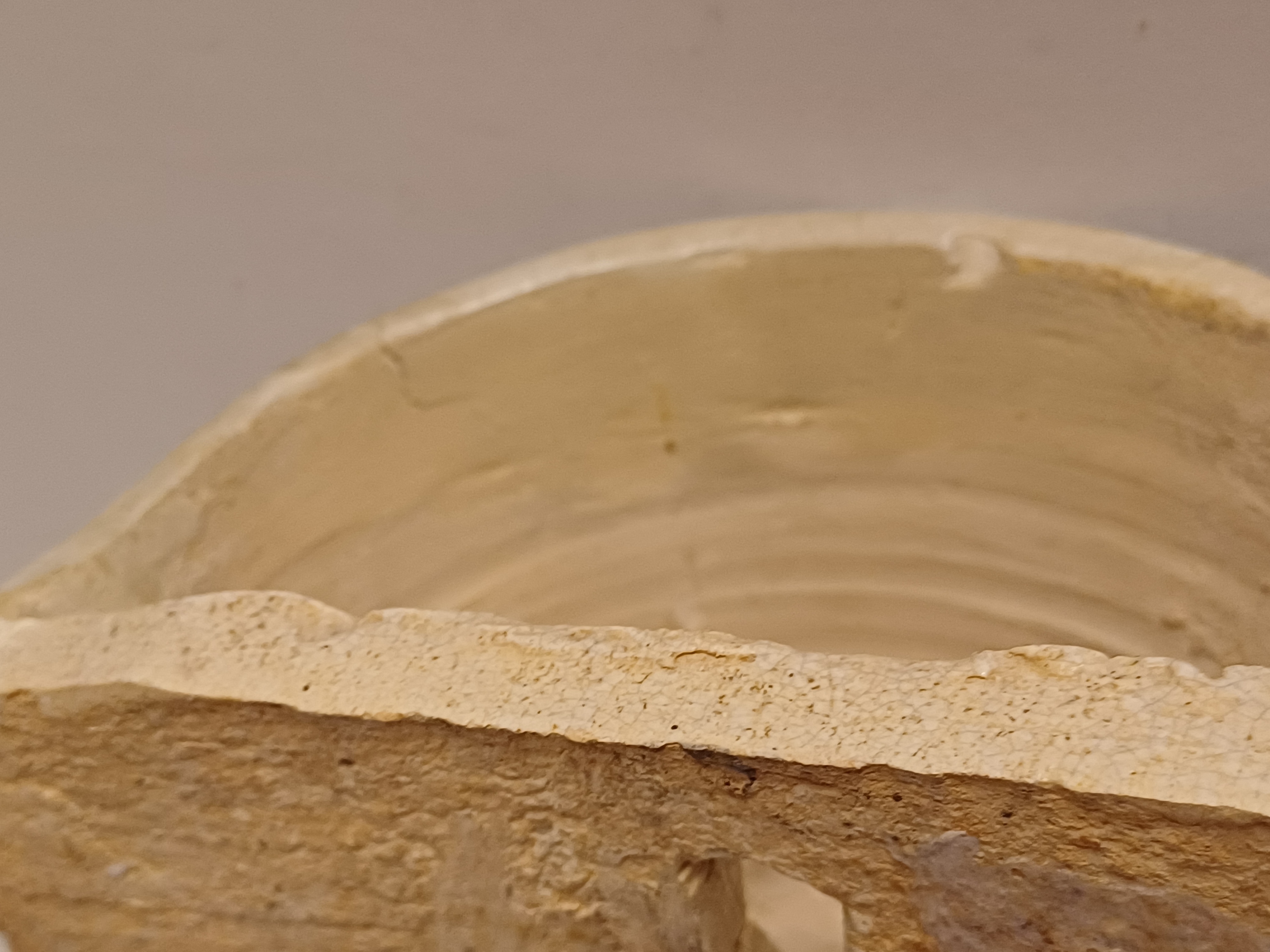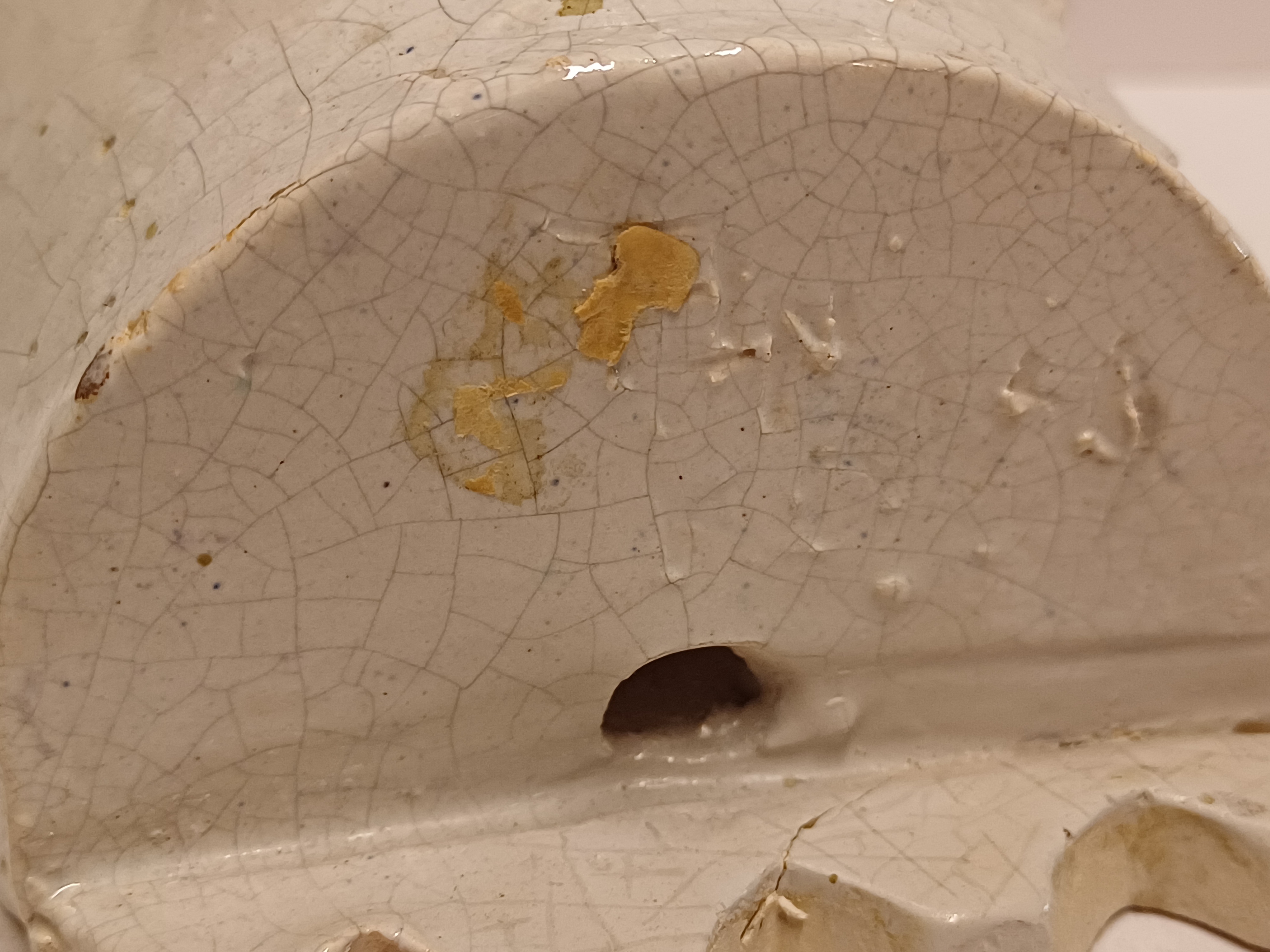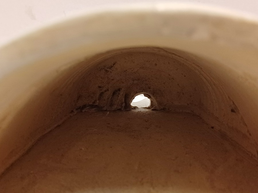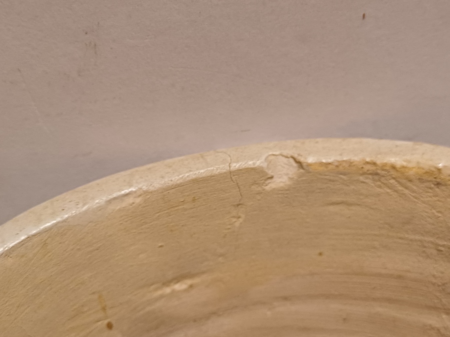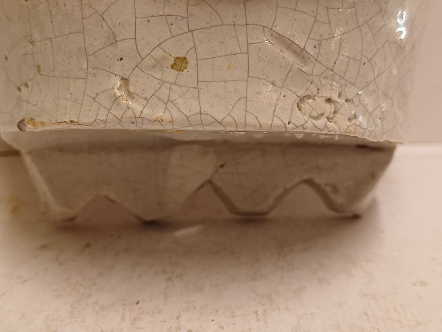 Wat bakbarstjes en glazuur foutjes, de onderrand met herstelling die voor het glazuren heeft plaatsgevonden