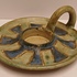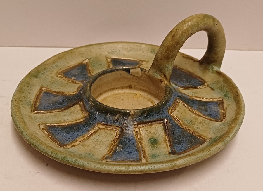 Aardwerken blaker met groene en blauwen galzuur. Onderzijde met monogram.