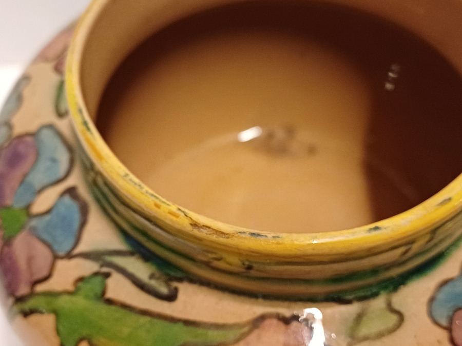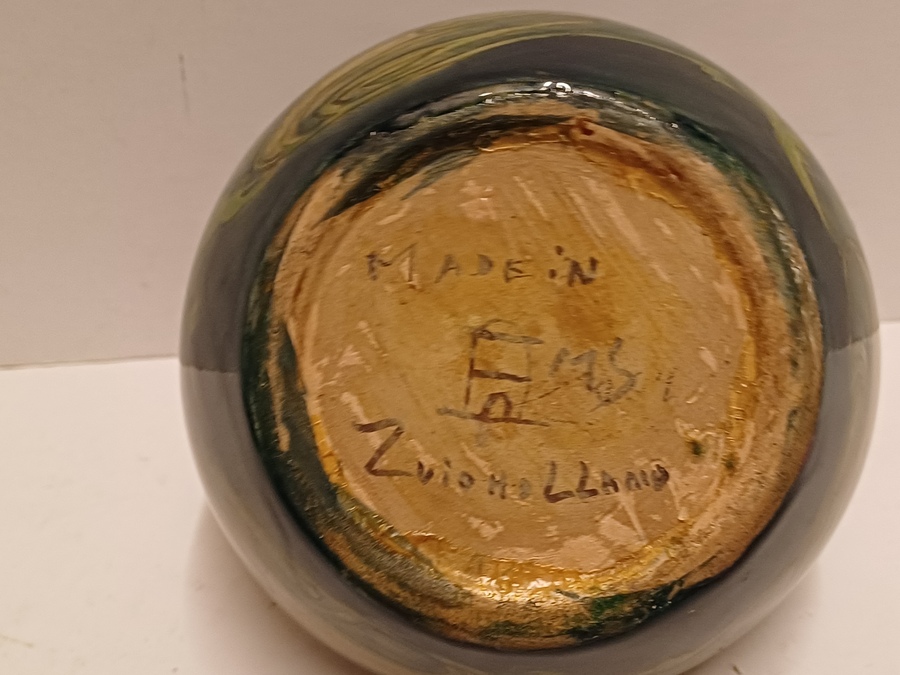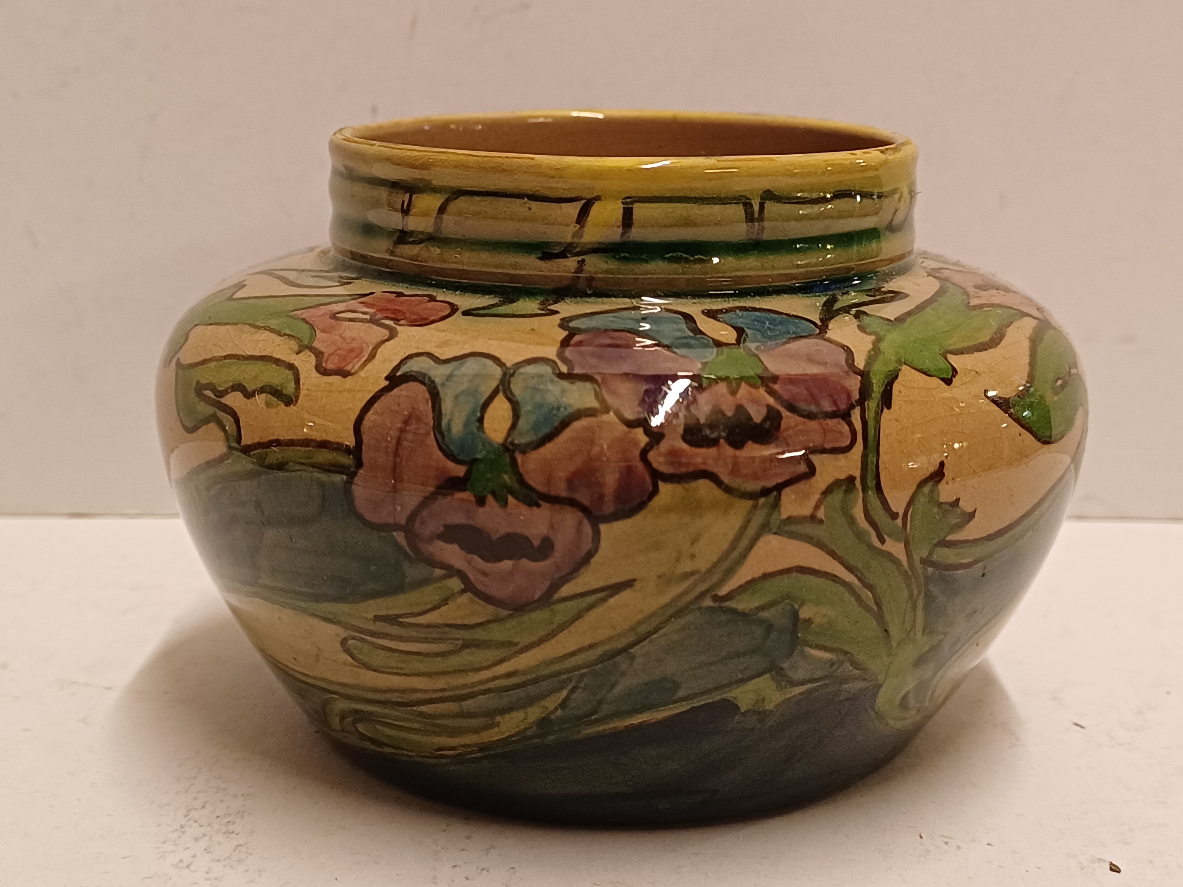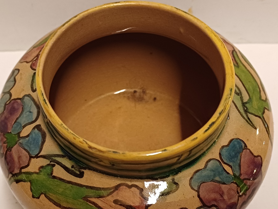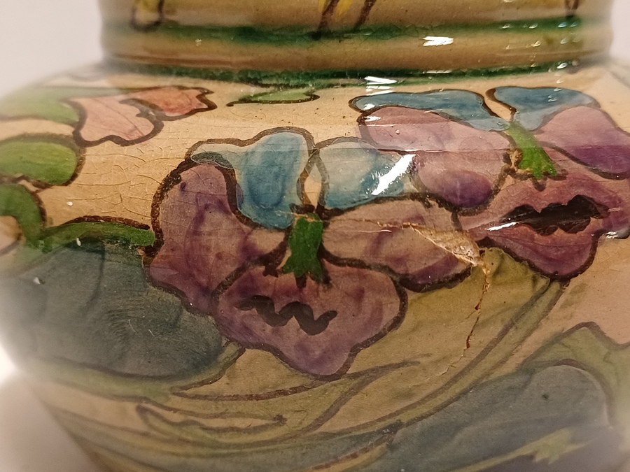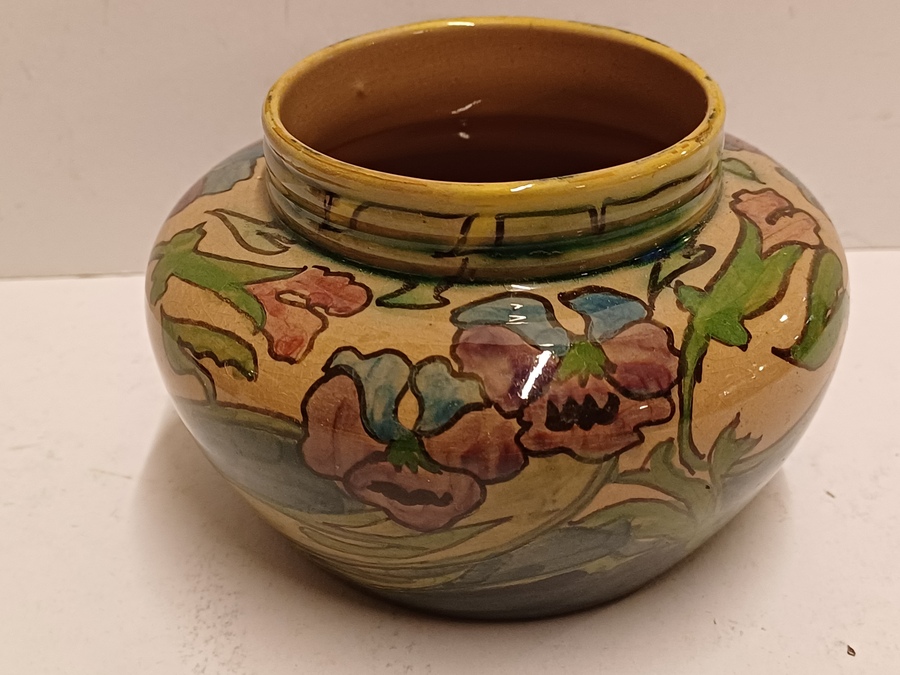 Small model flowerpot with stylized floral decor. Bottom with factory mark.