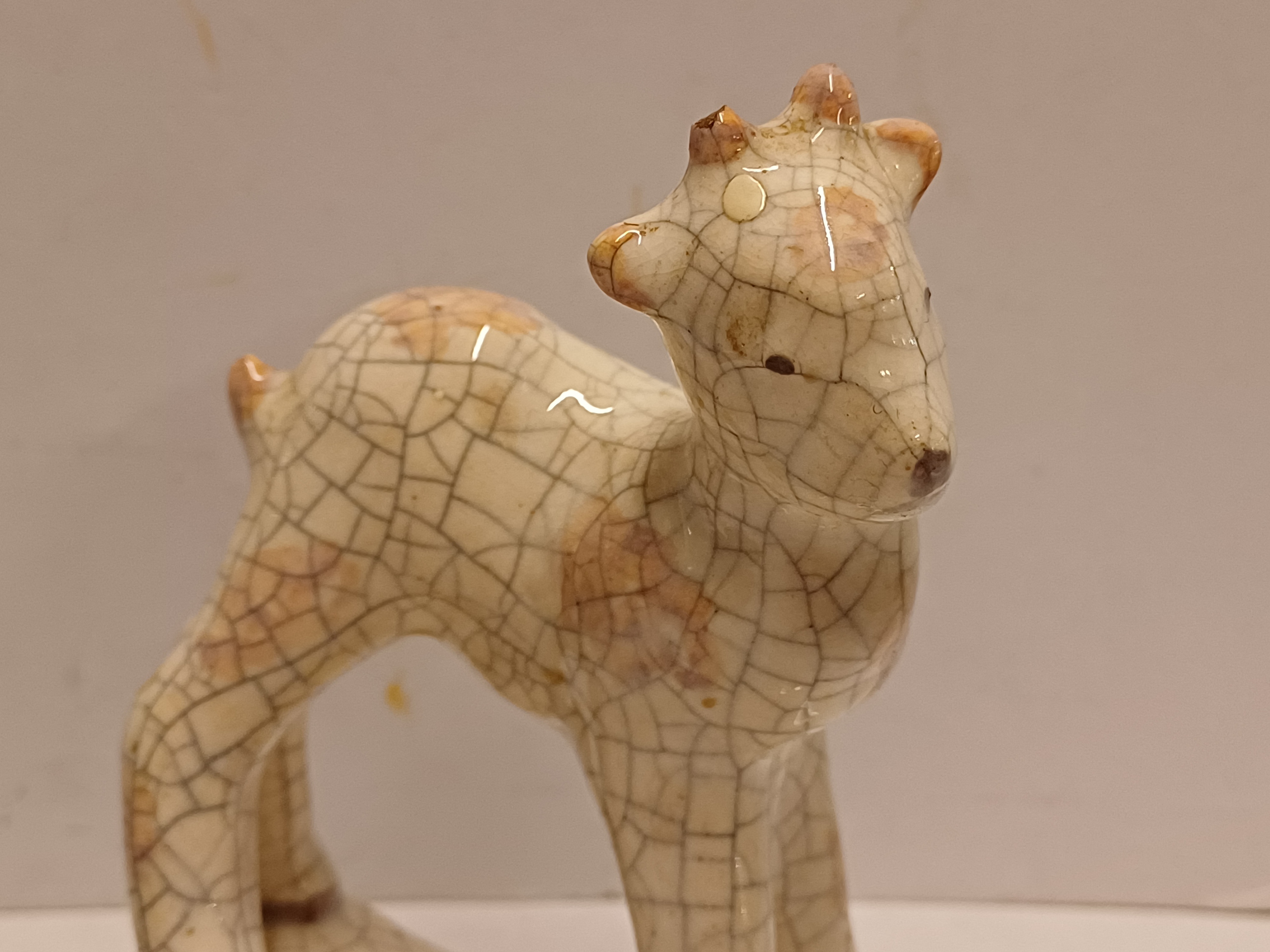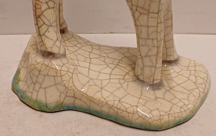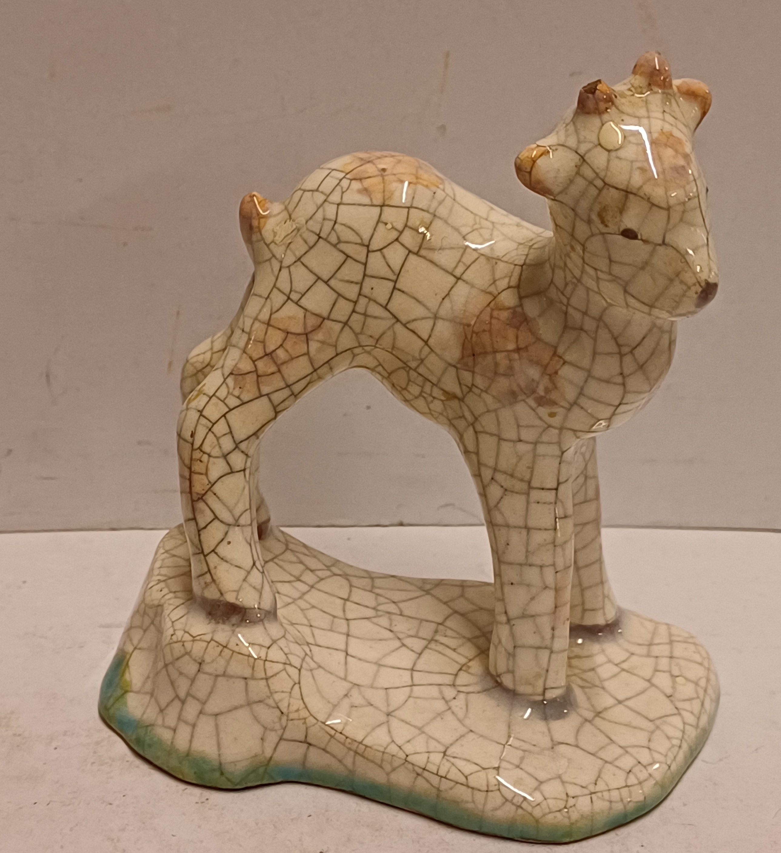 Platelen bokje met gecraqueleerde glazuur en blauwe onderrand.. Ontwerp Piet Swildens voor Plateelbakkerij Zuid Holland.