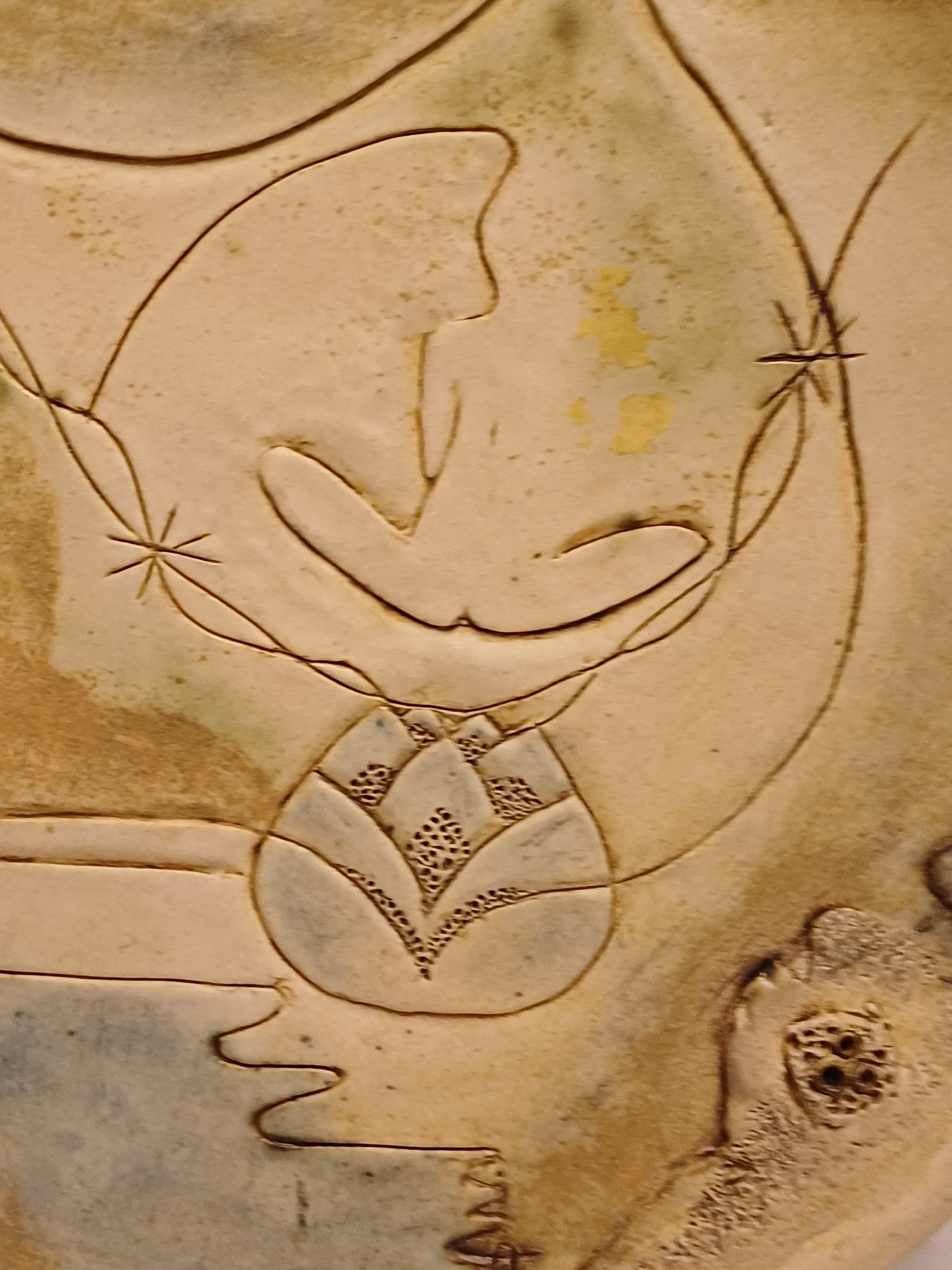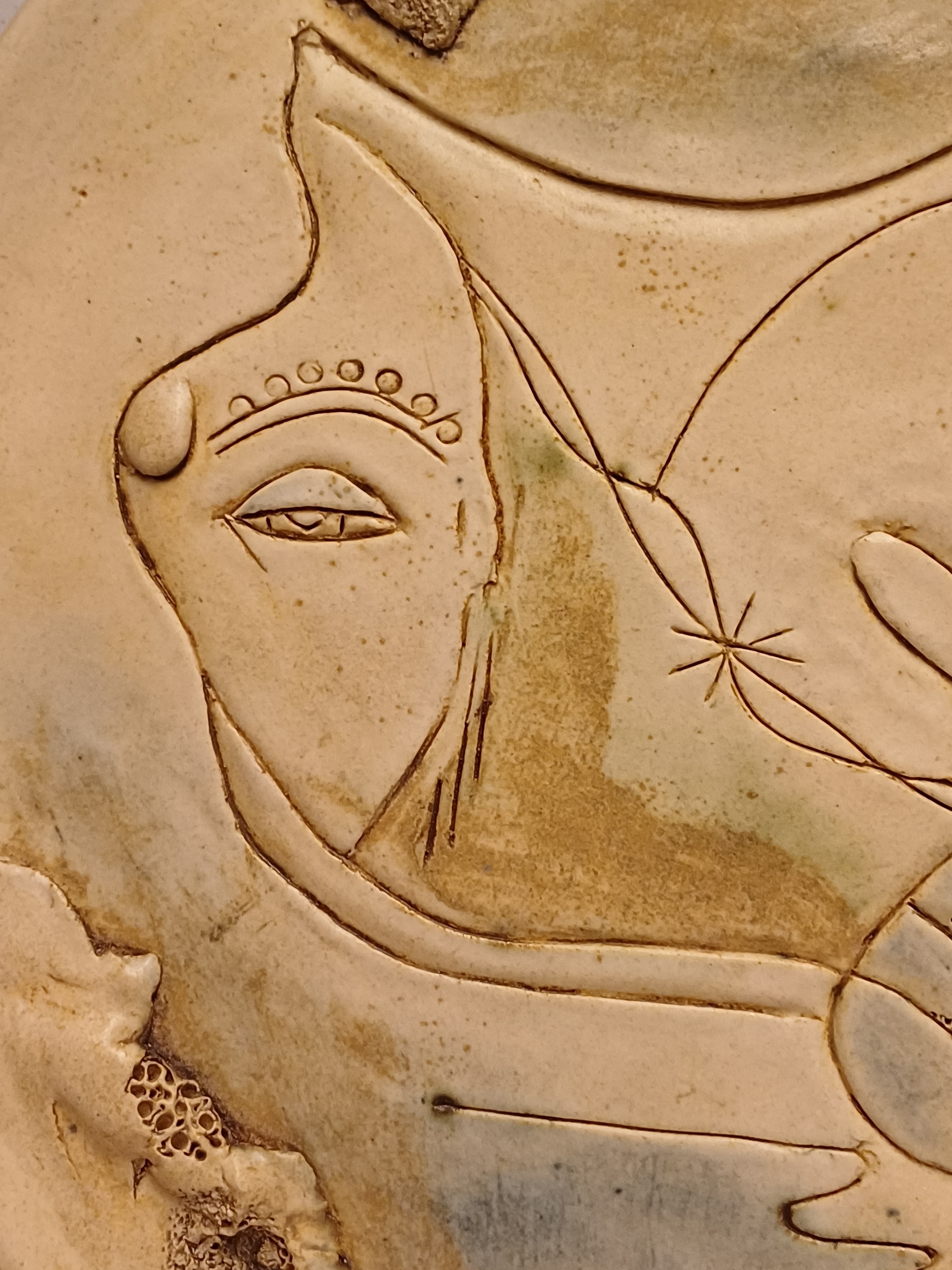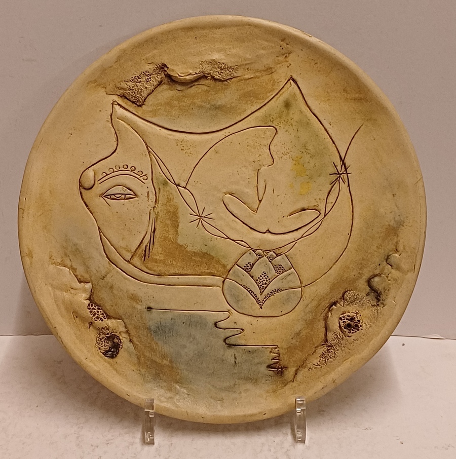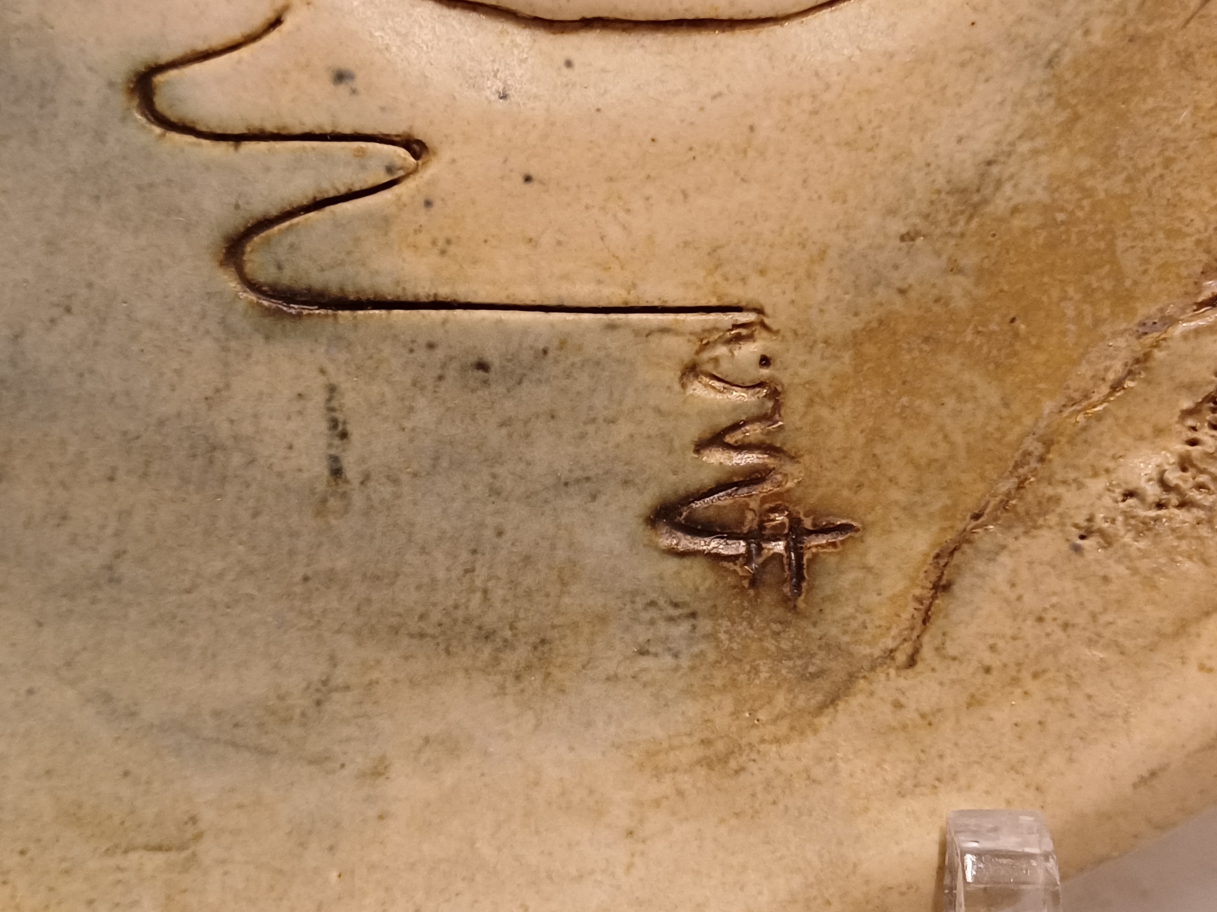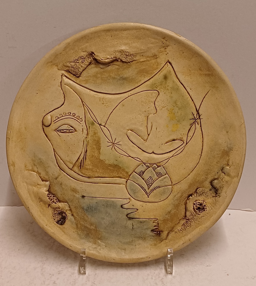 Bord met fantasie decor, aan de voorzijde gesigneerd met kunstenaars signatuur.