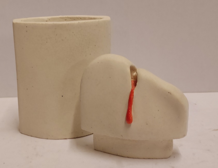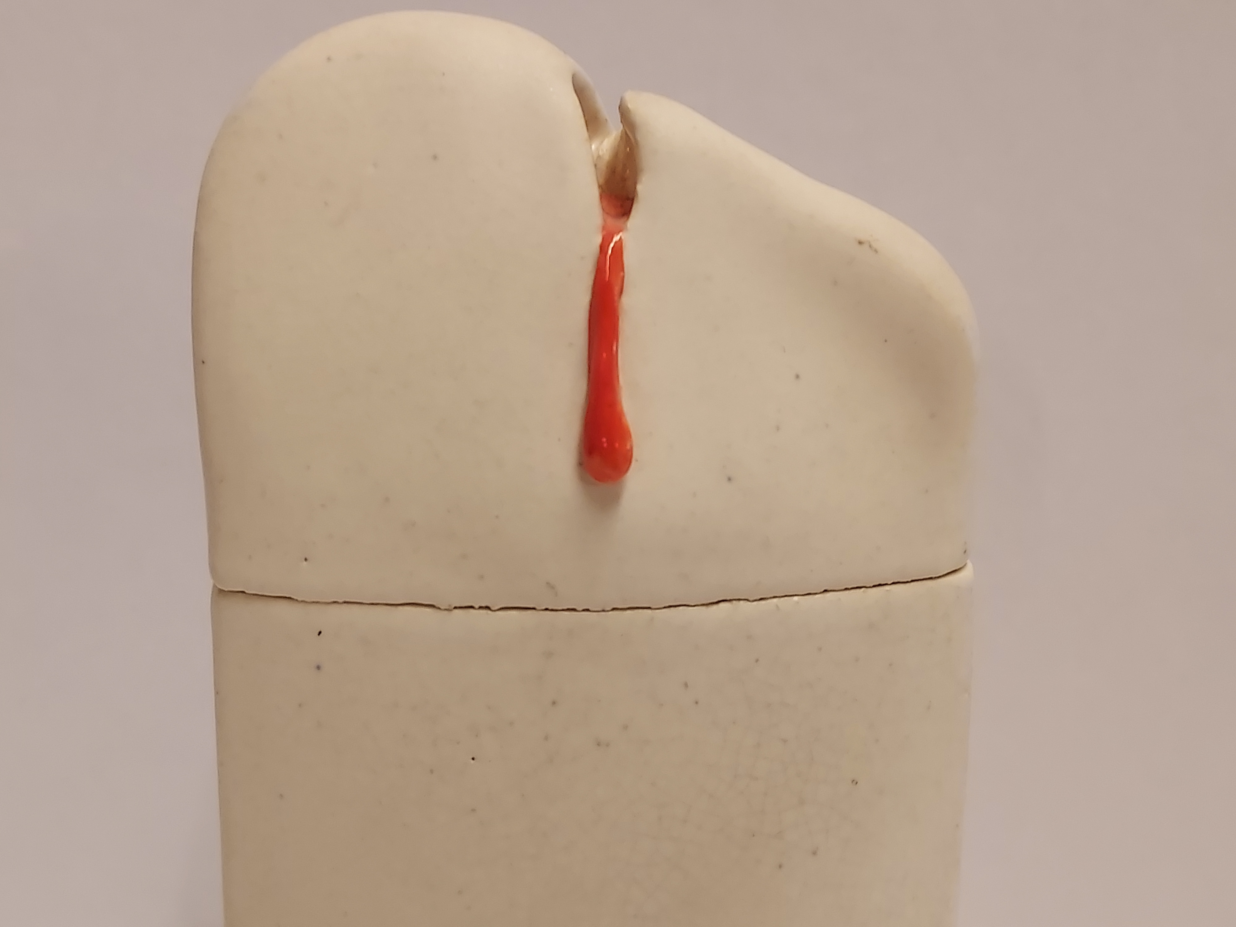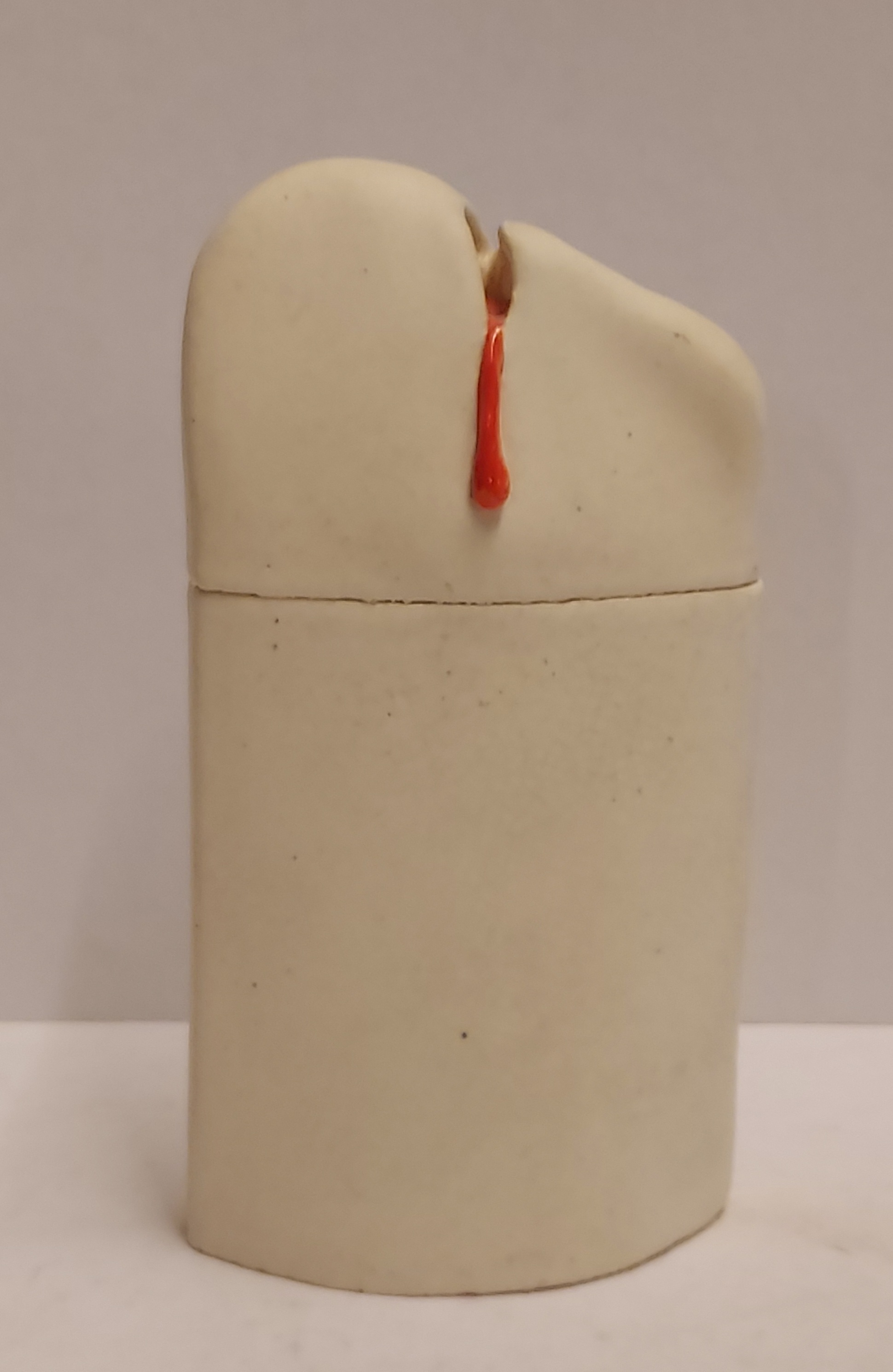 Earthenware lidded box with red slip. Not signed.