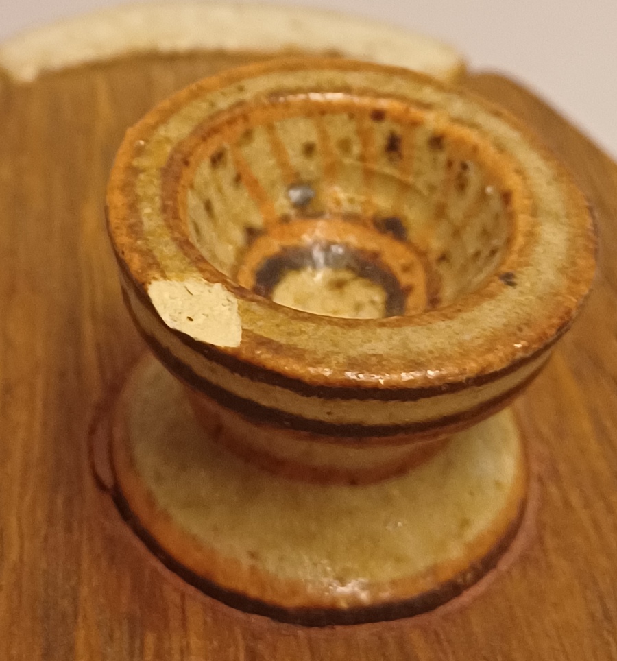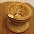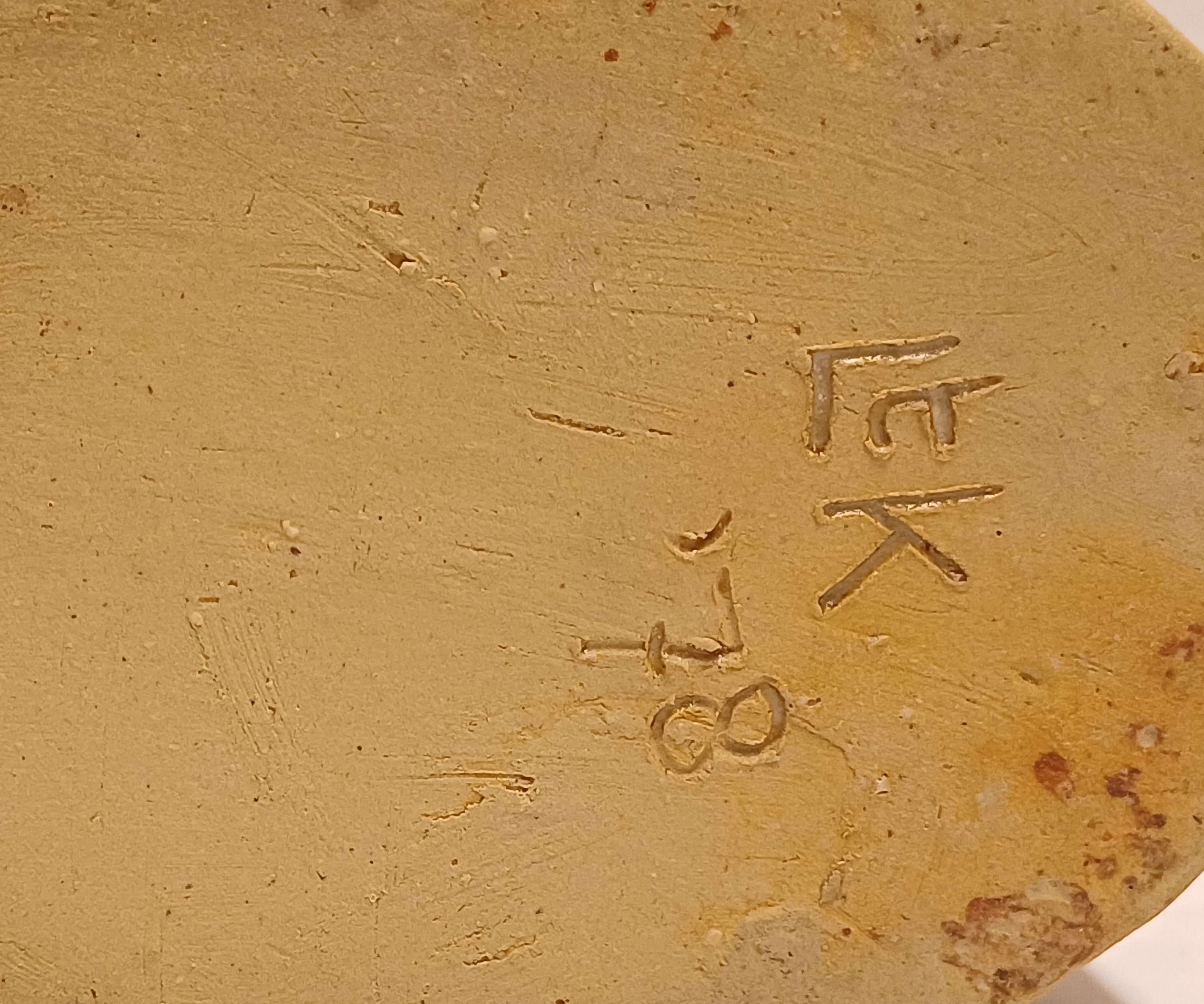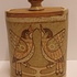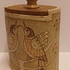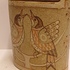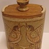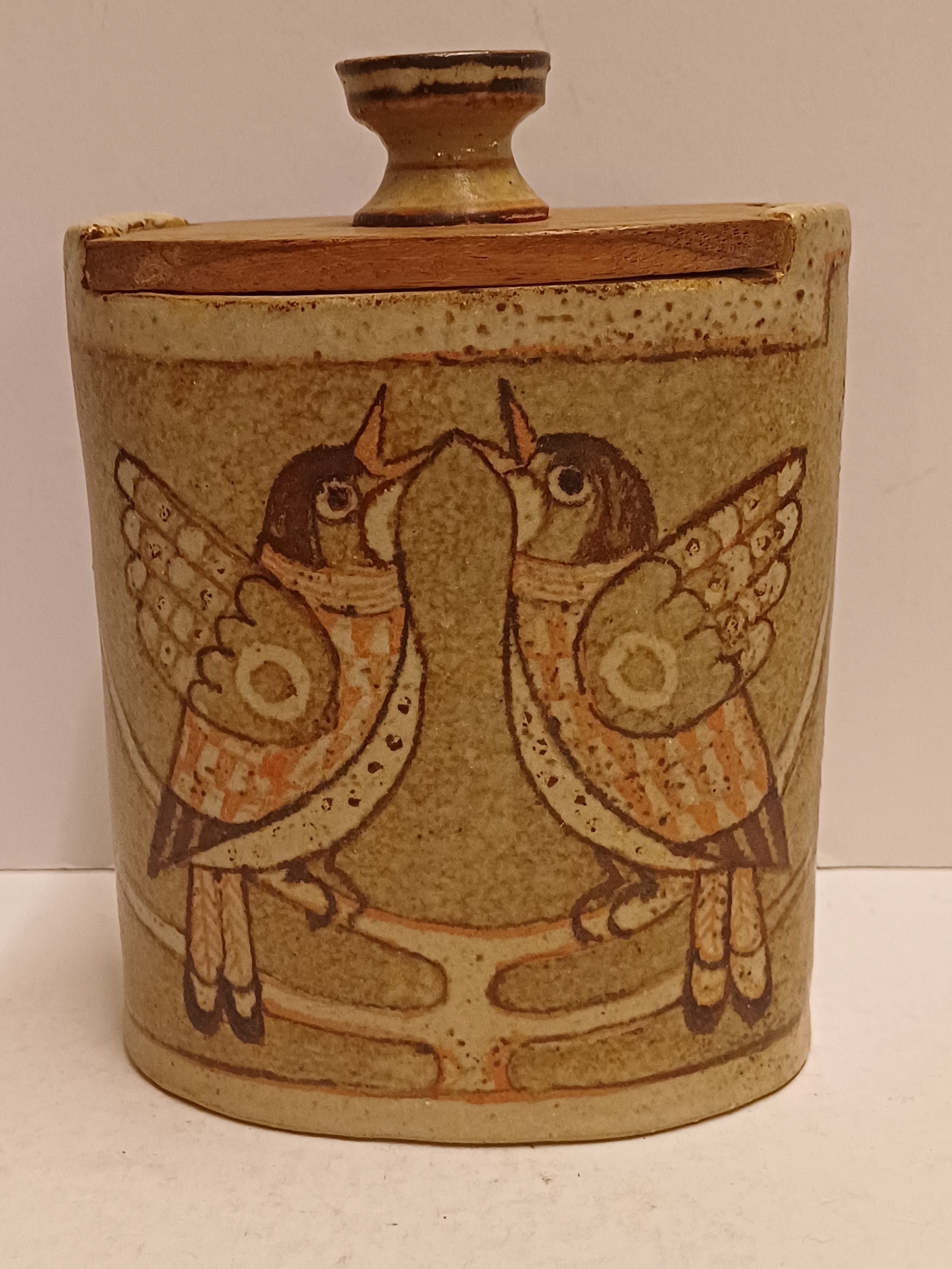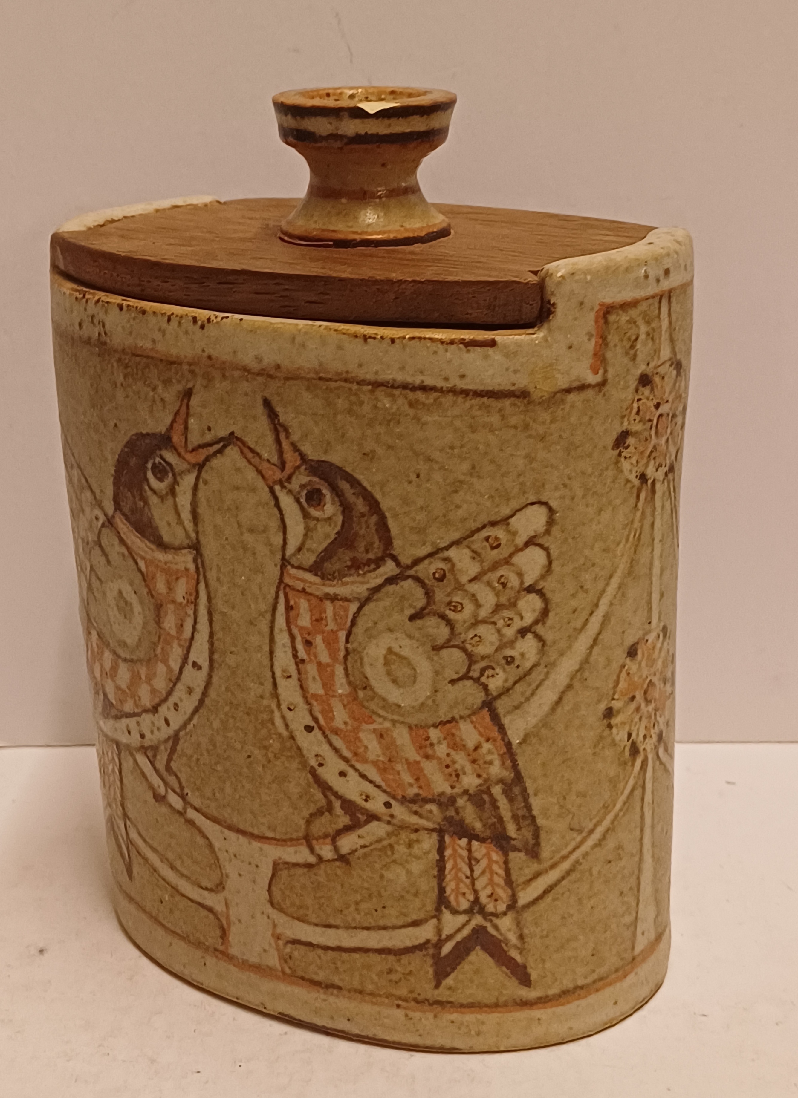 Brown glazed lidded box with bird decoration. Bottom marked LTK and dated '78.