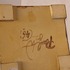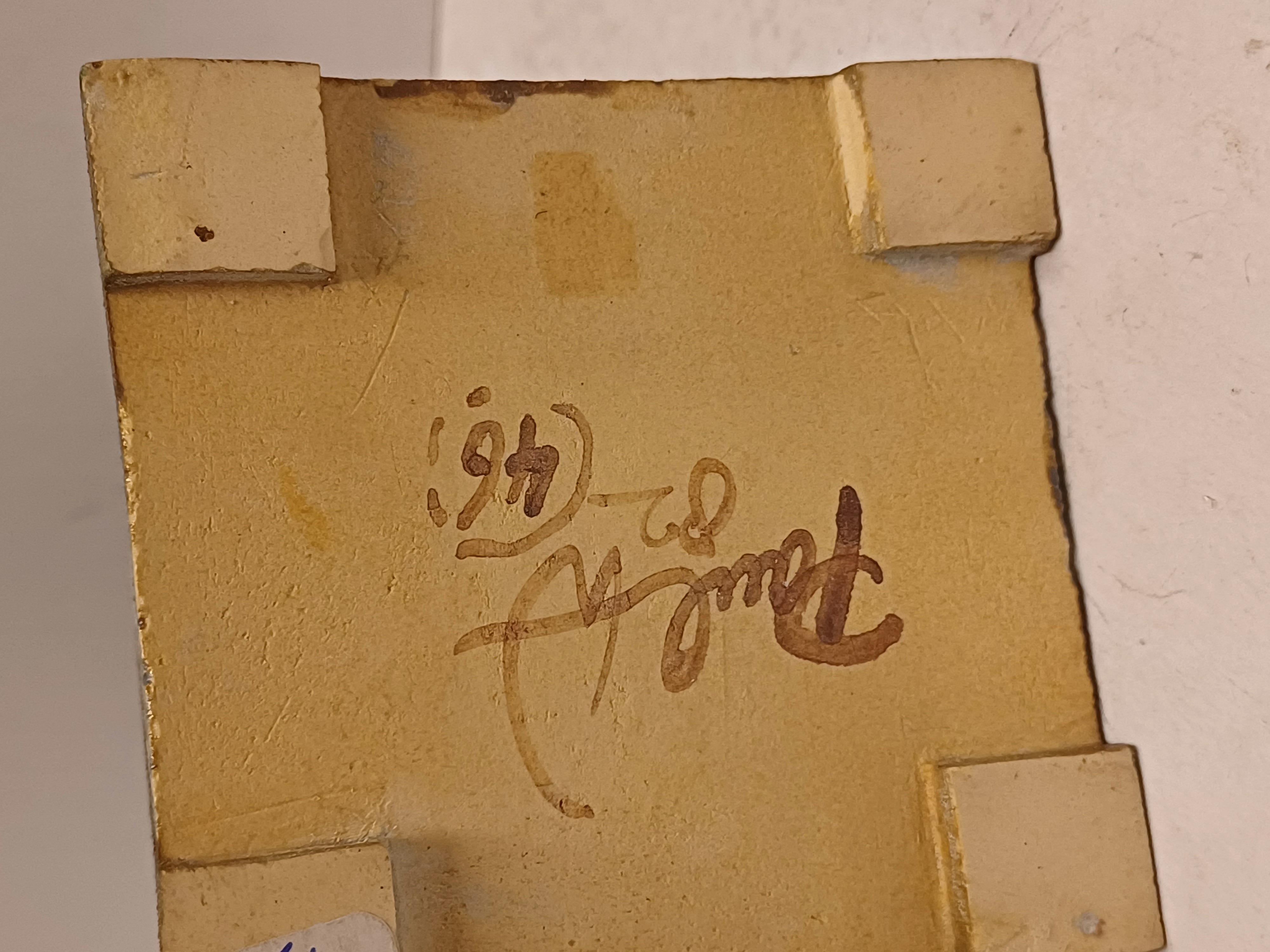 Earthenware lidded box with flat decoration on a dark green background. Bottom signed and dated '82.