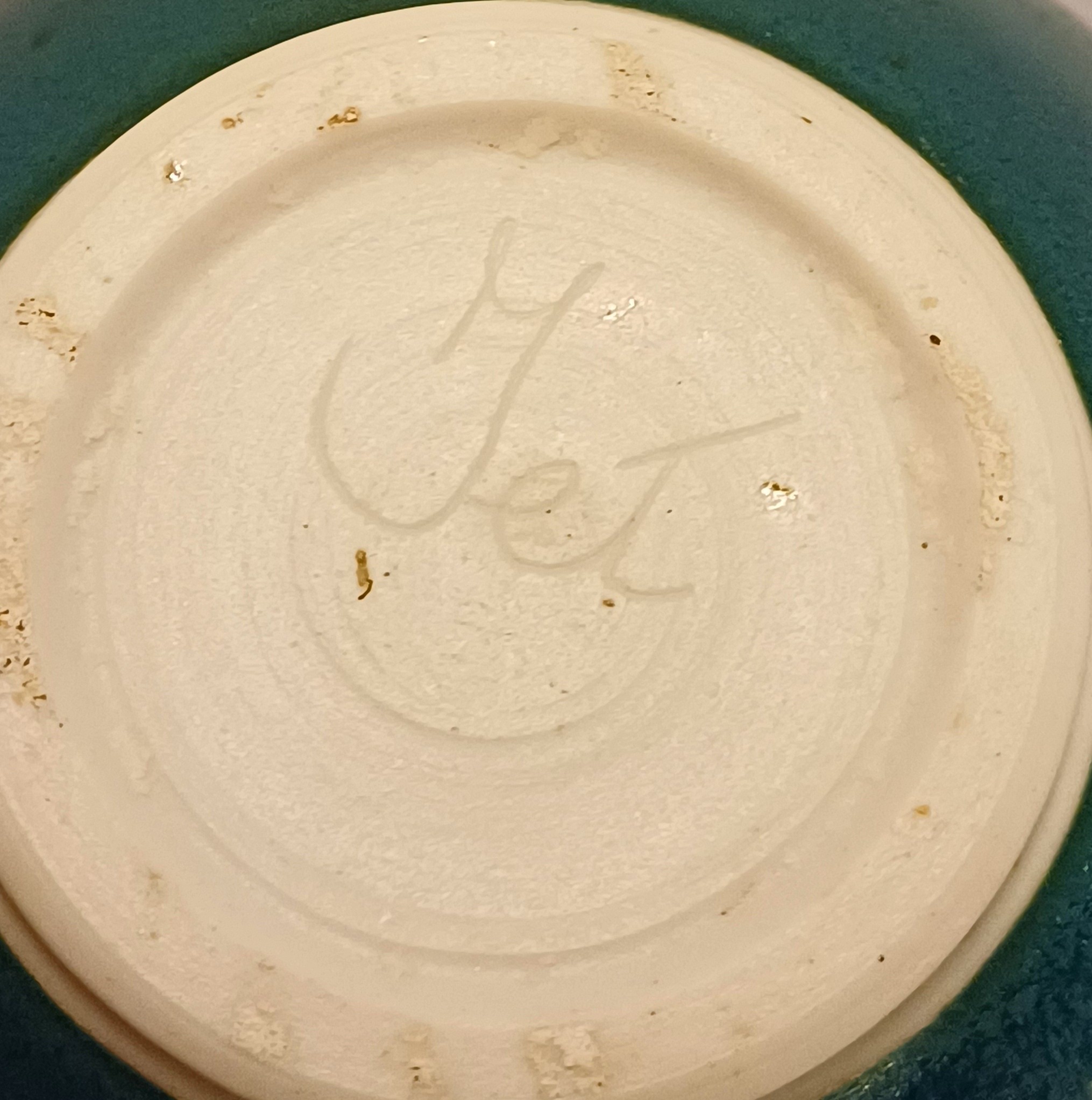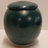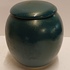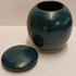 Porcelain lidded jar with dark green glaze. Signed on the bottom.