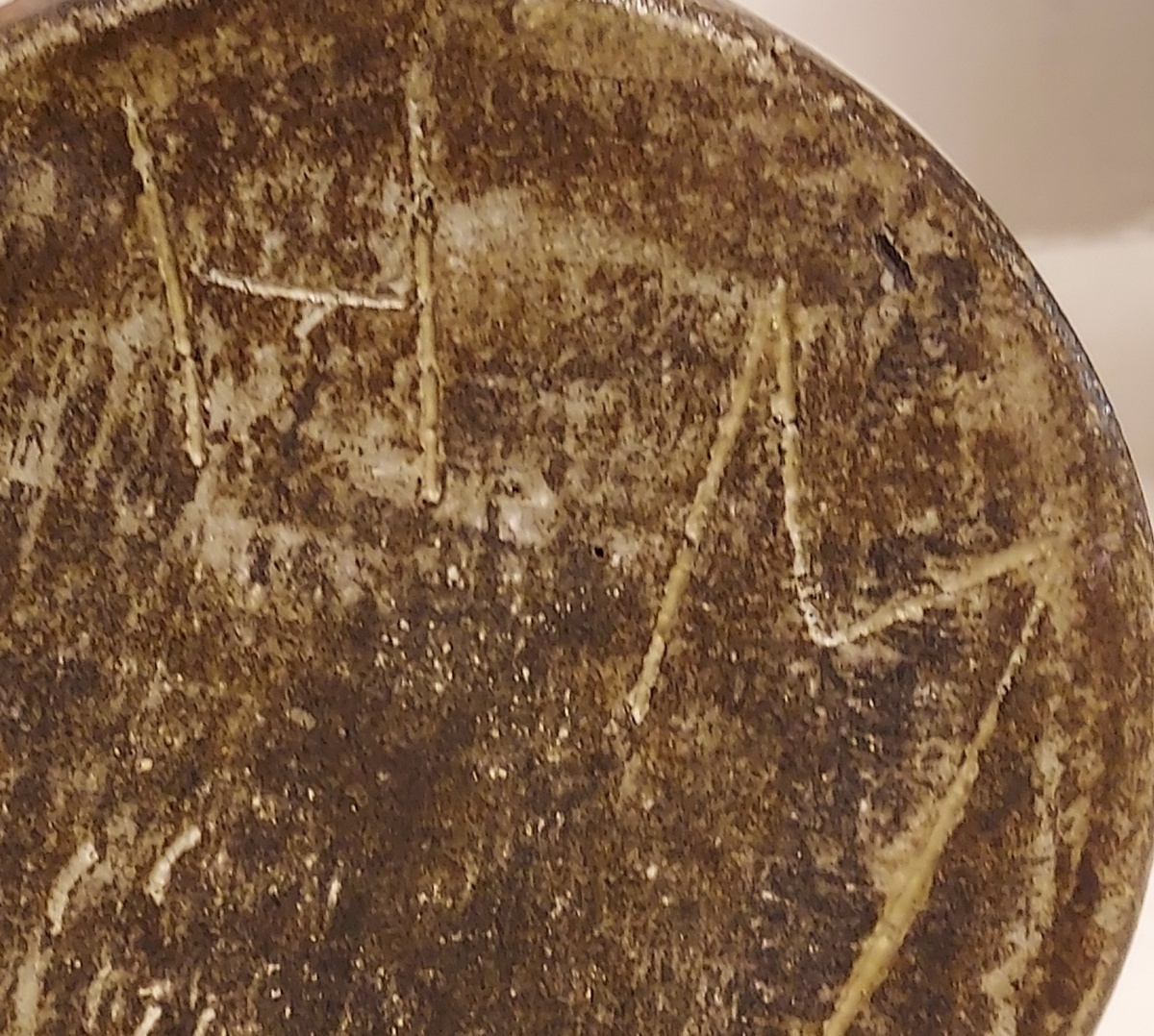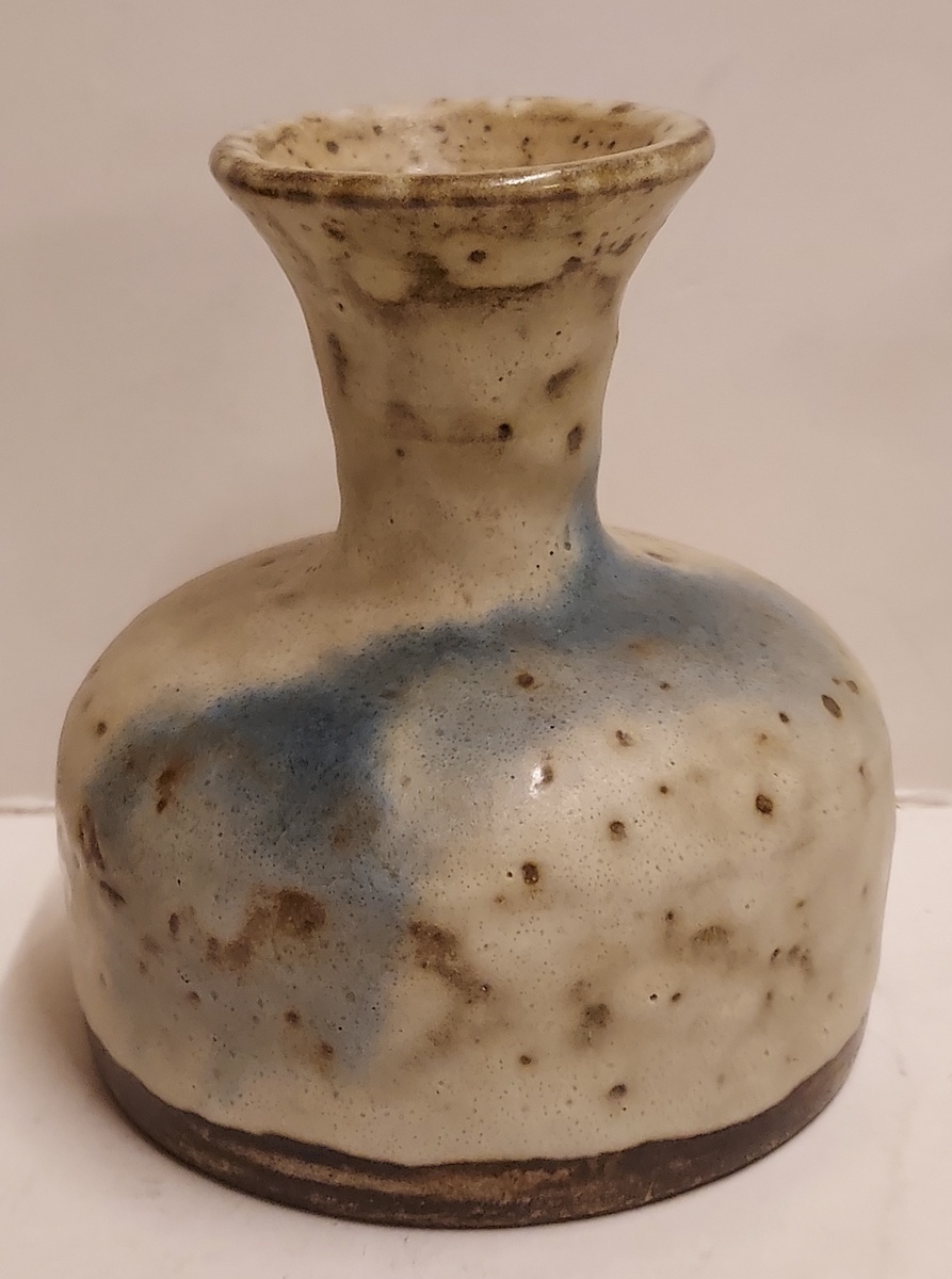 Vase with beige and blue glaze. Bottom with monogram.