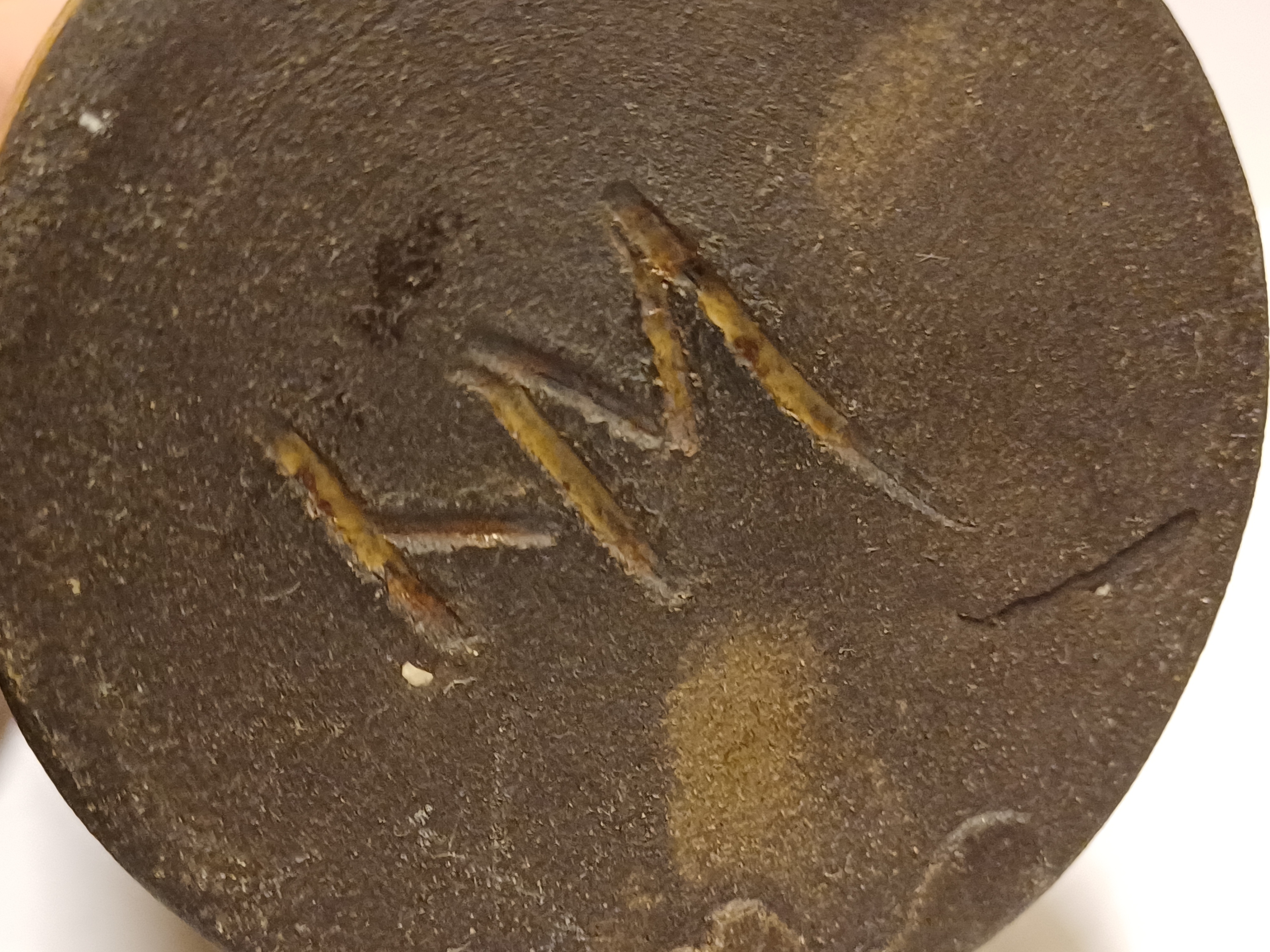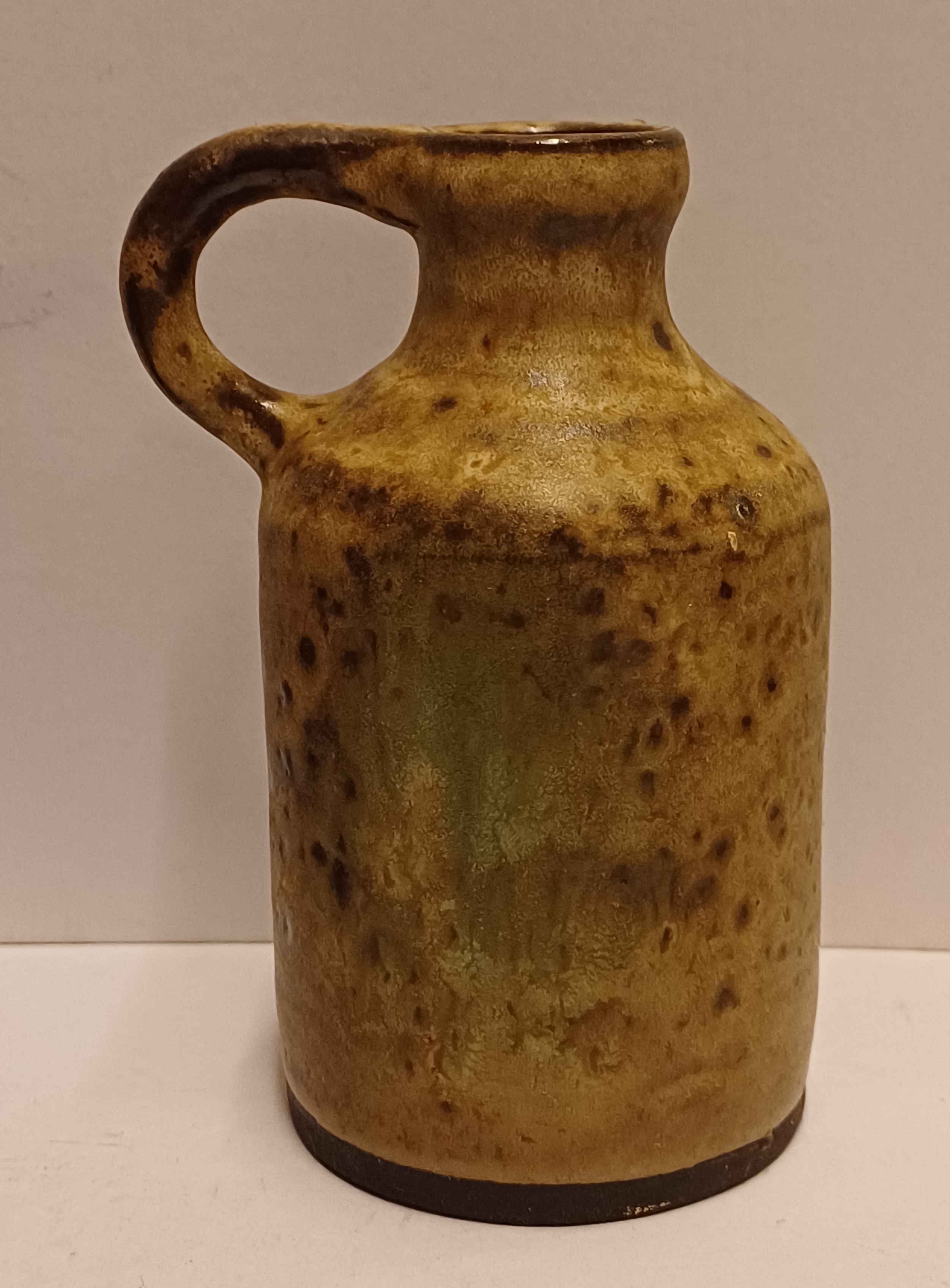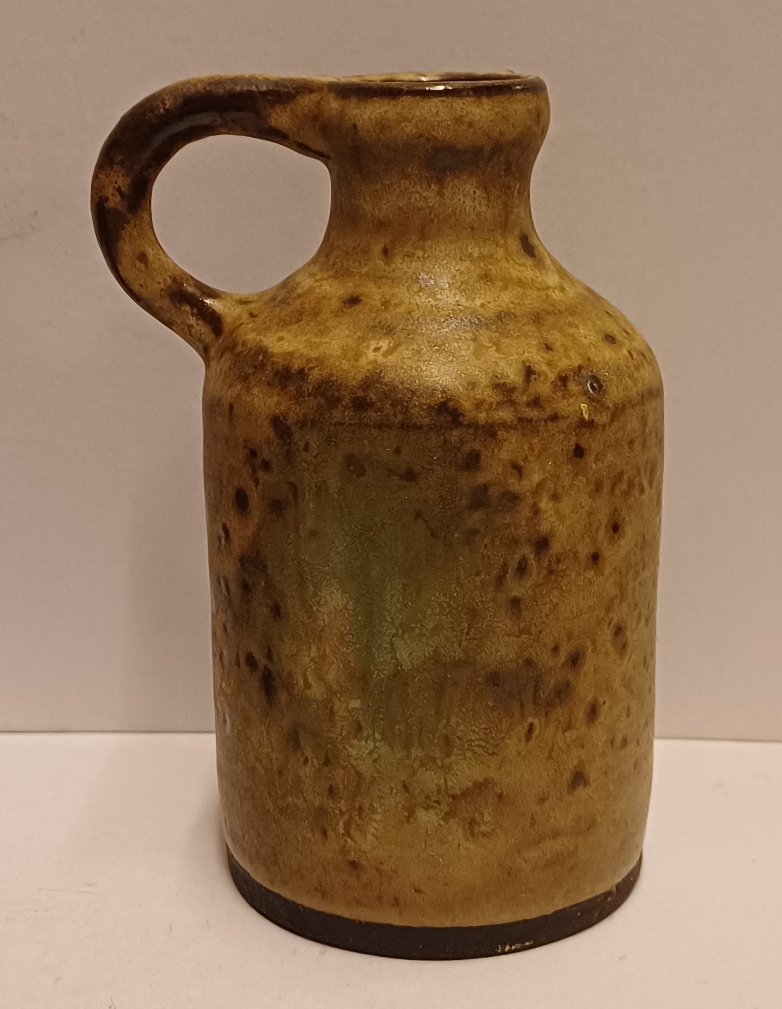 Klein kannetje met bruine glazuur. Onderzijde met monogram.