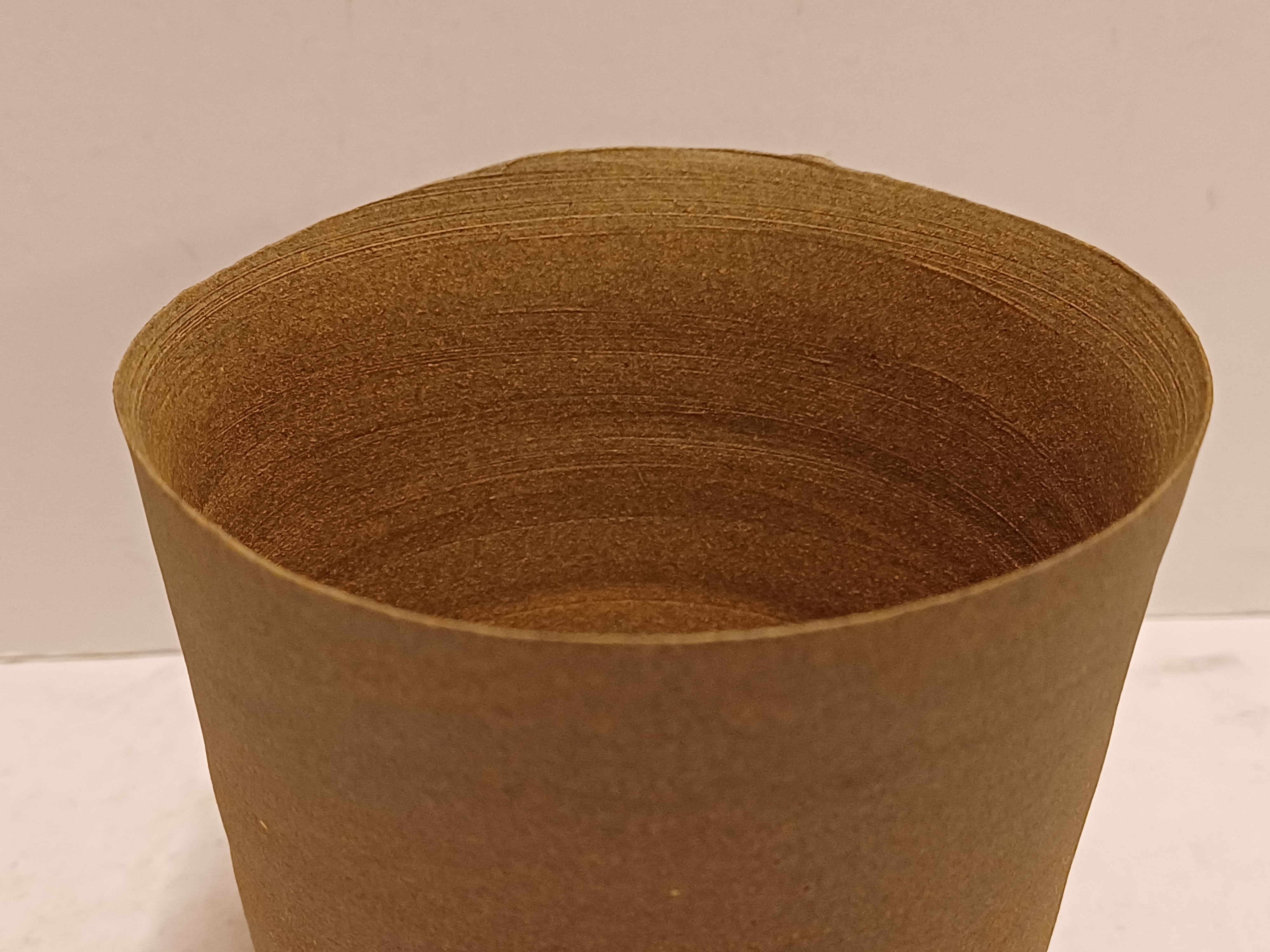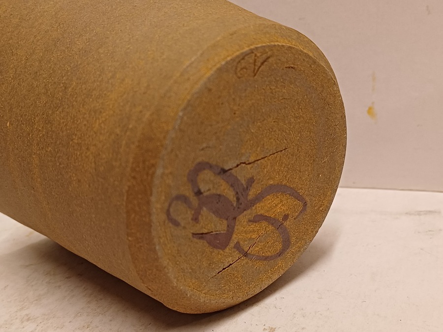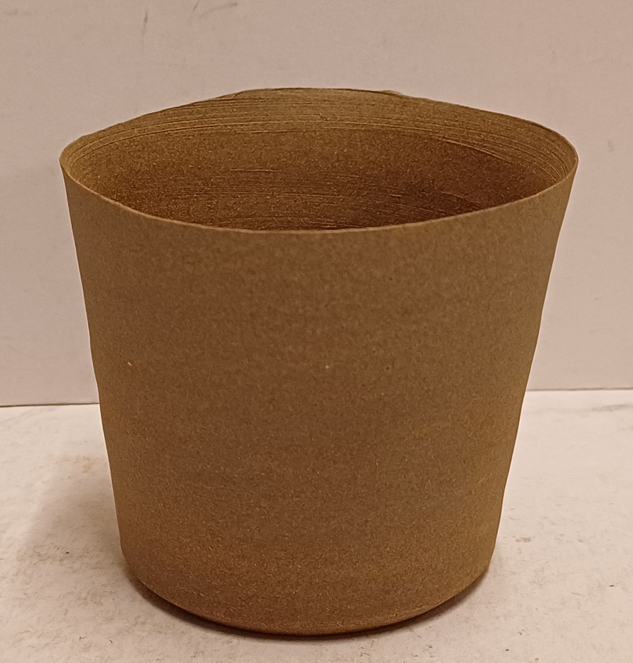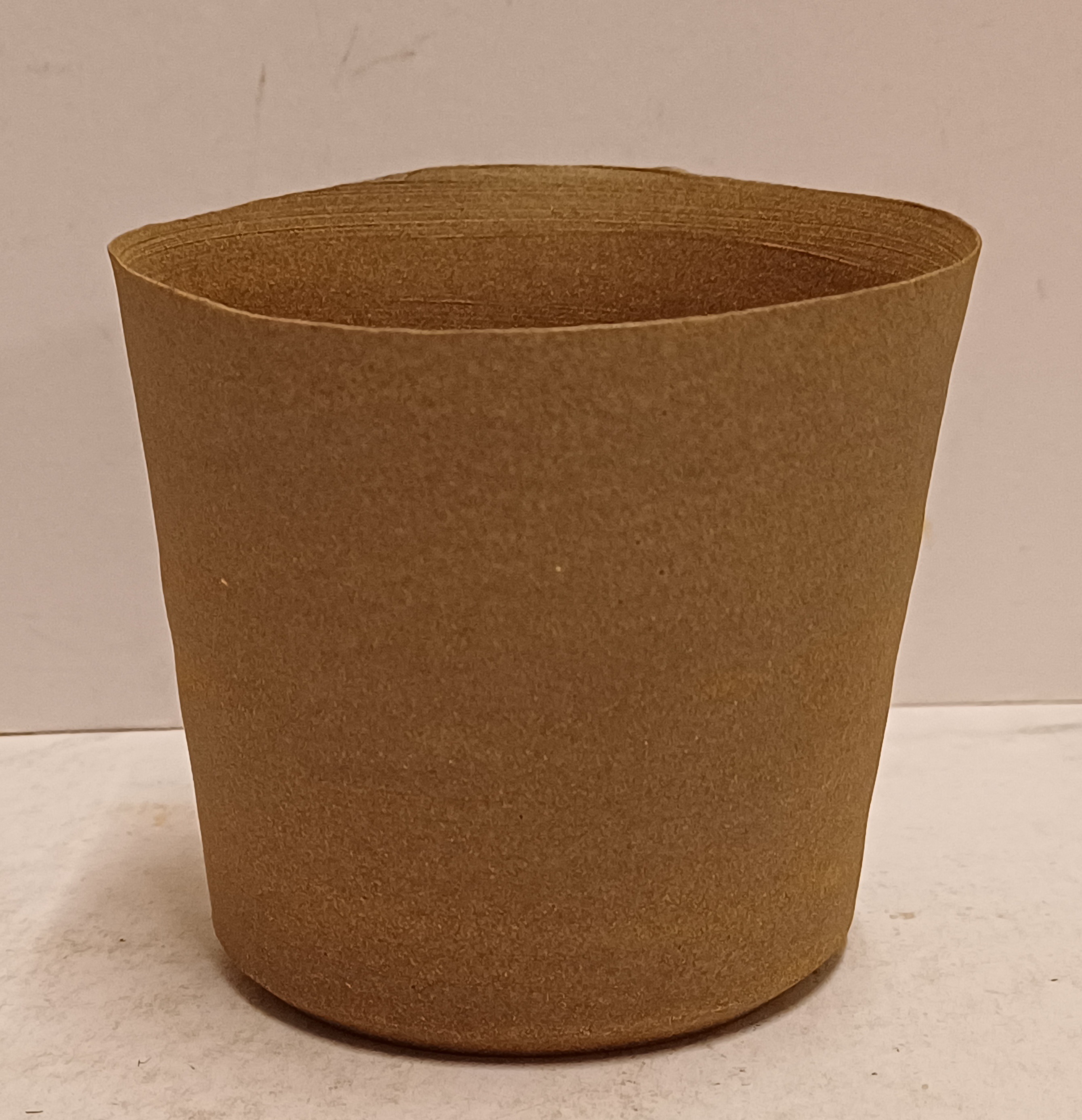 Brown earthenware bowl with a partially wavy edge. Signed on the bottom.