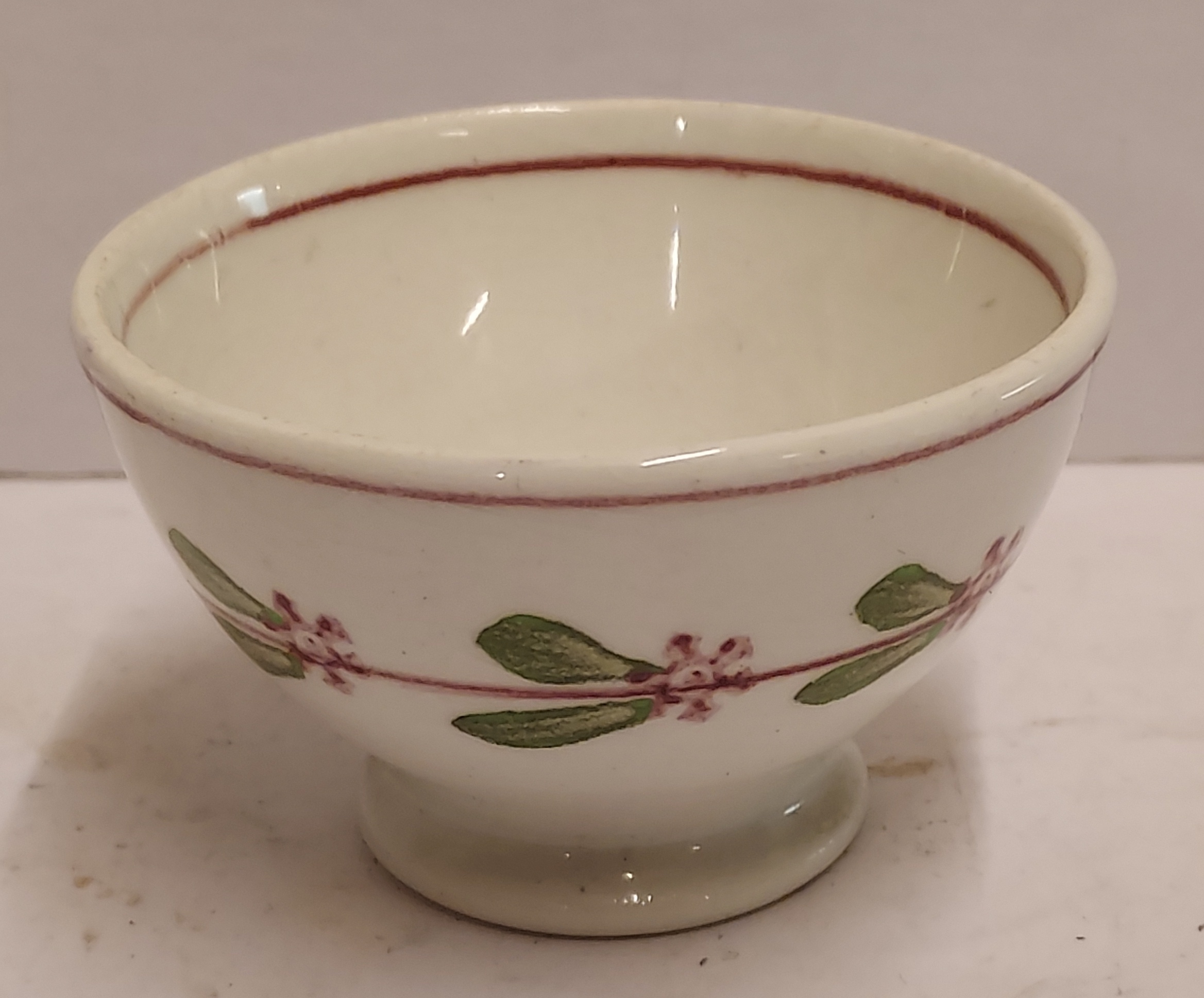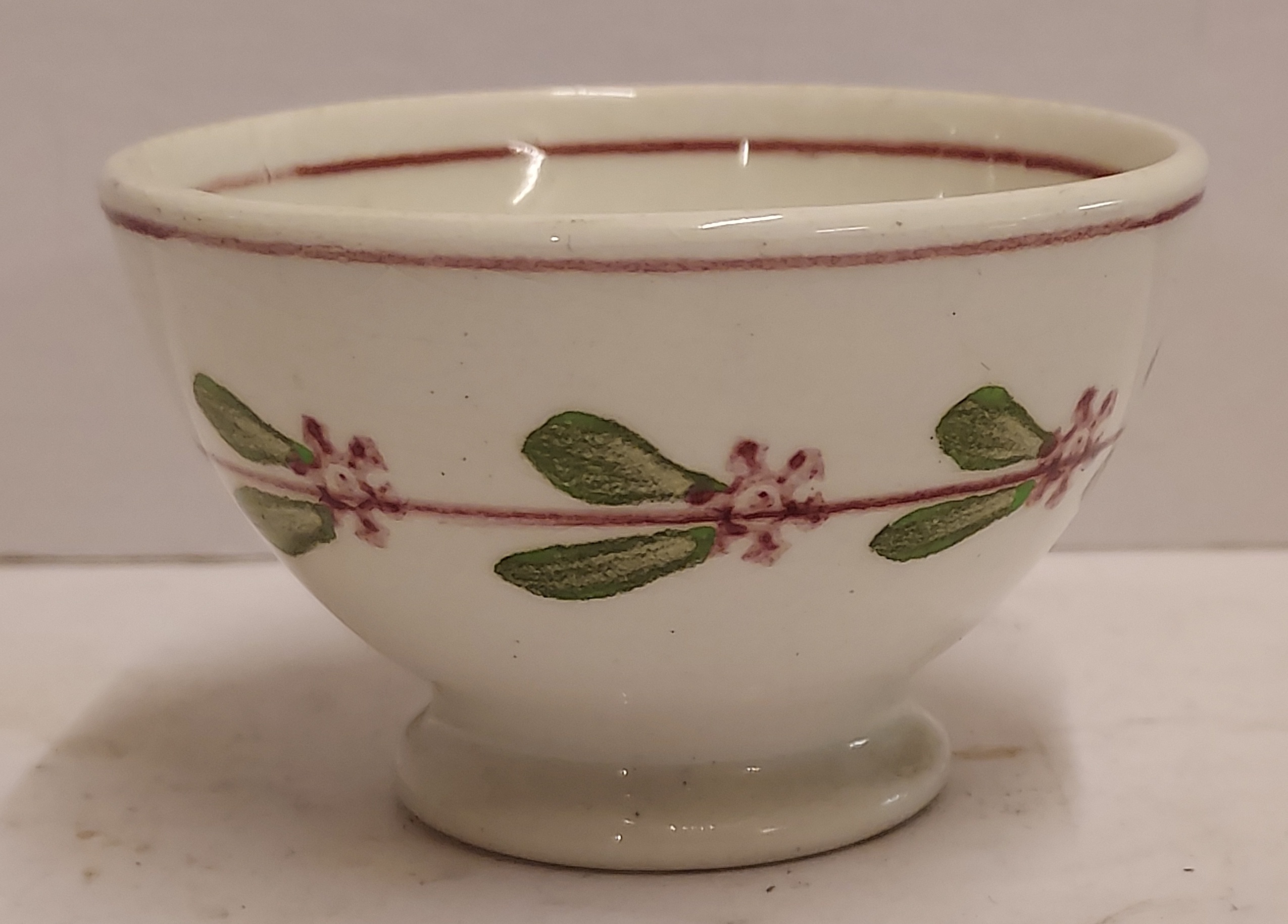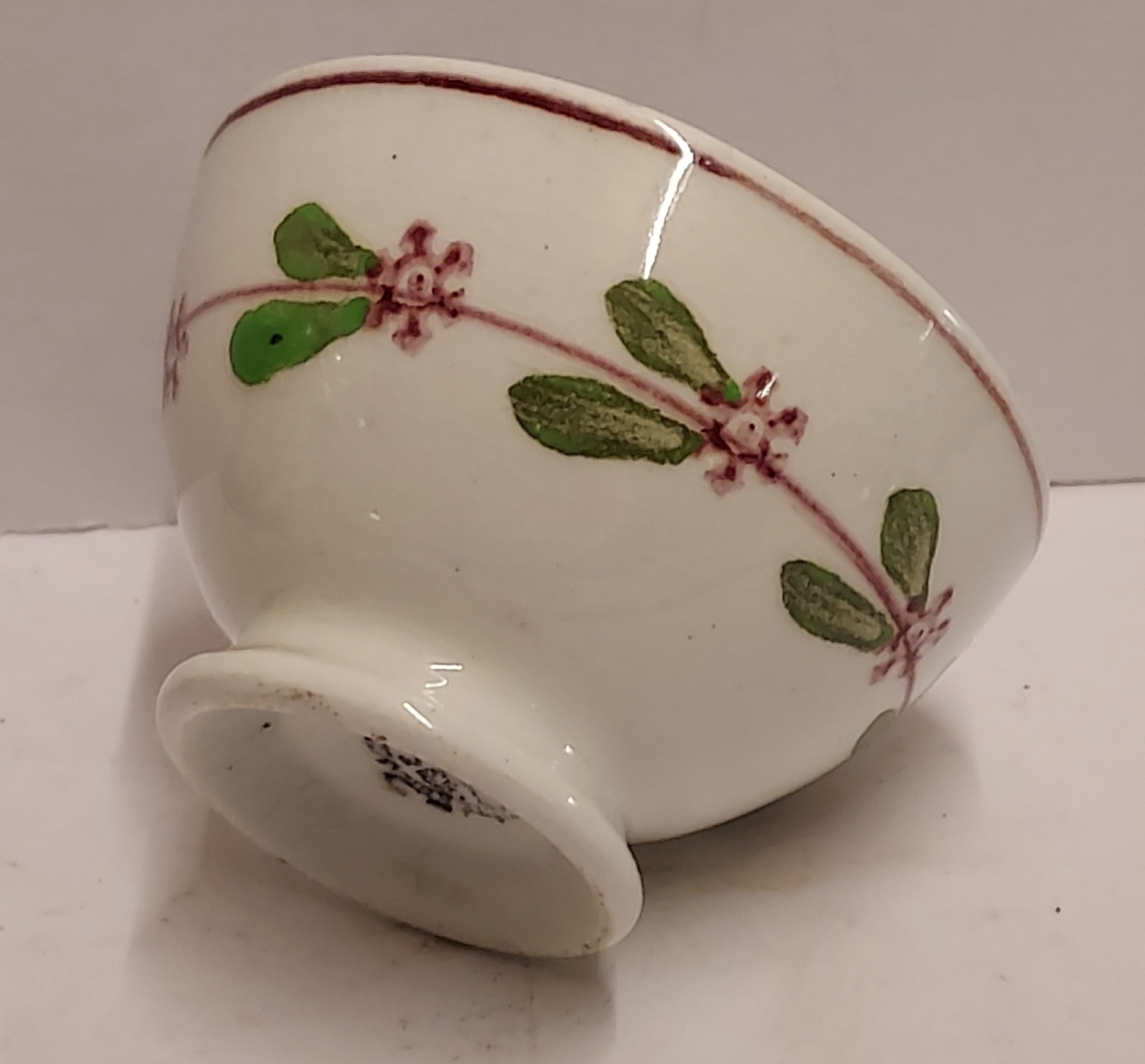 With a decor of leaves in green with red stamps. Bottom with factory mark.