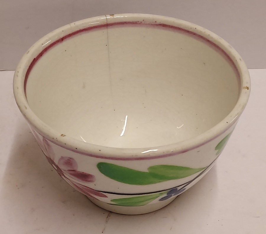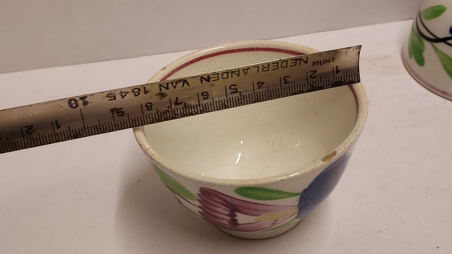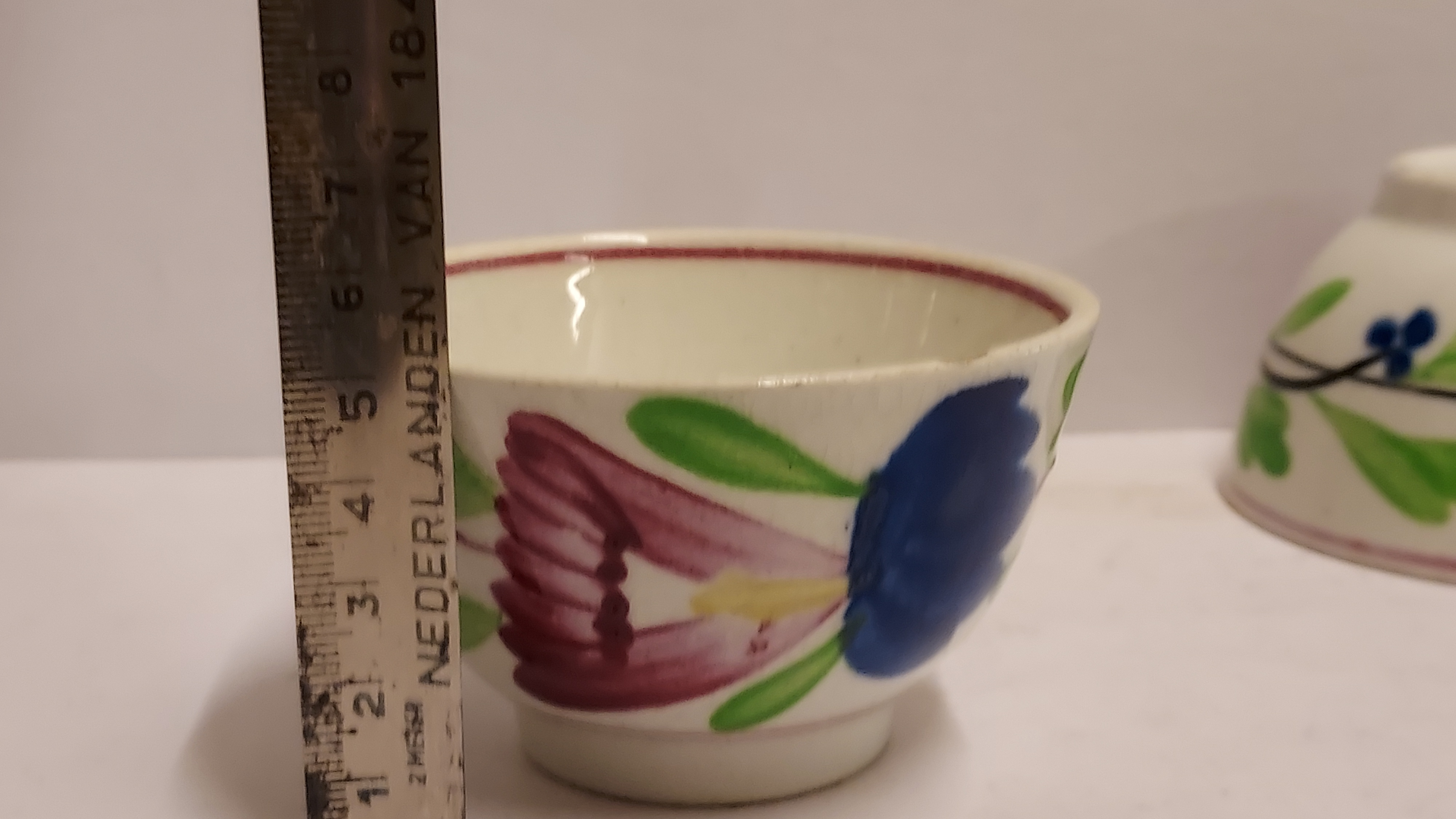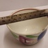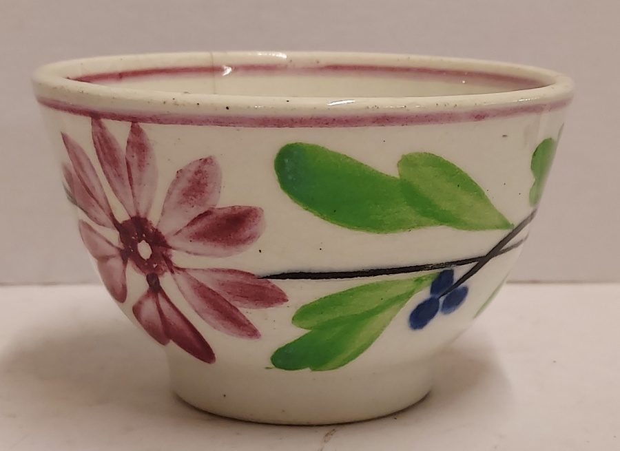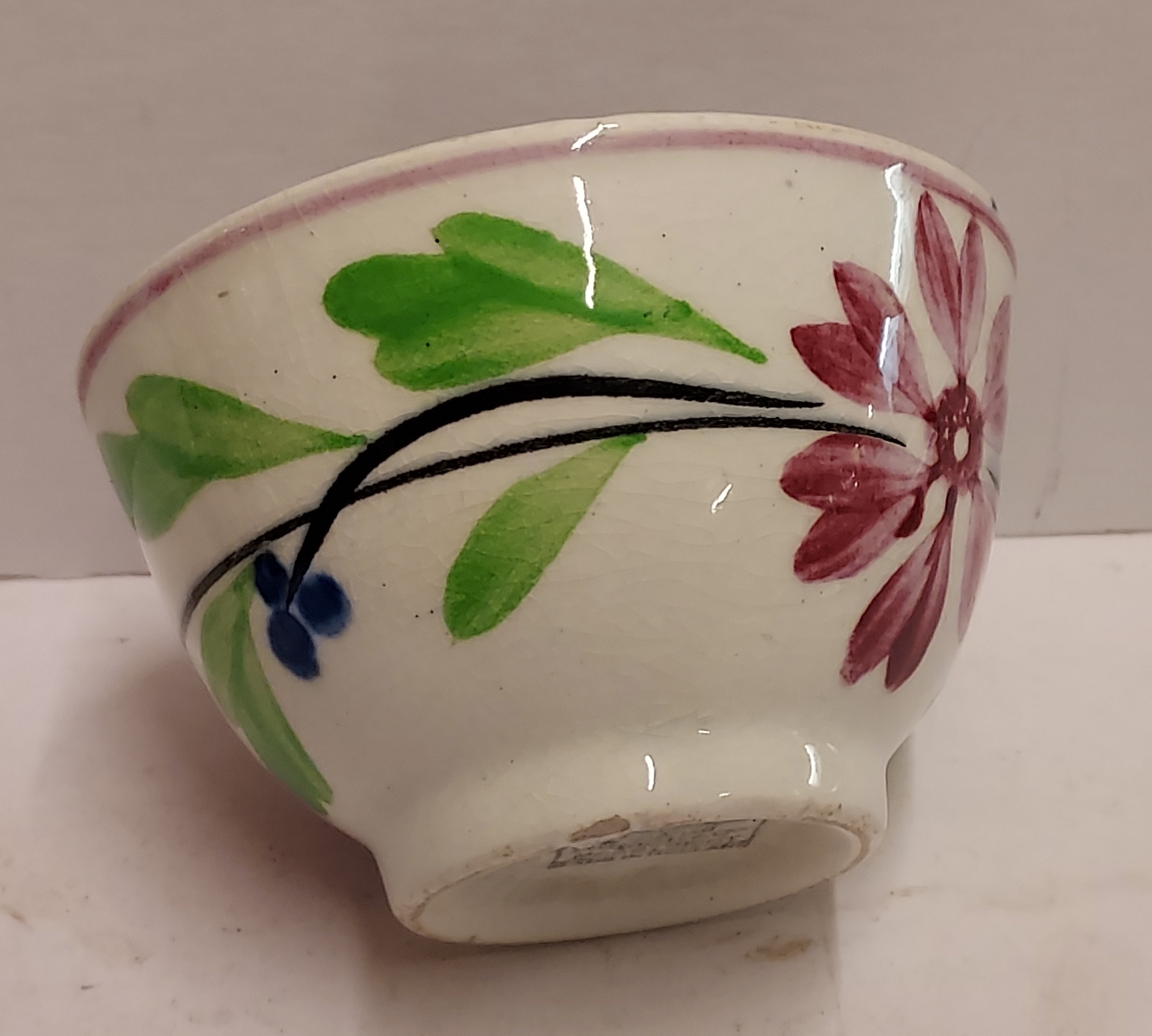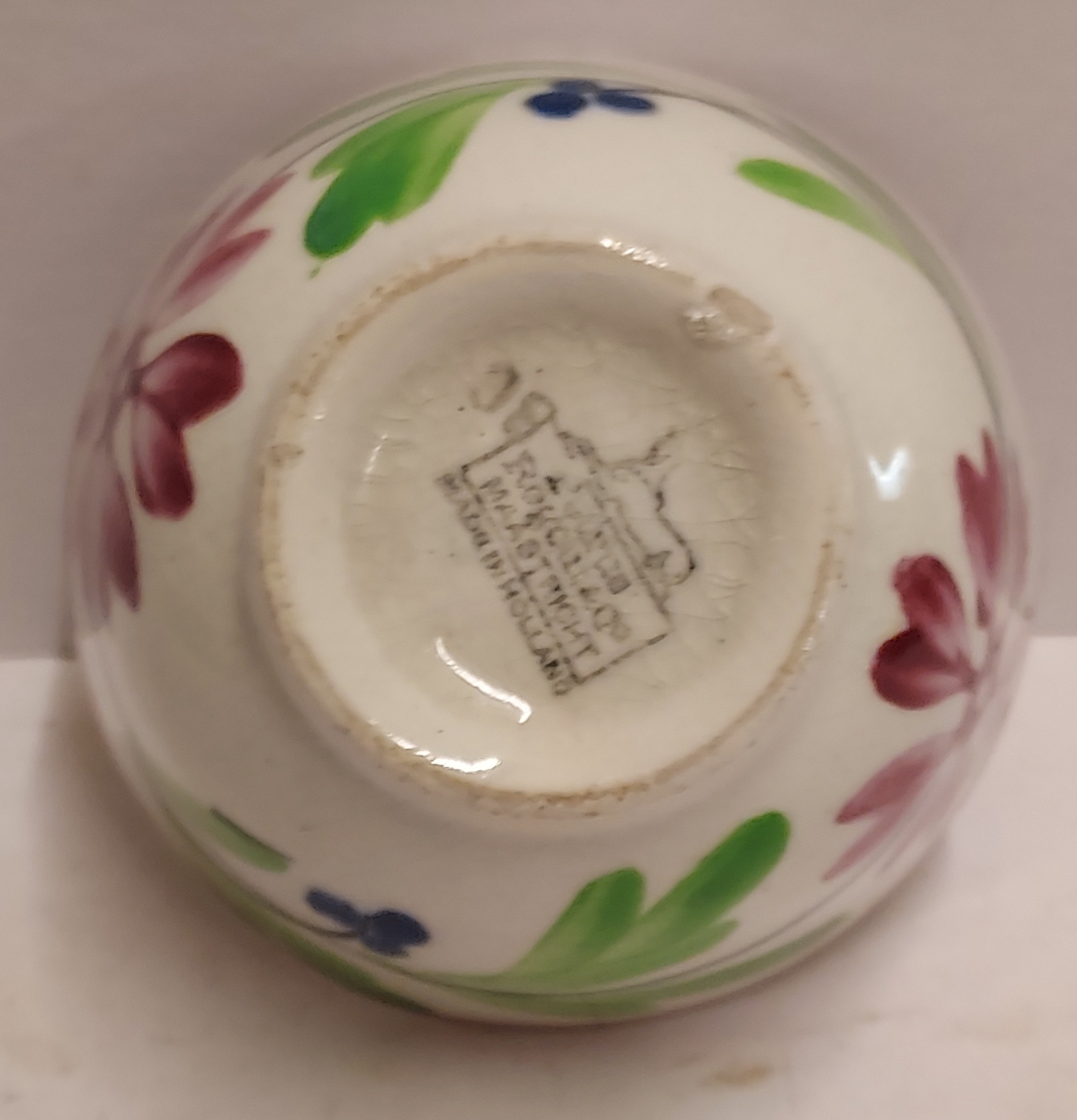 With leaves in bright green with a red flower and blue berries. Underside with factory mark.