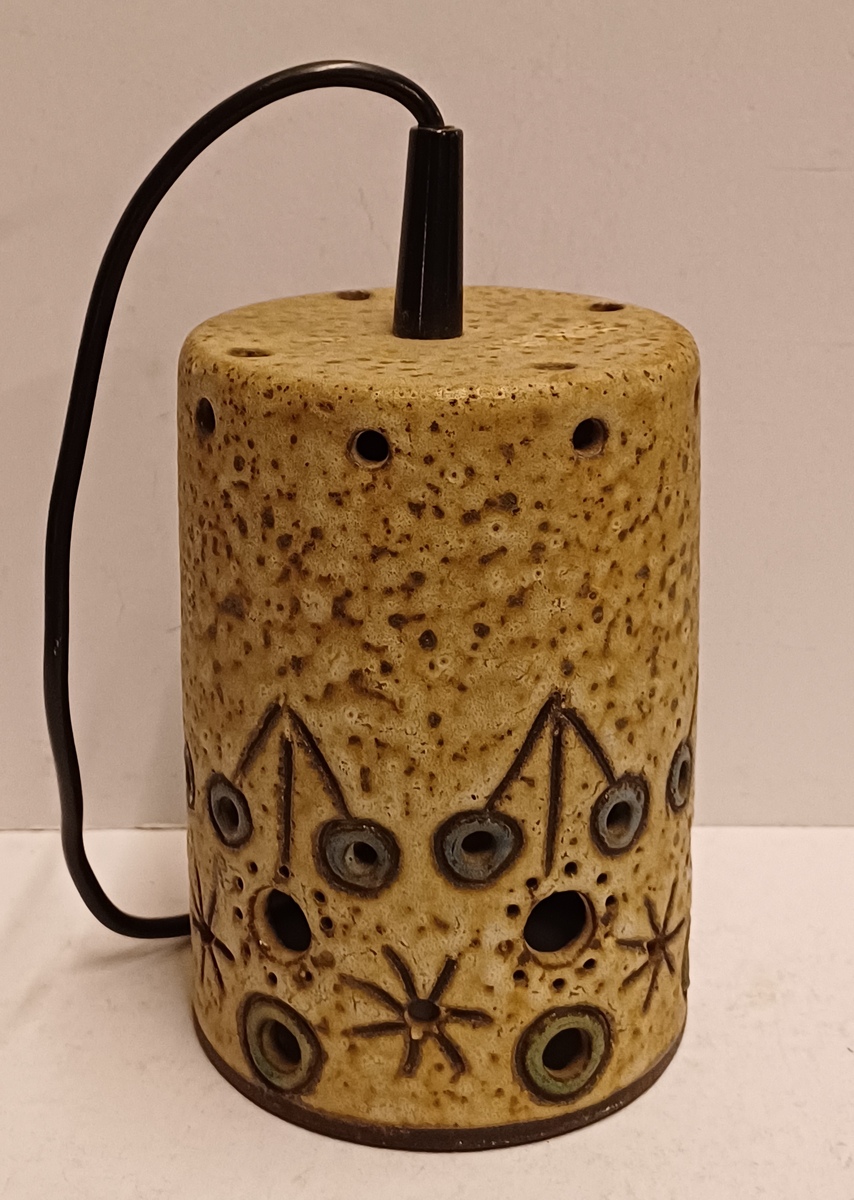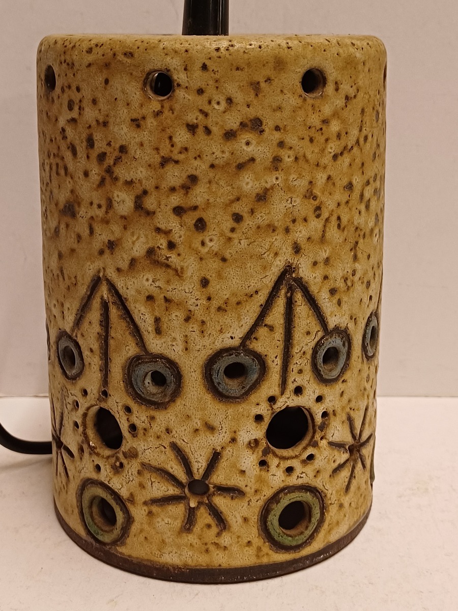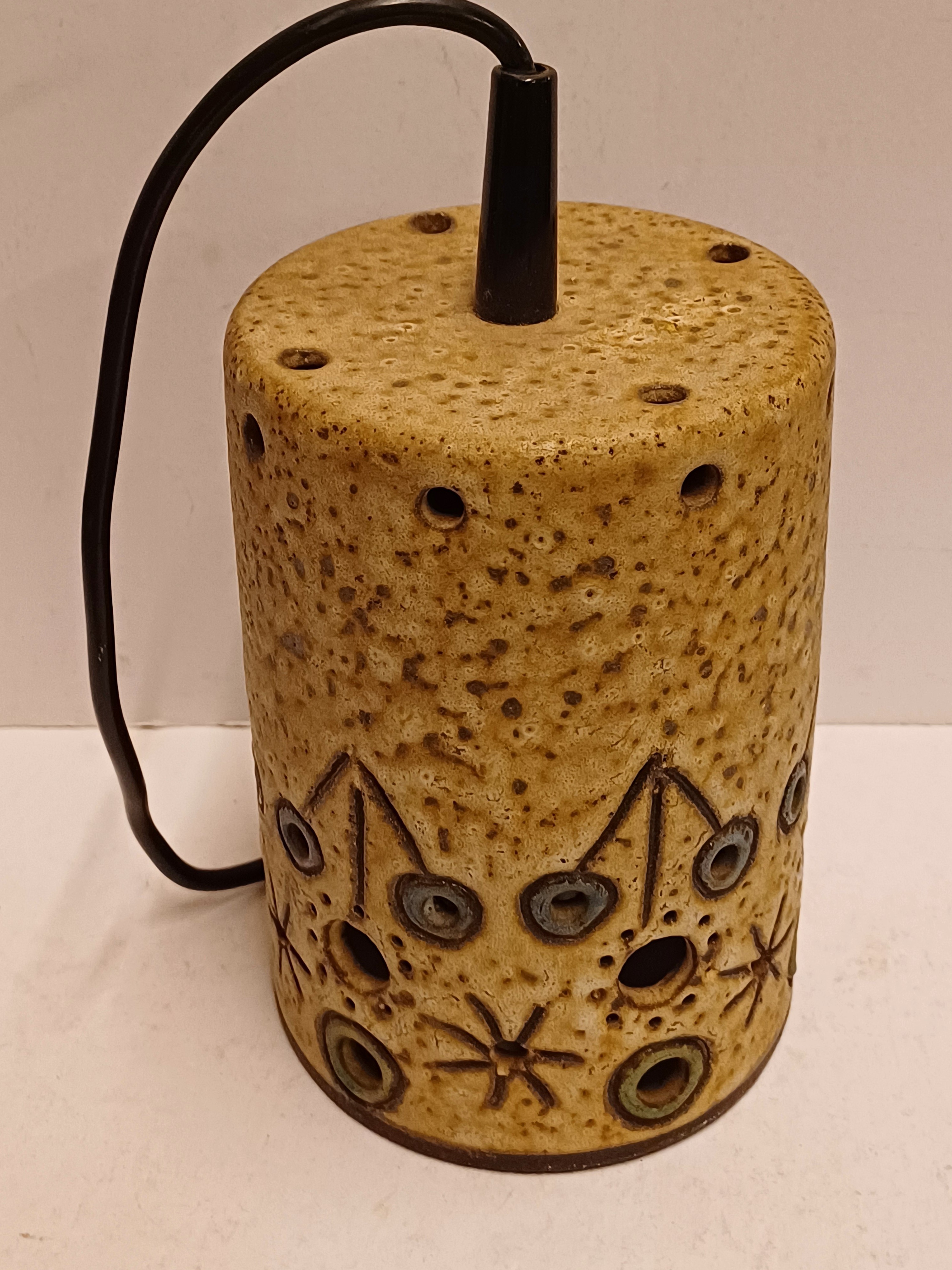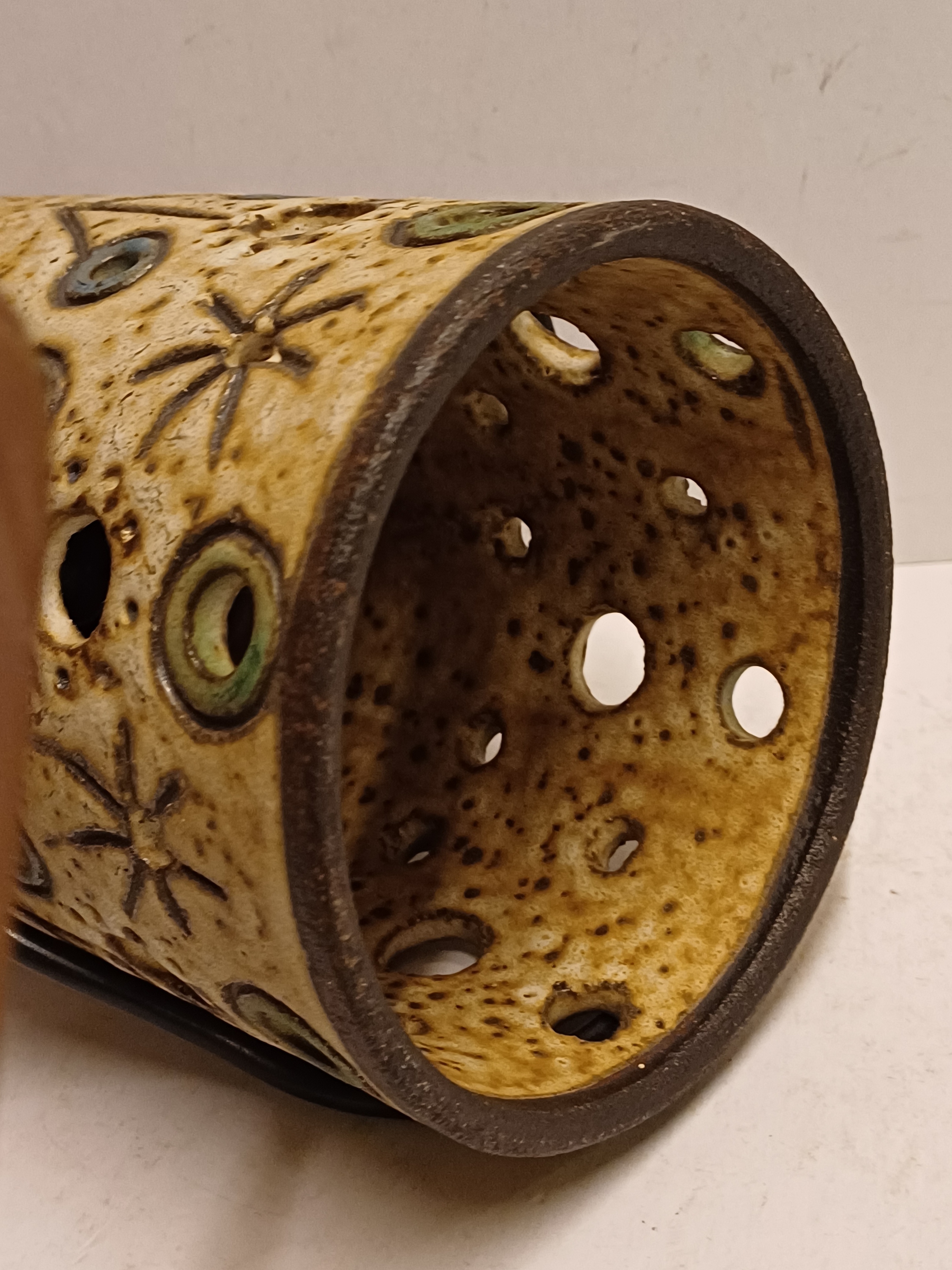 Earthenware cylindrical lampshade with openwork decor. Not signed.