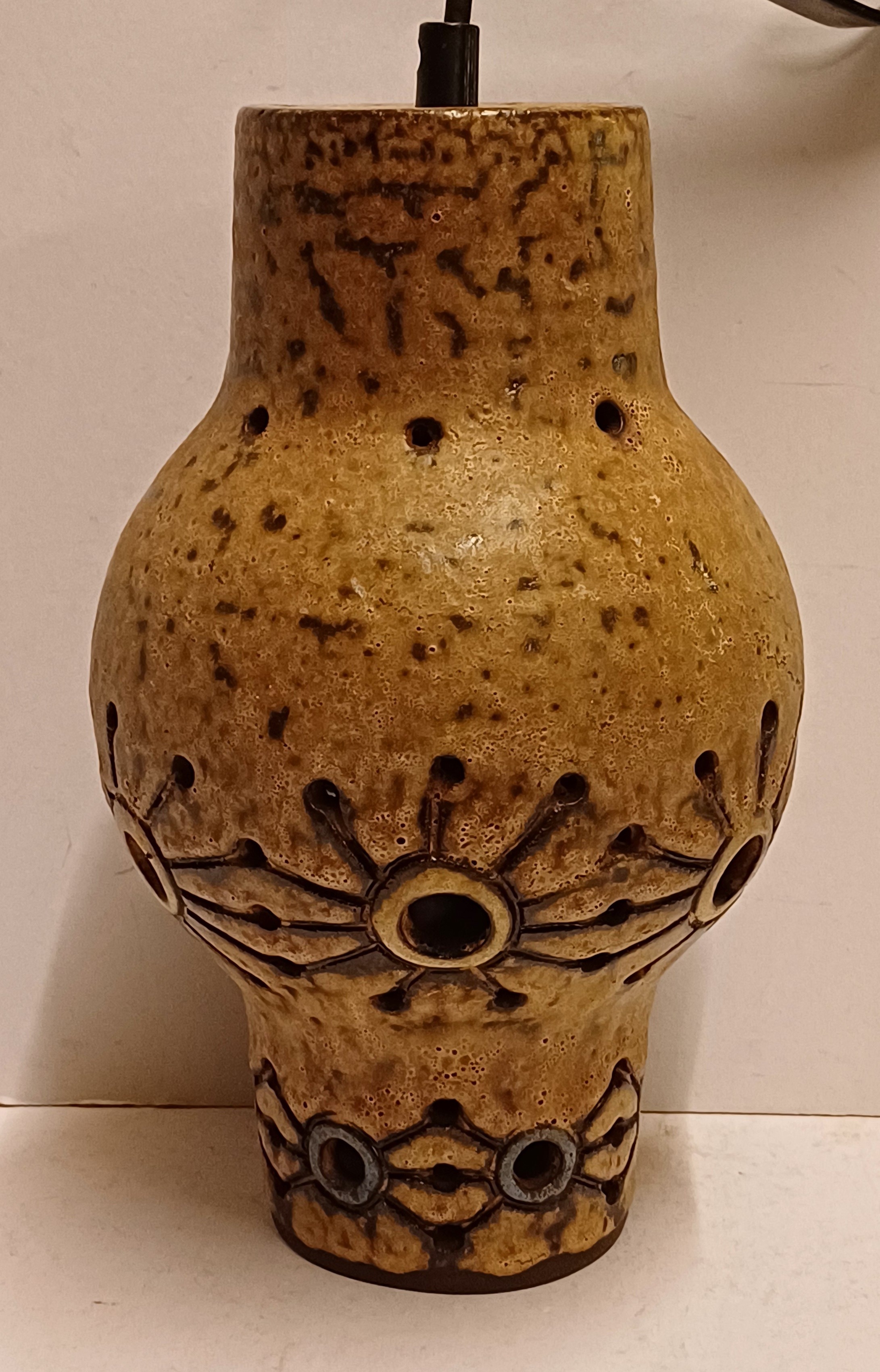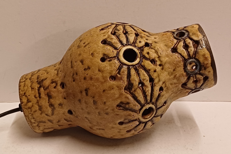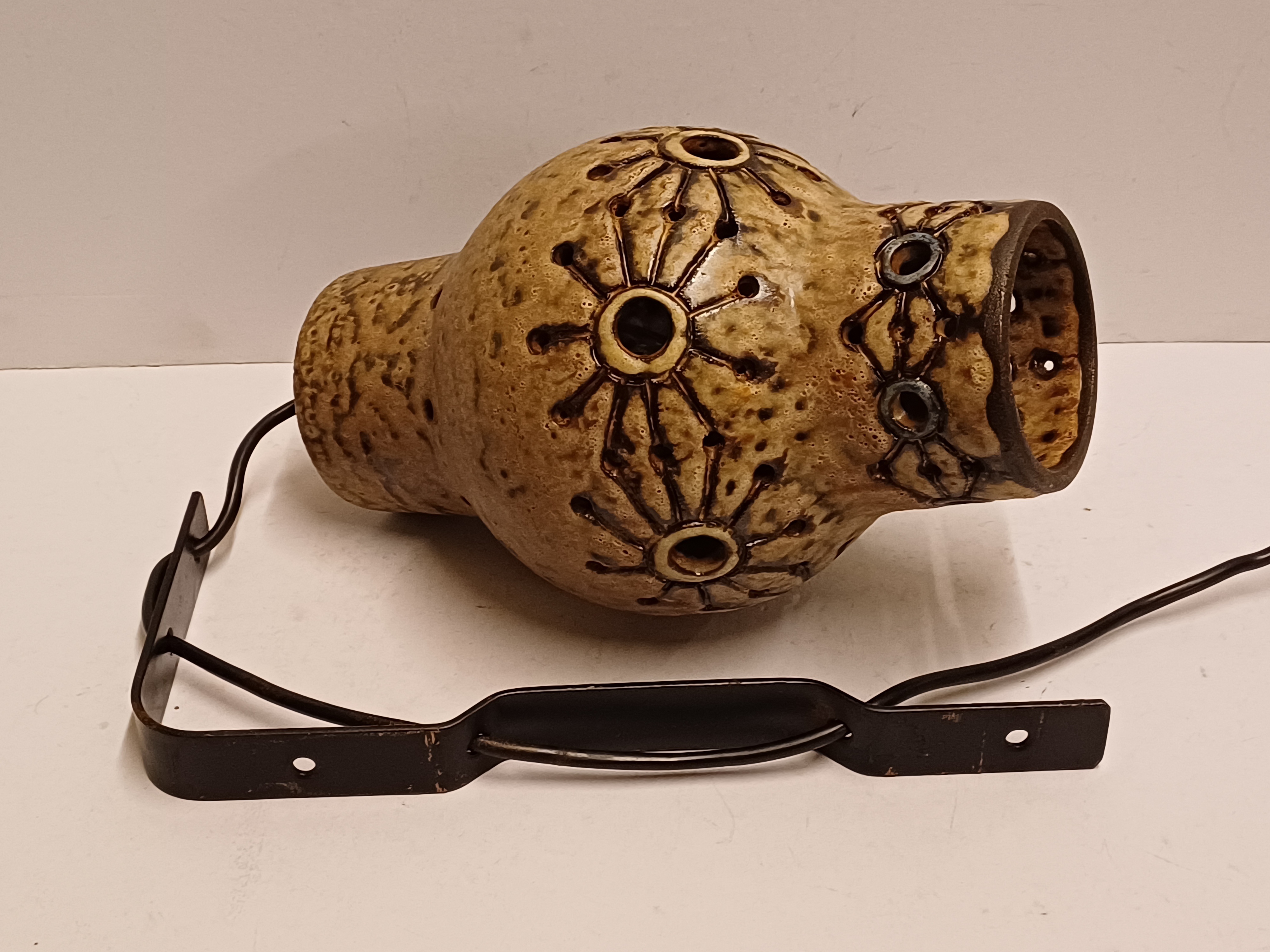Earthenware lampshade with openwork decor. Comes with corresponding wall mounting. Not signed.