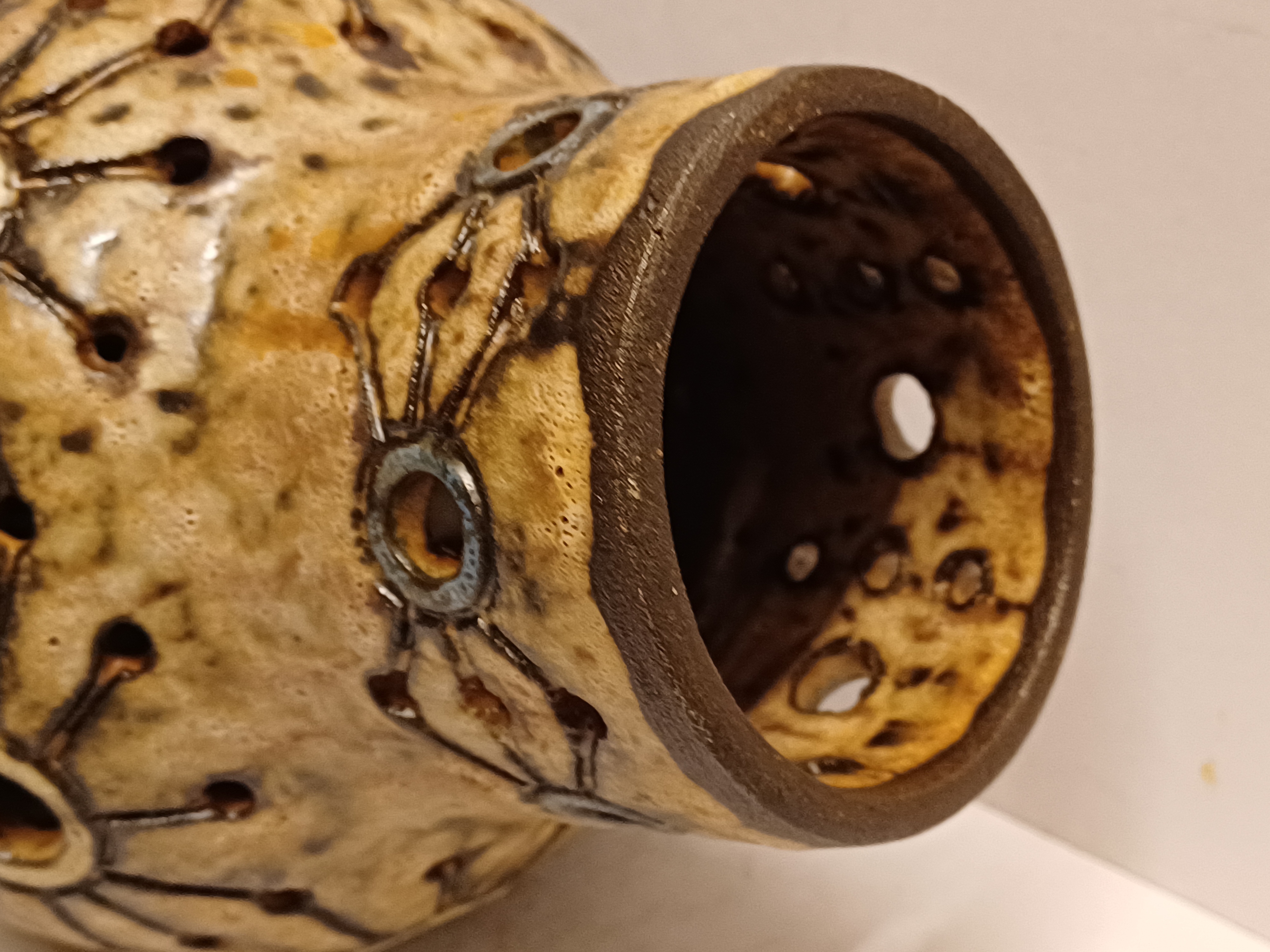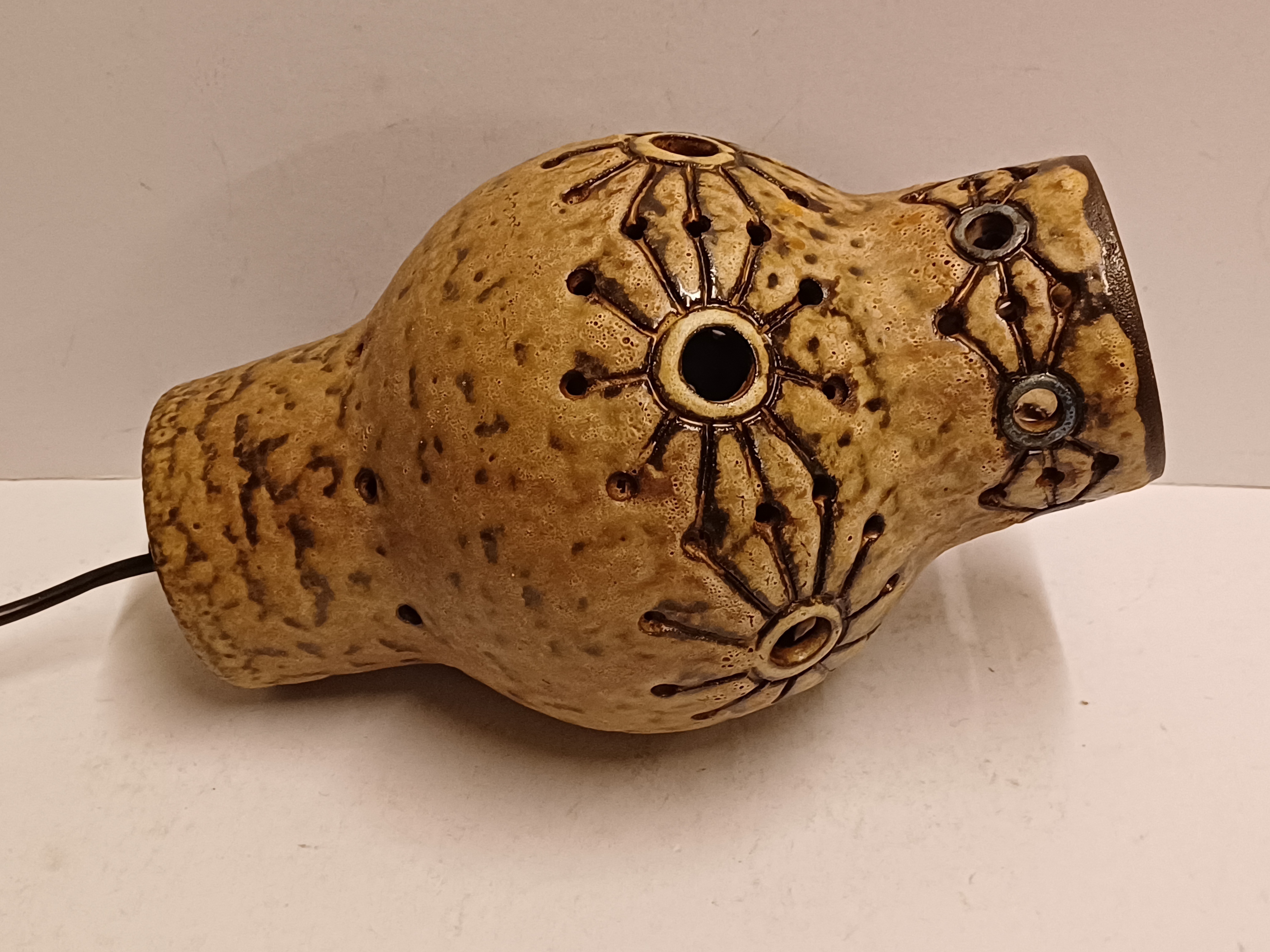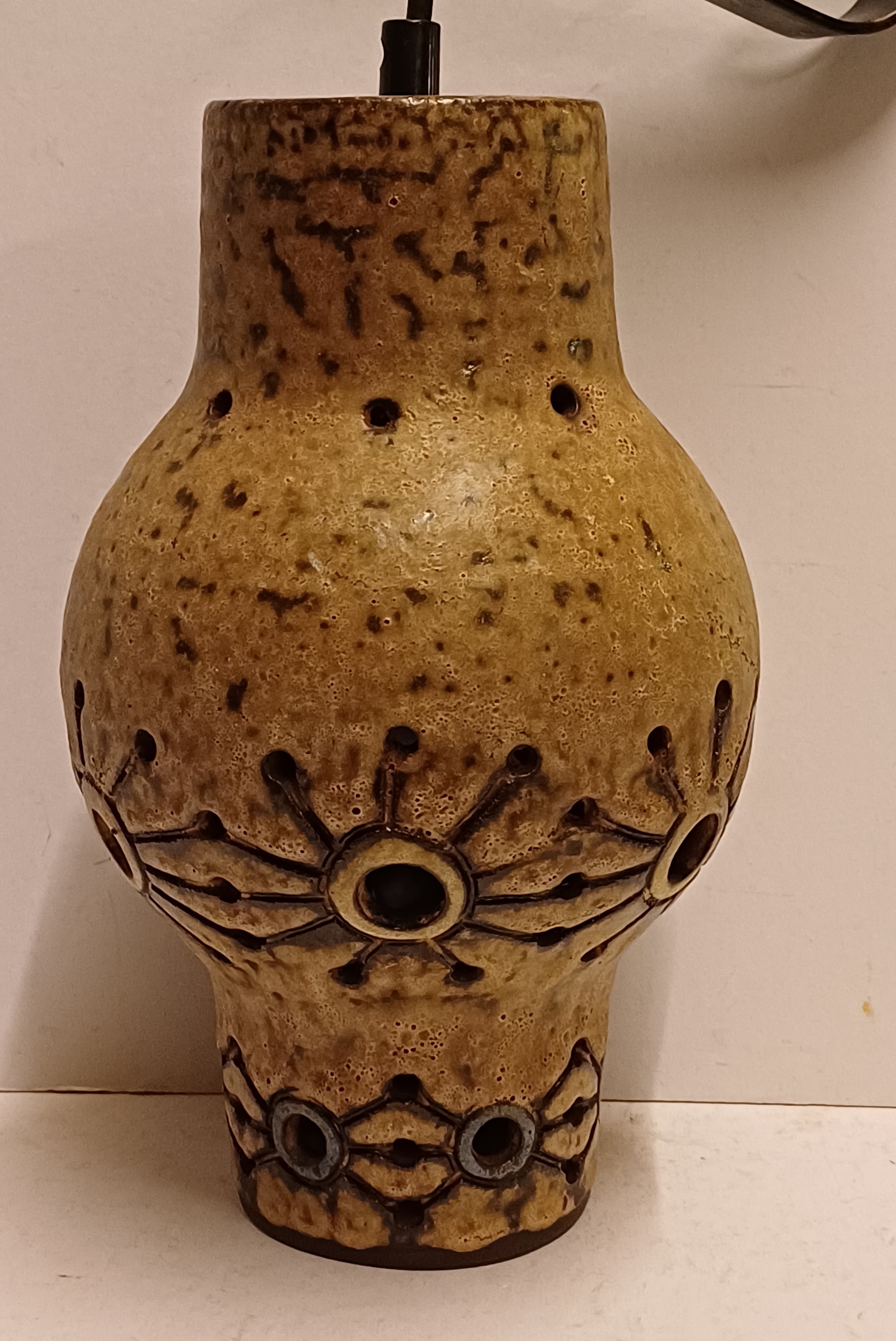 Earthenware lampshade with openwork decor. Comes with corresponding wall mounting. Not signed.