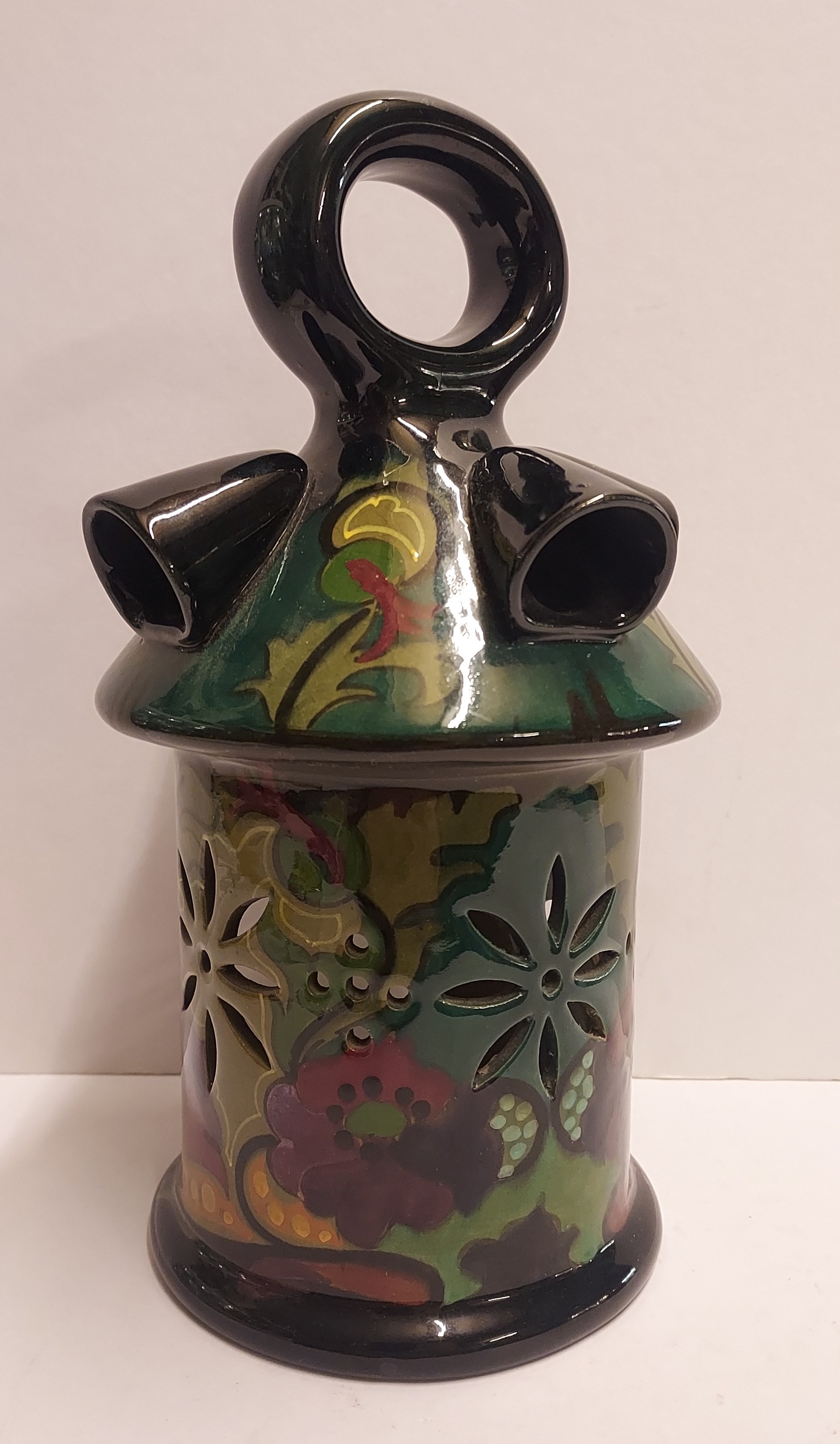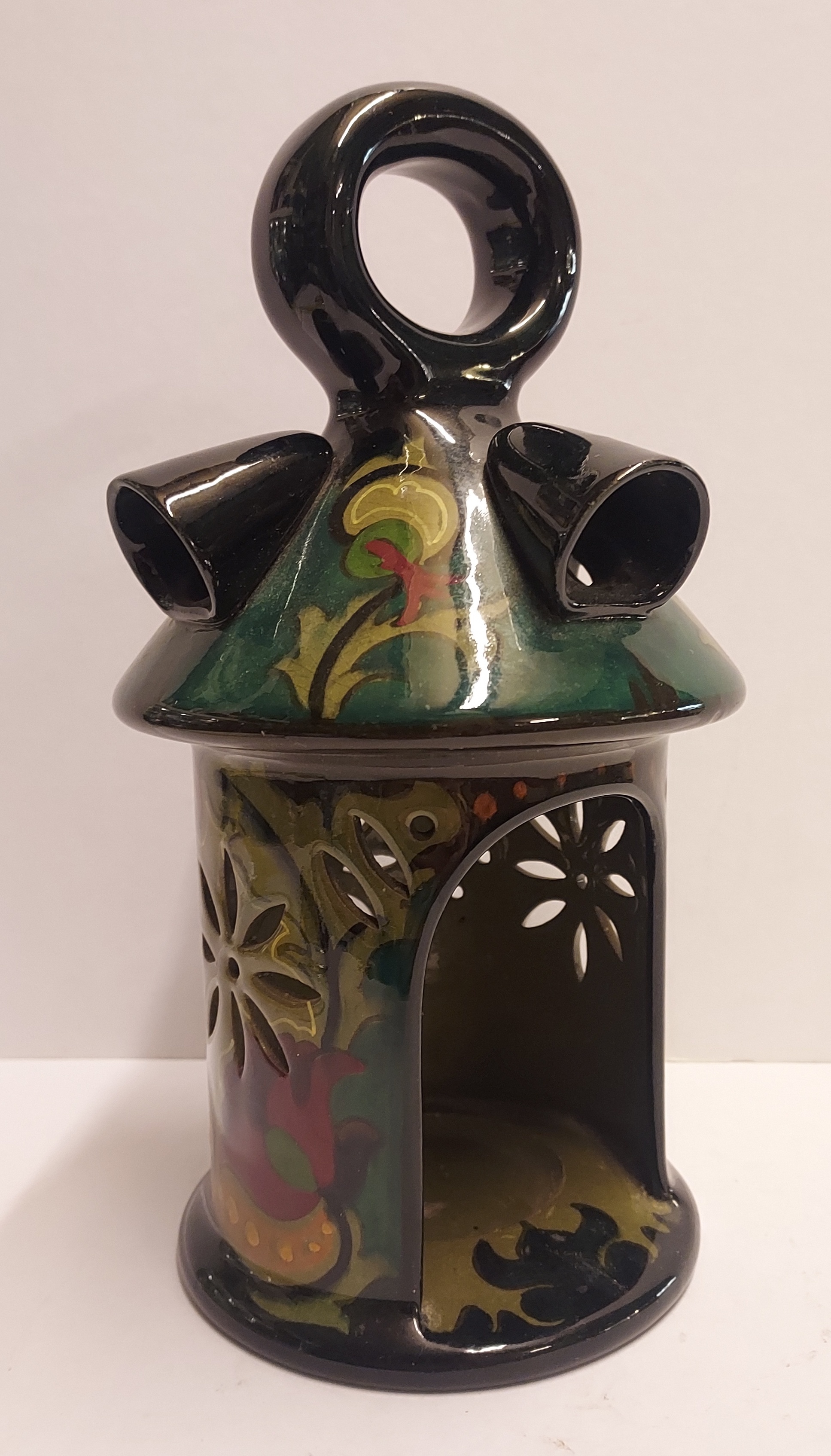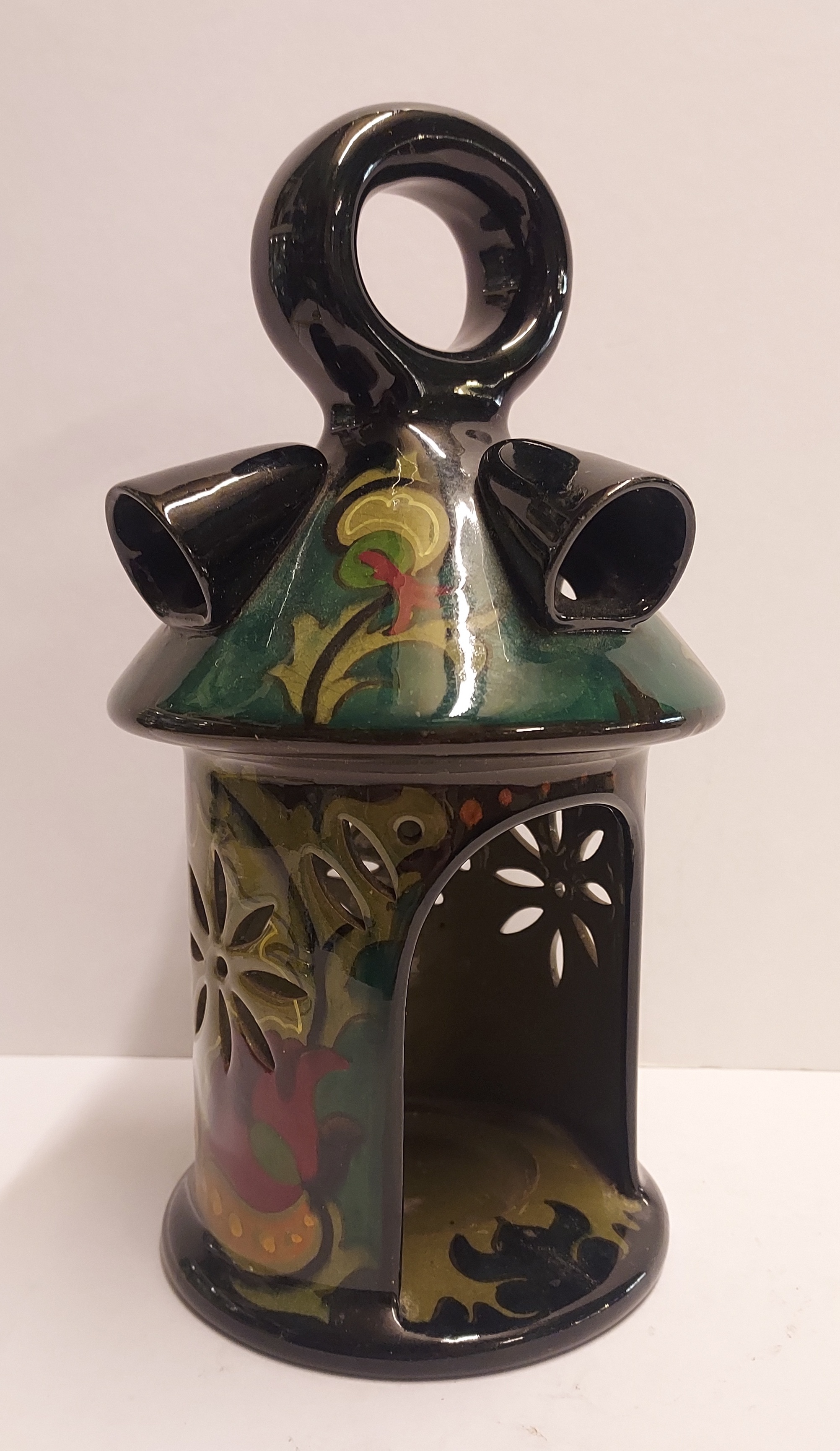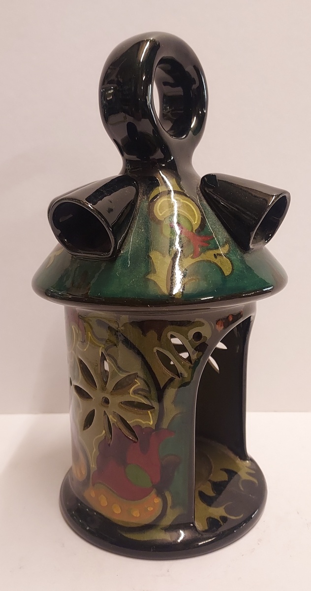 Glazed earthenware lantern with floral decoration. Bottom with factory mark and year letter 1922.