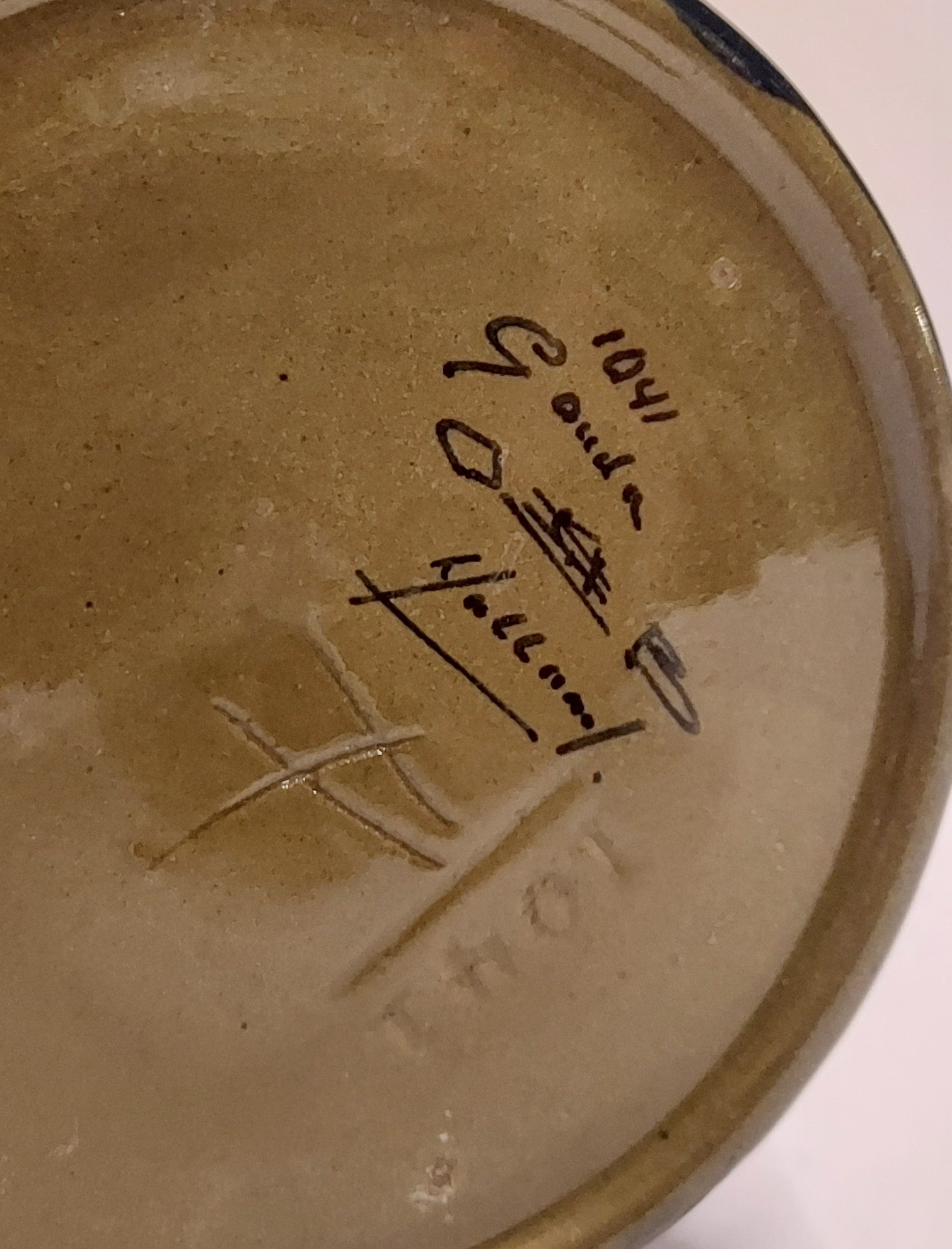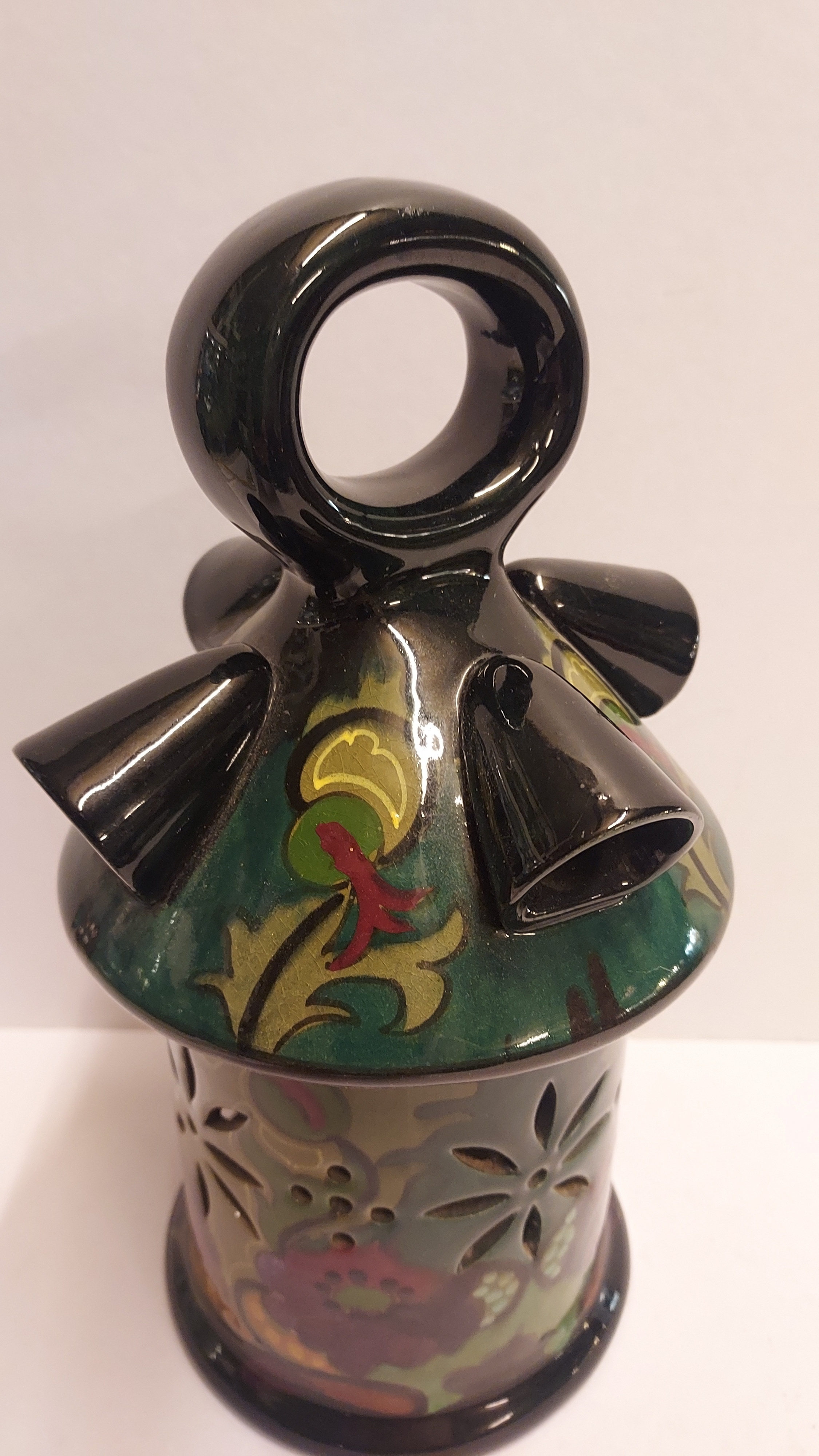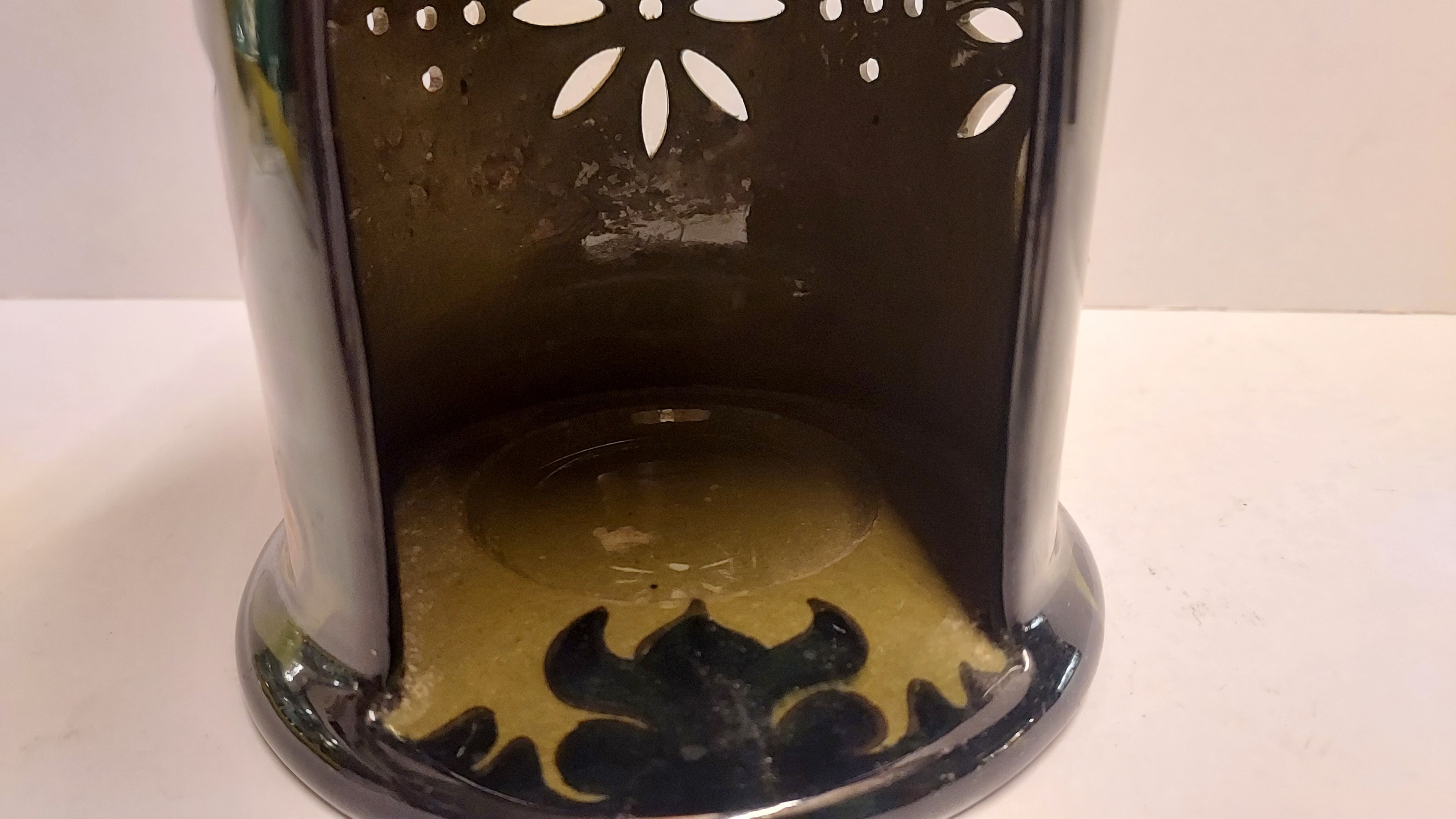 Glazed earthenware lantern with floral decoration. Bottom with factory mark and year letter 1922.