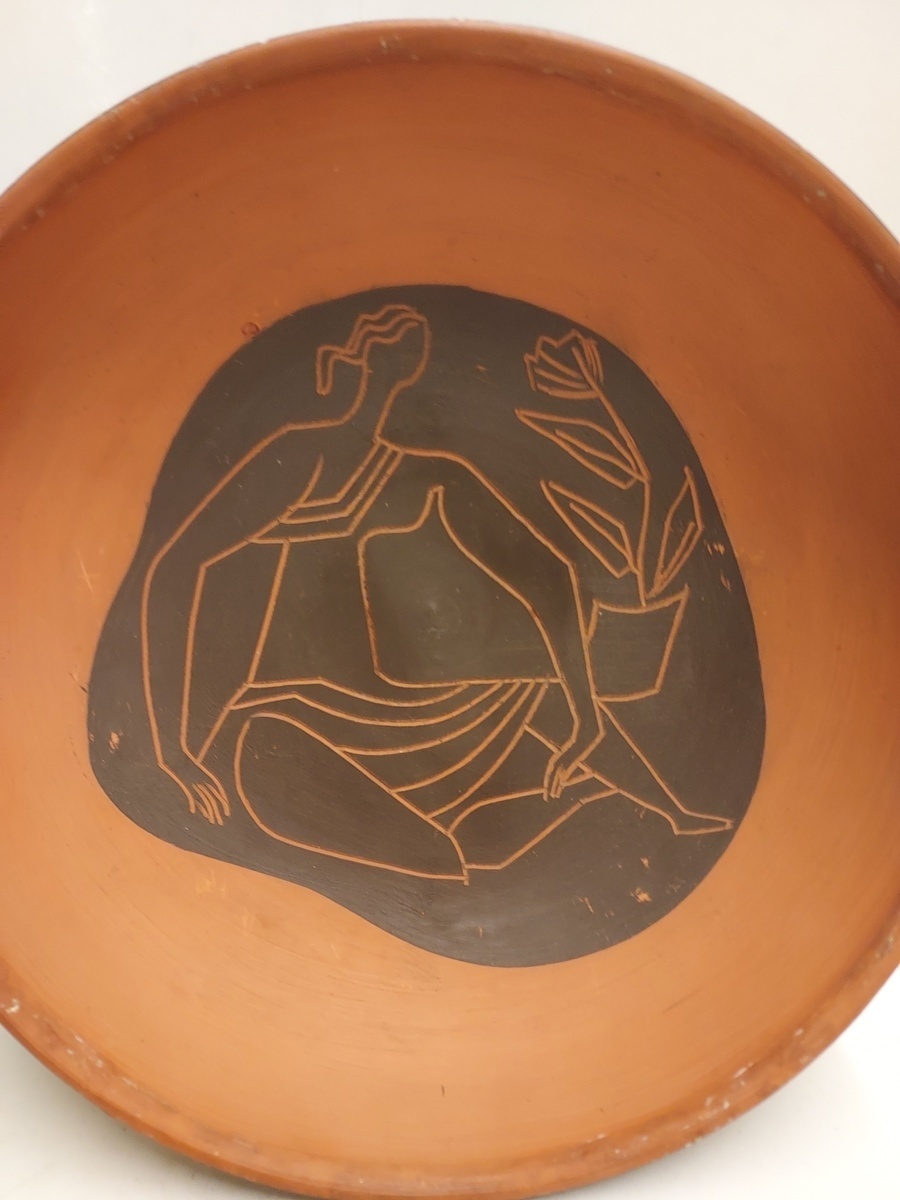 Unique bowl with a mythological representation by the hand of Joep Thissen. Signed on the bottom.