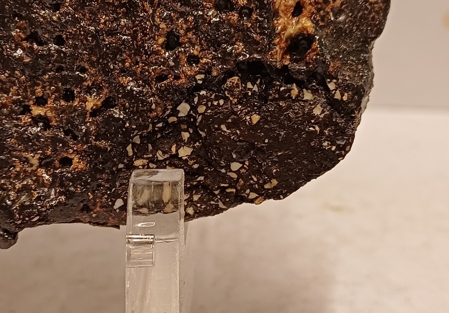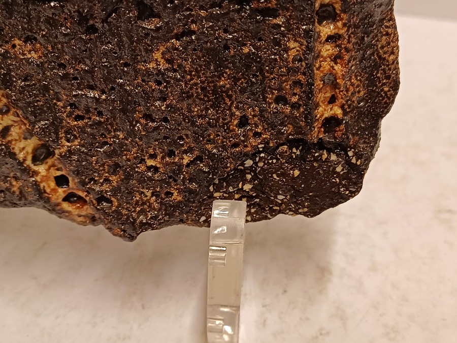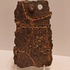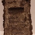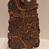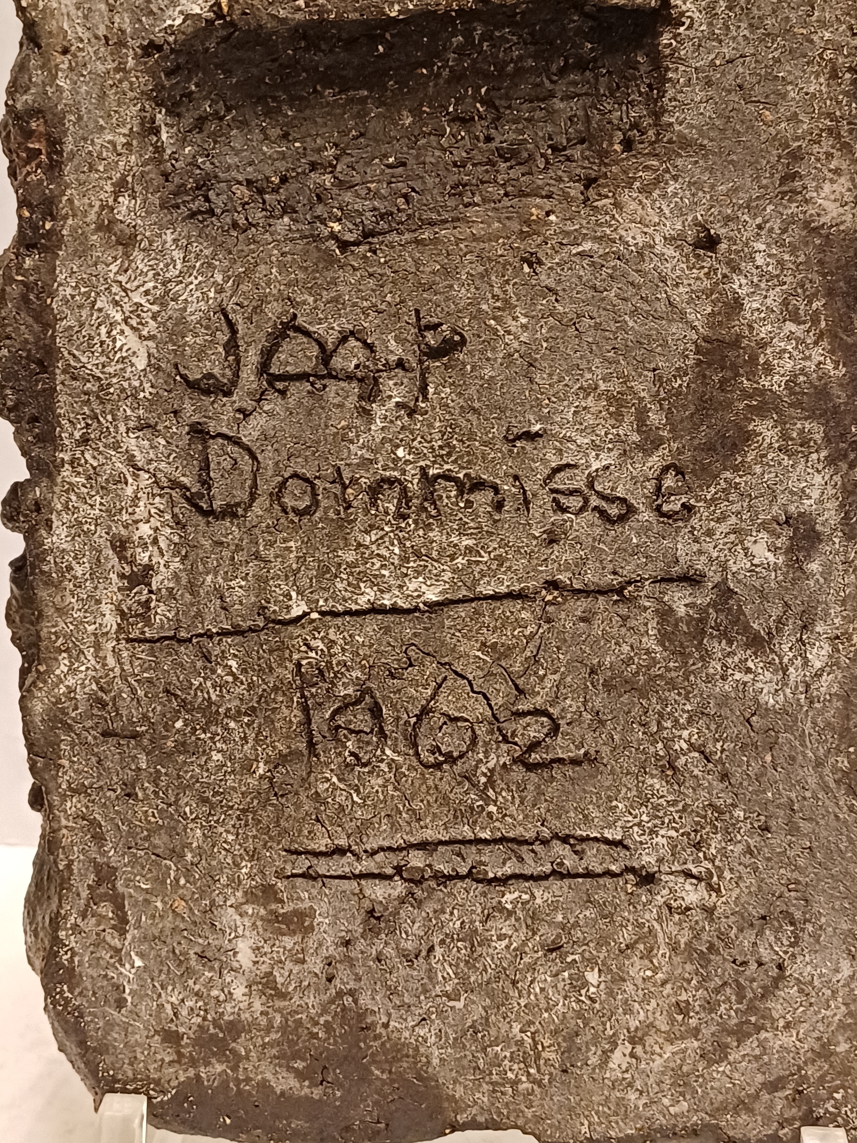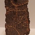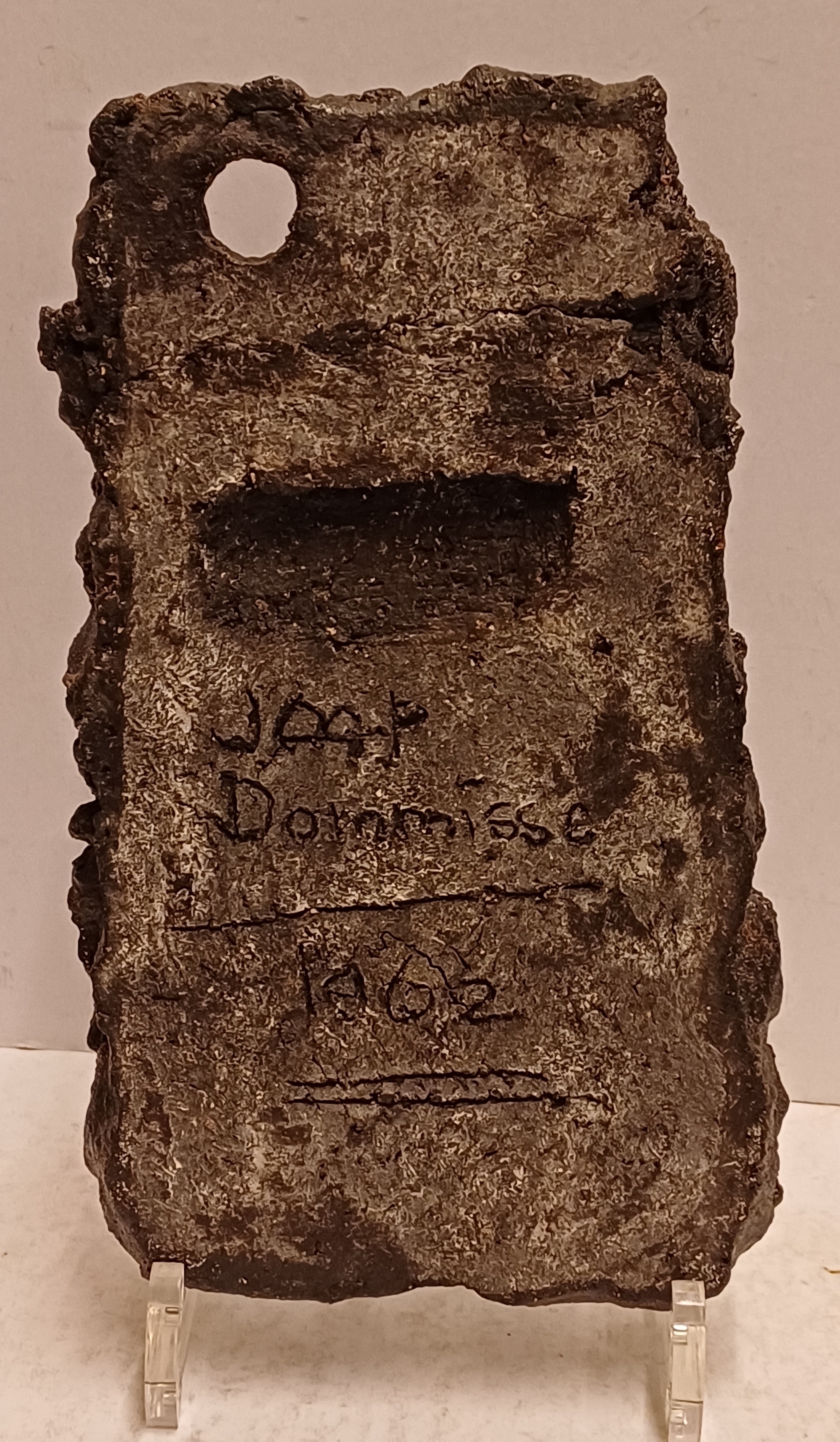 Aardewerken plaquette met ingekraste abstracte decoratie en gat. Achterzijde voluit gesigneerd en gedateerd 1962.