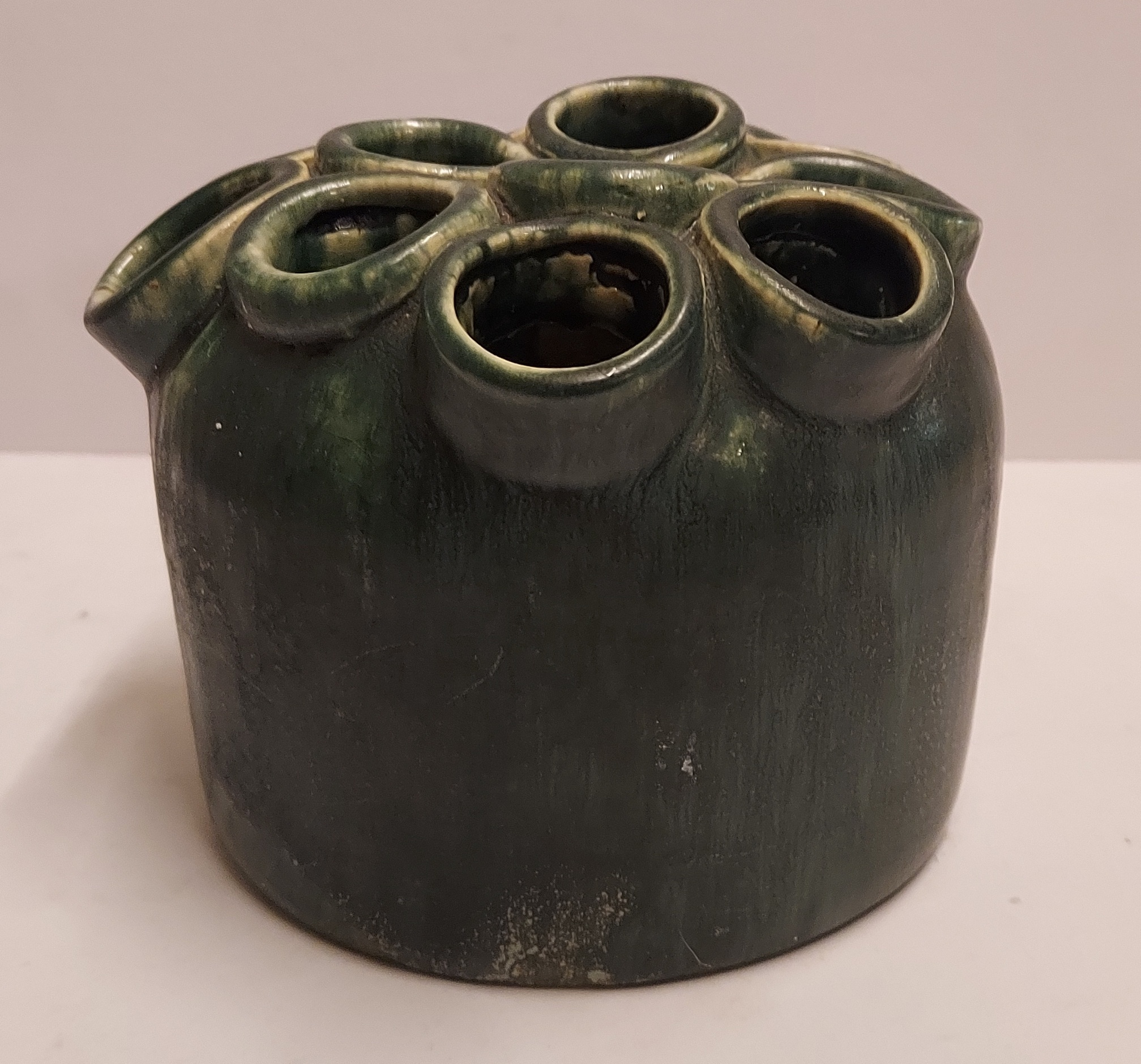 Dark green glazed rose frog. Bottom signed LQB '80.