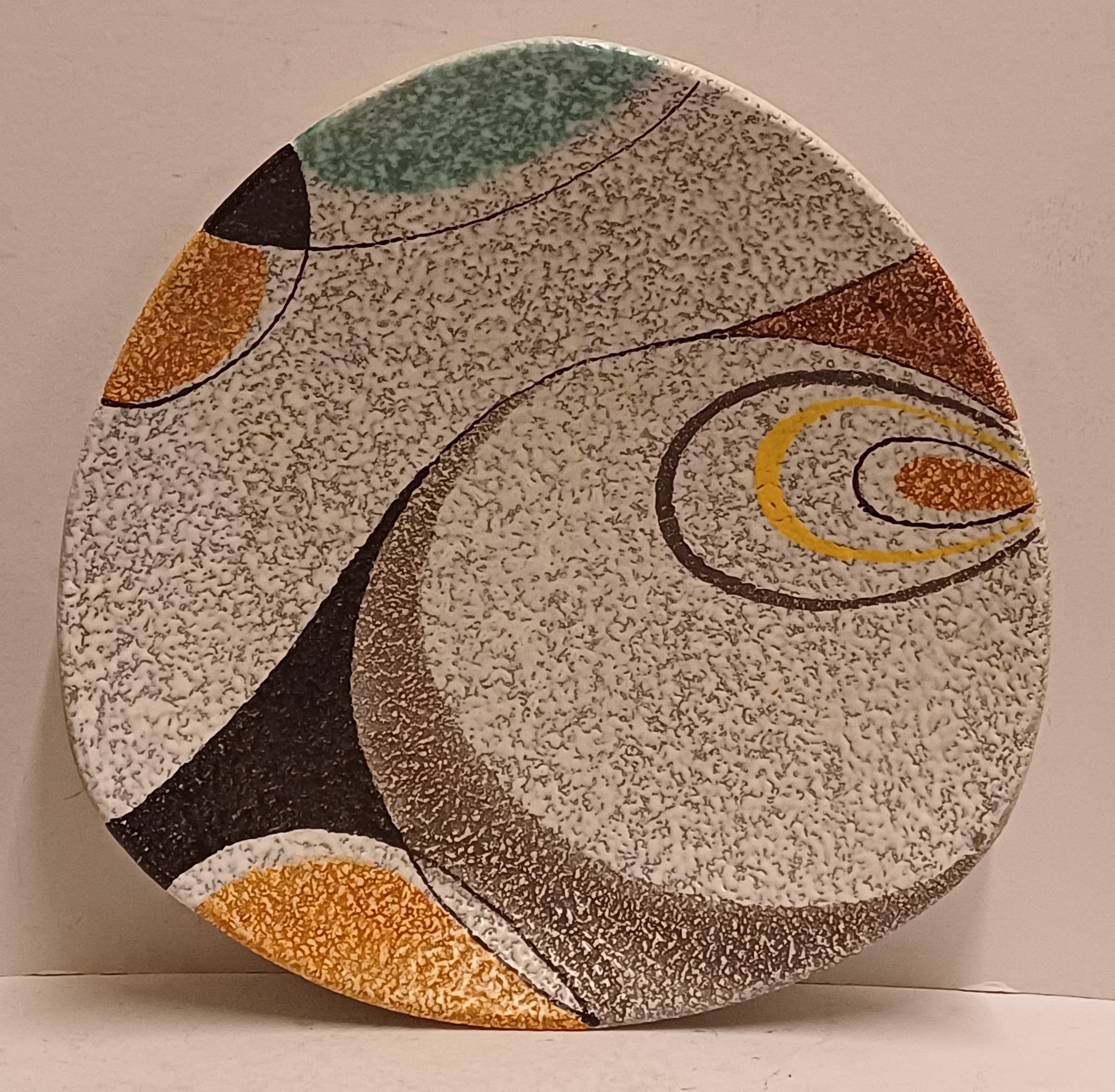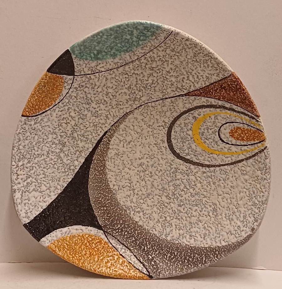Platelen schaal met decor Rumba op grijs fond. Onderzijde met fabrieksmerk en modelnummer.