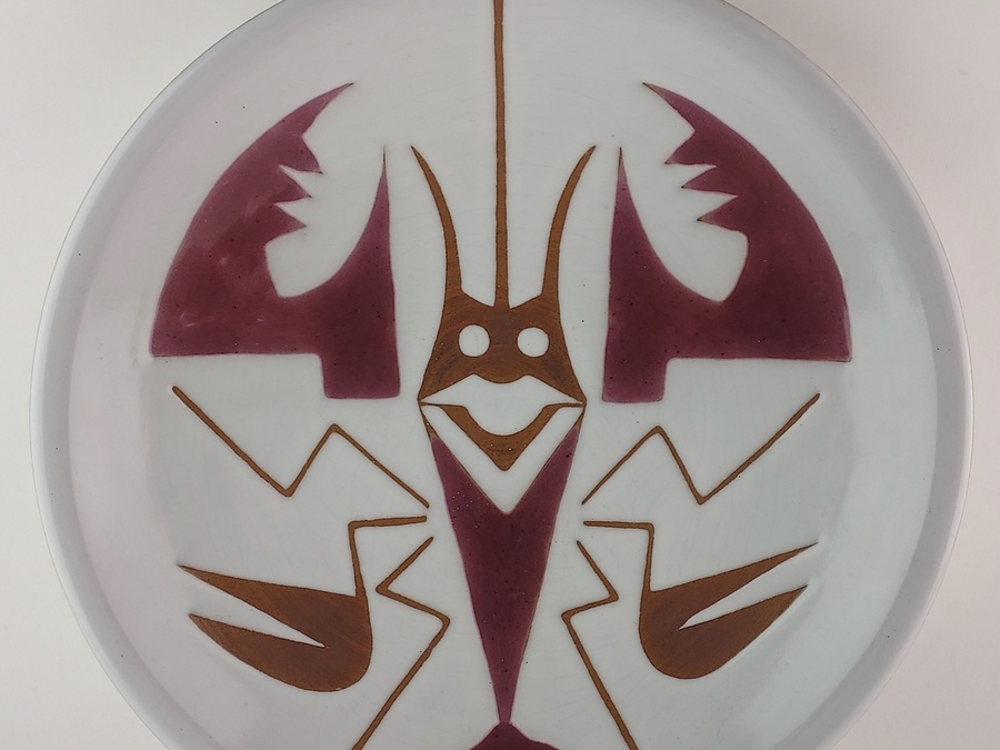 With a stylized decor of a lobster. Reverse side with factory mark.