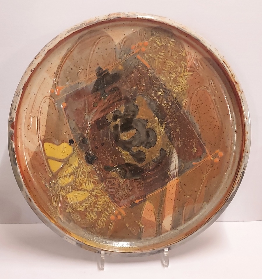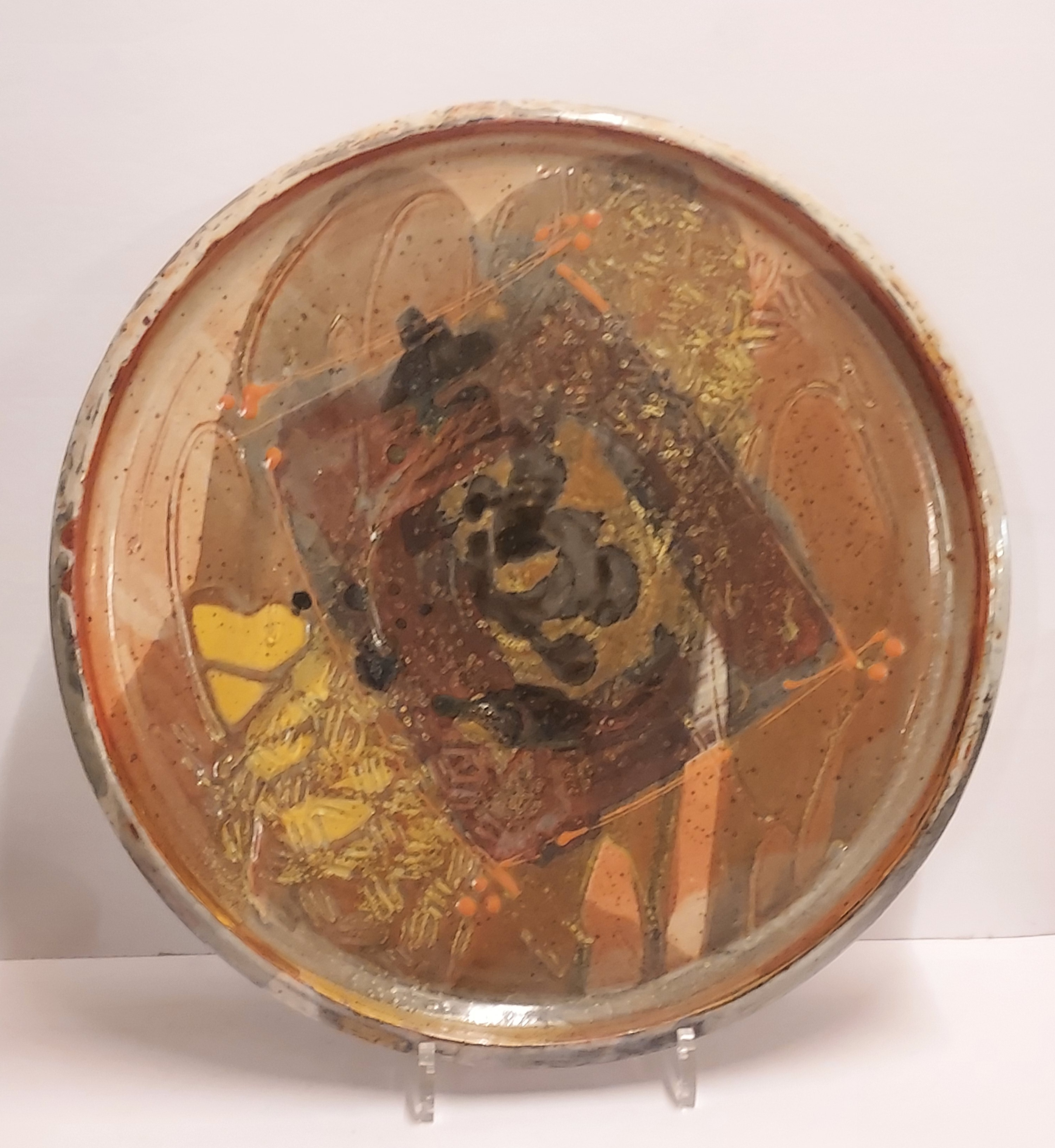 Large bowl with stoneware glaze in brown shades. Marked on the back.