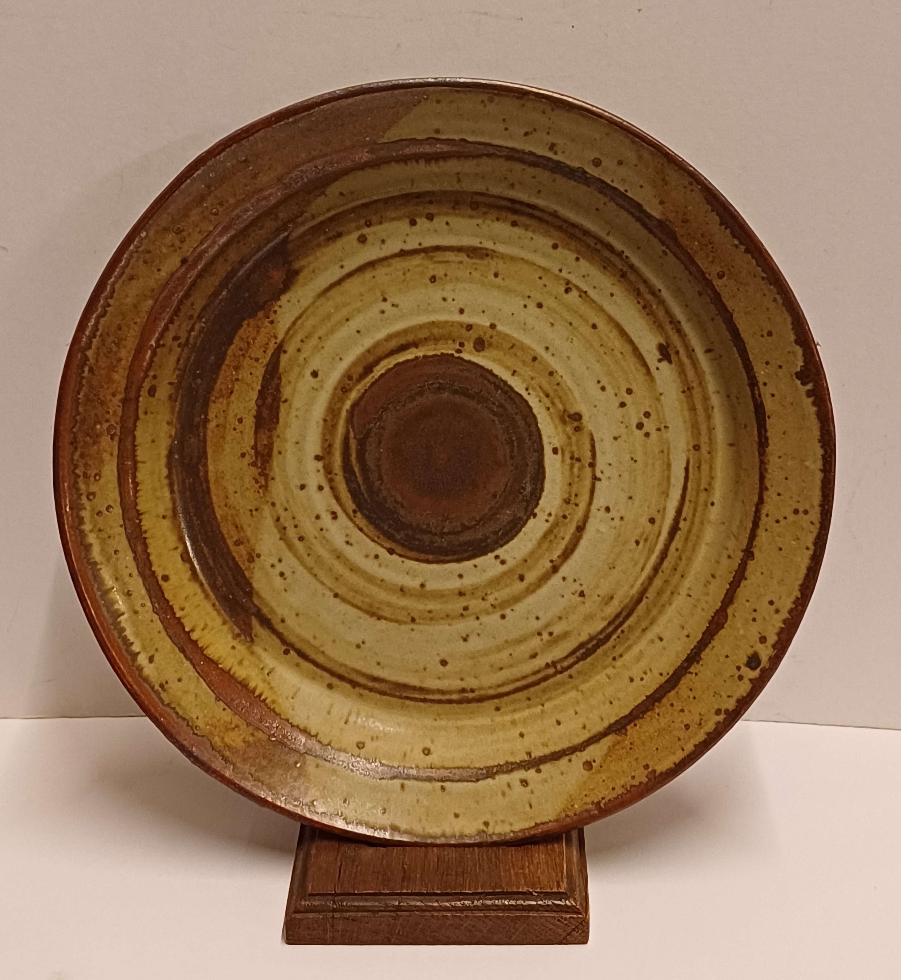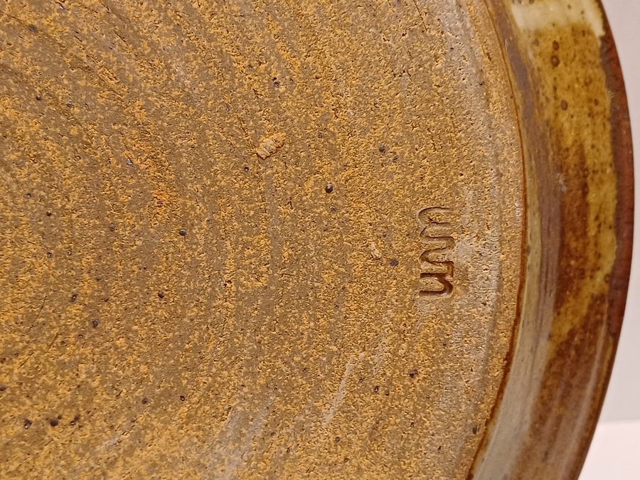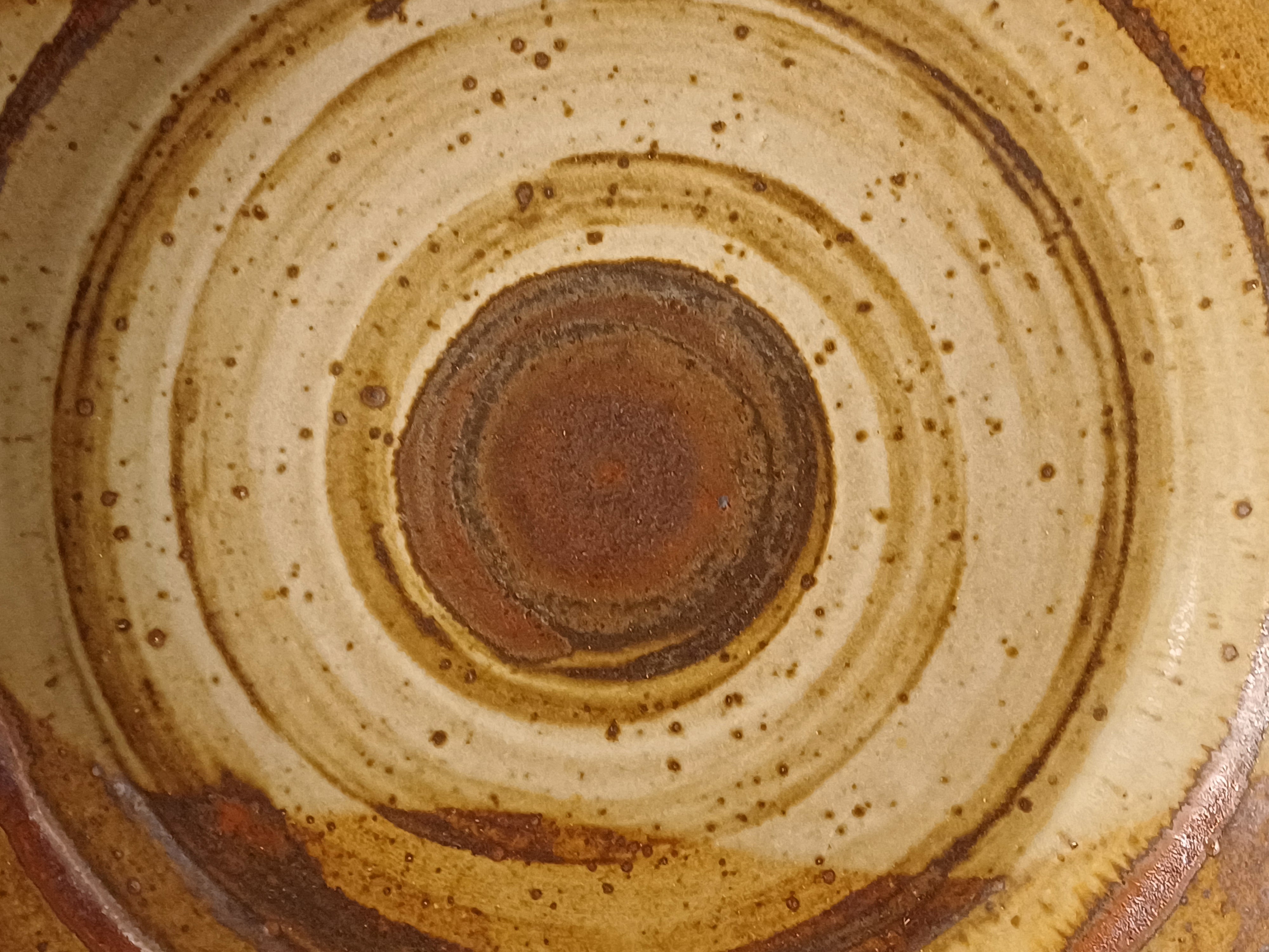 Stoneware bowl with brown cream glaze. Bottom with artist's monogram.
