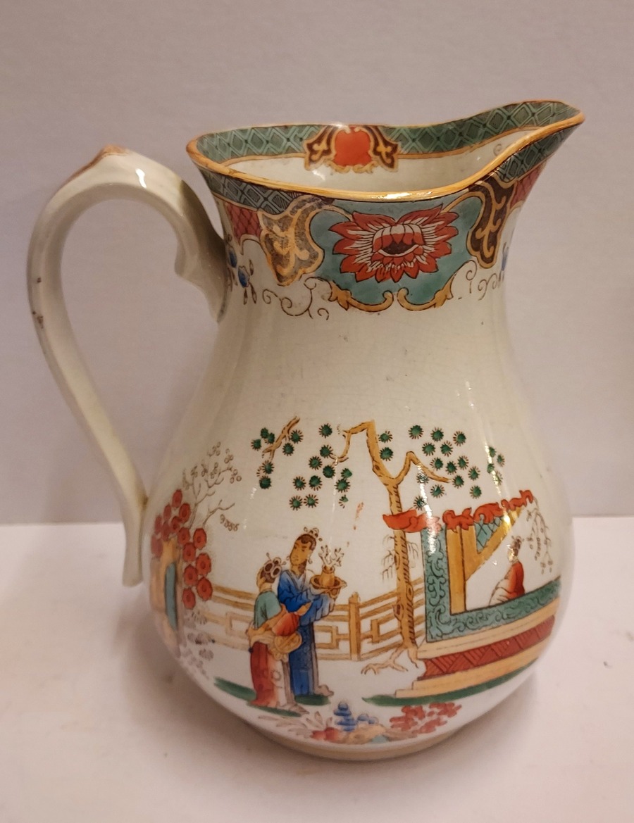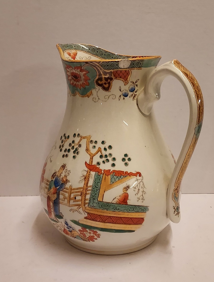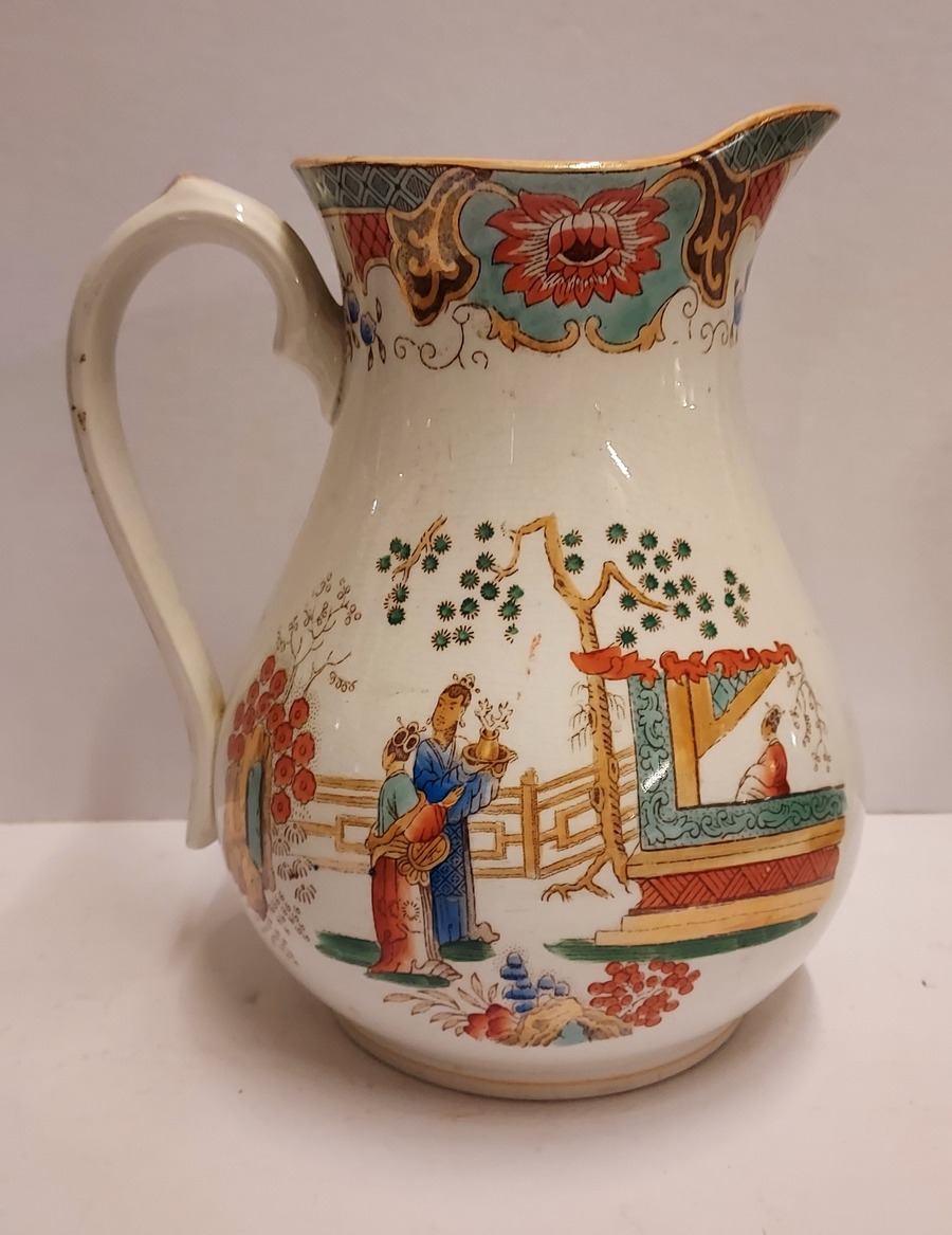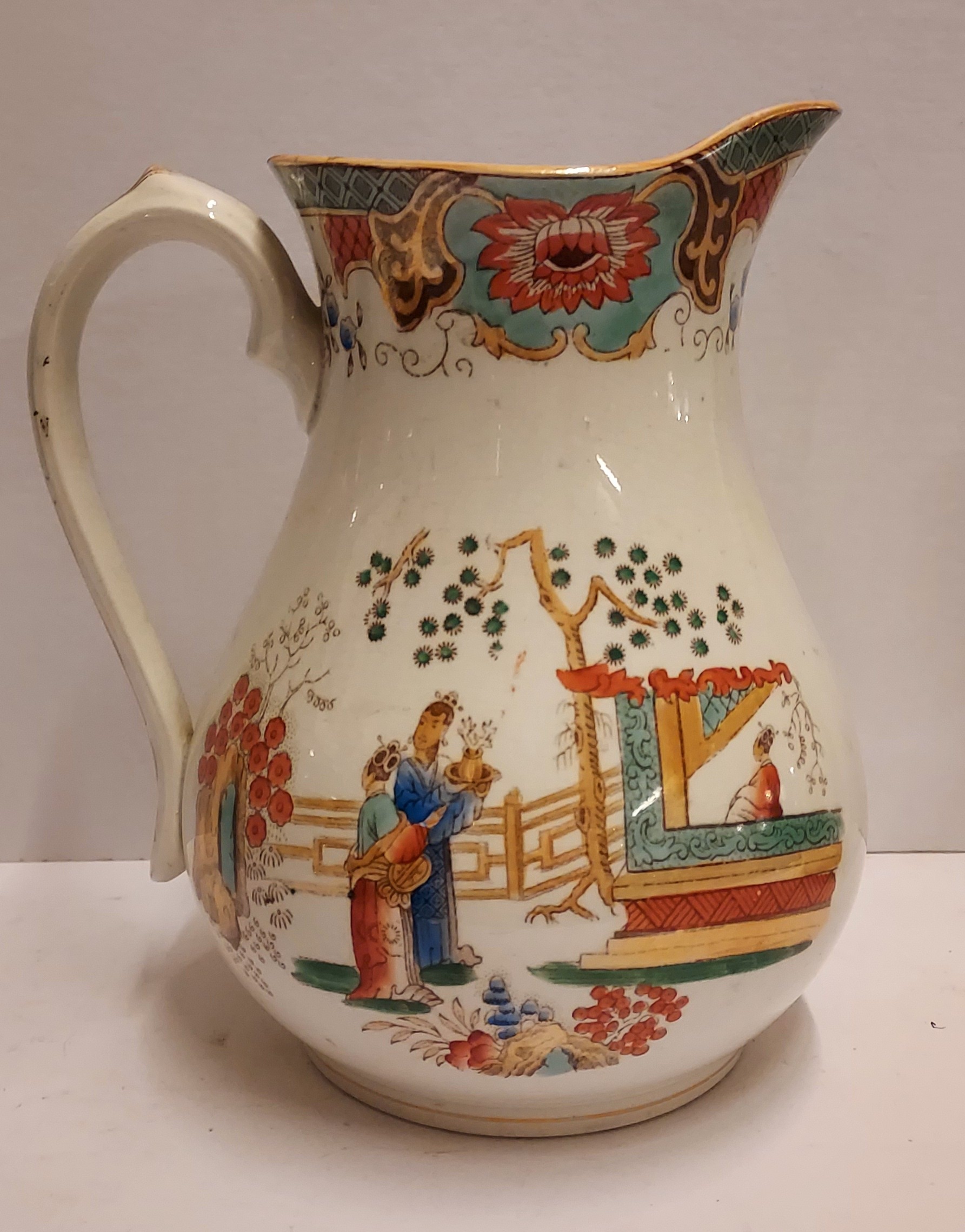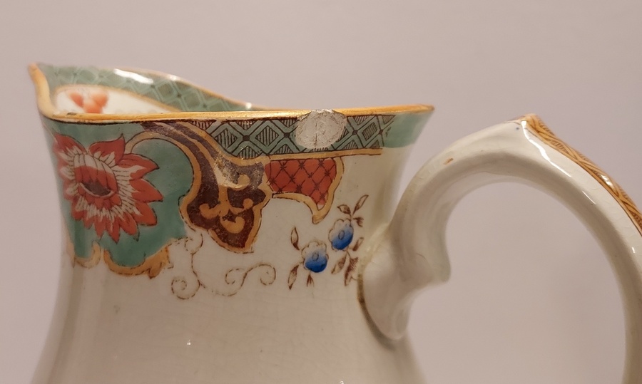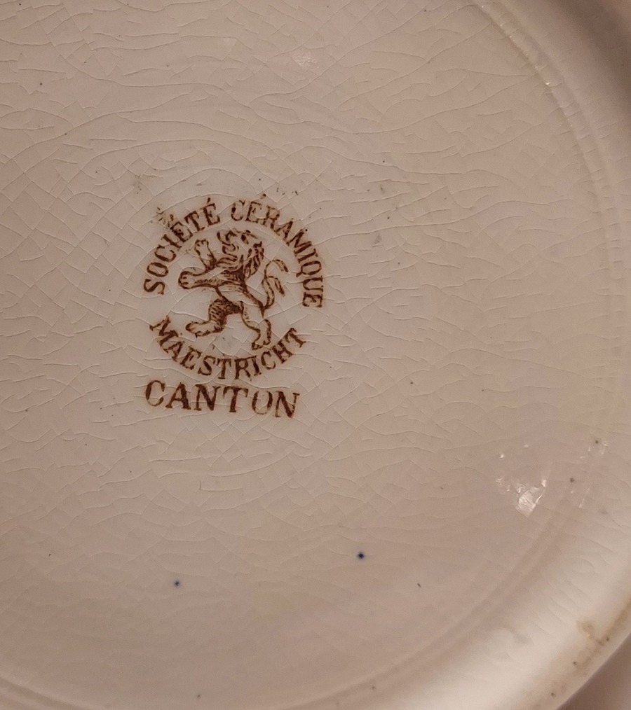 Polychrome decor in brown shades. Bottom with factory mark, production period 1865-1965.