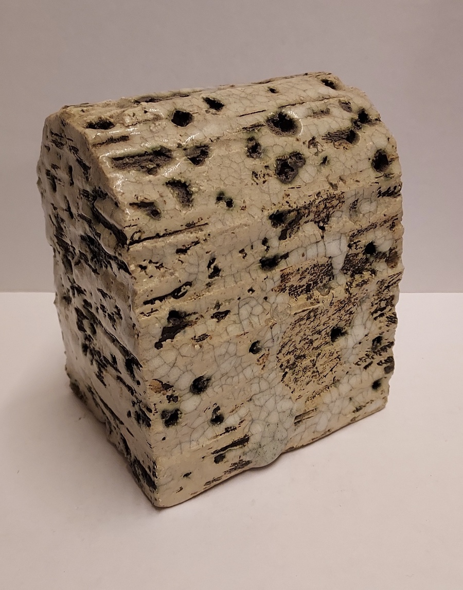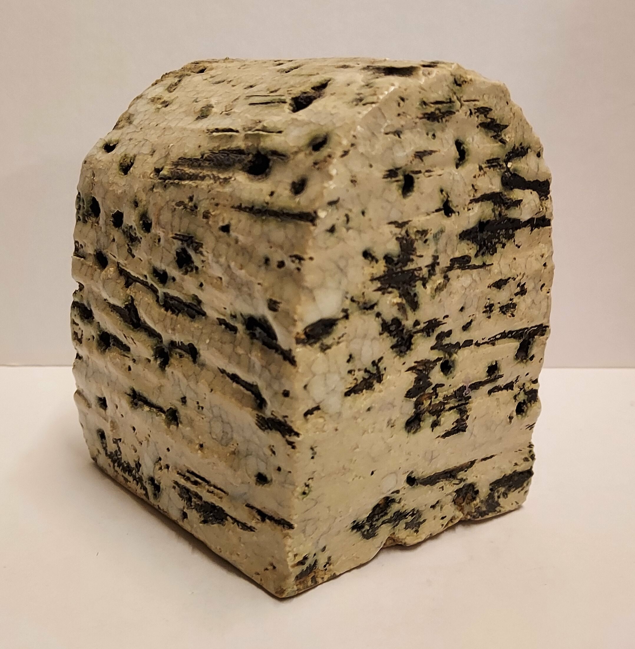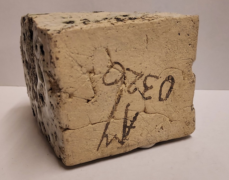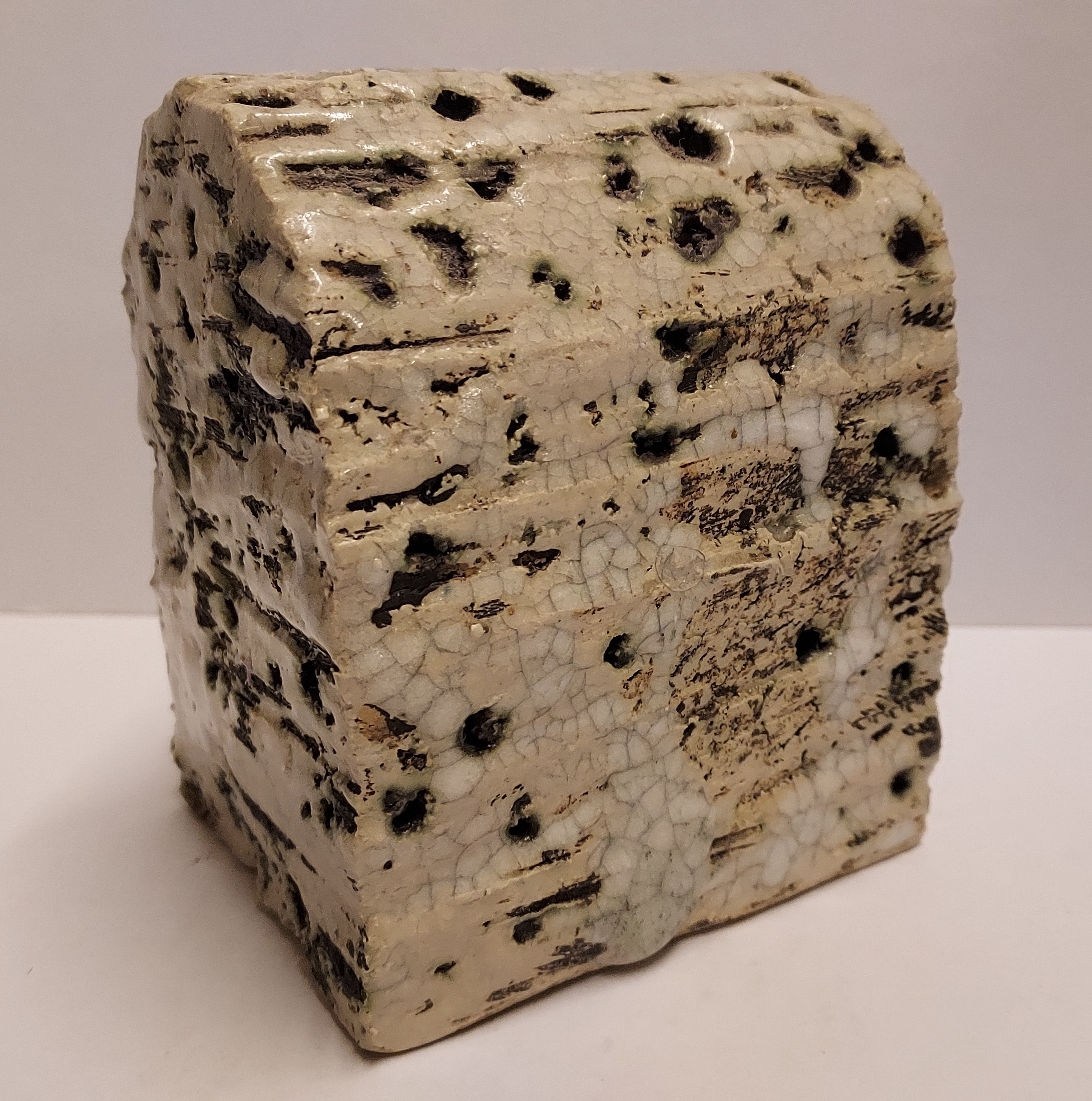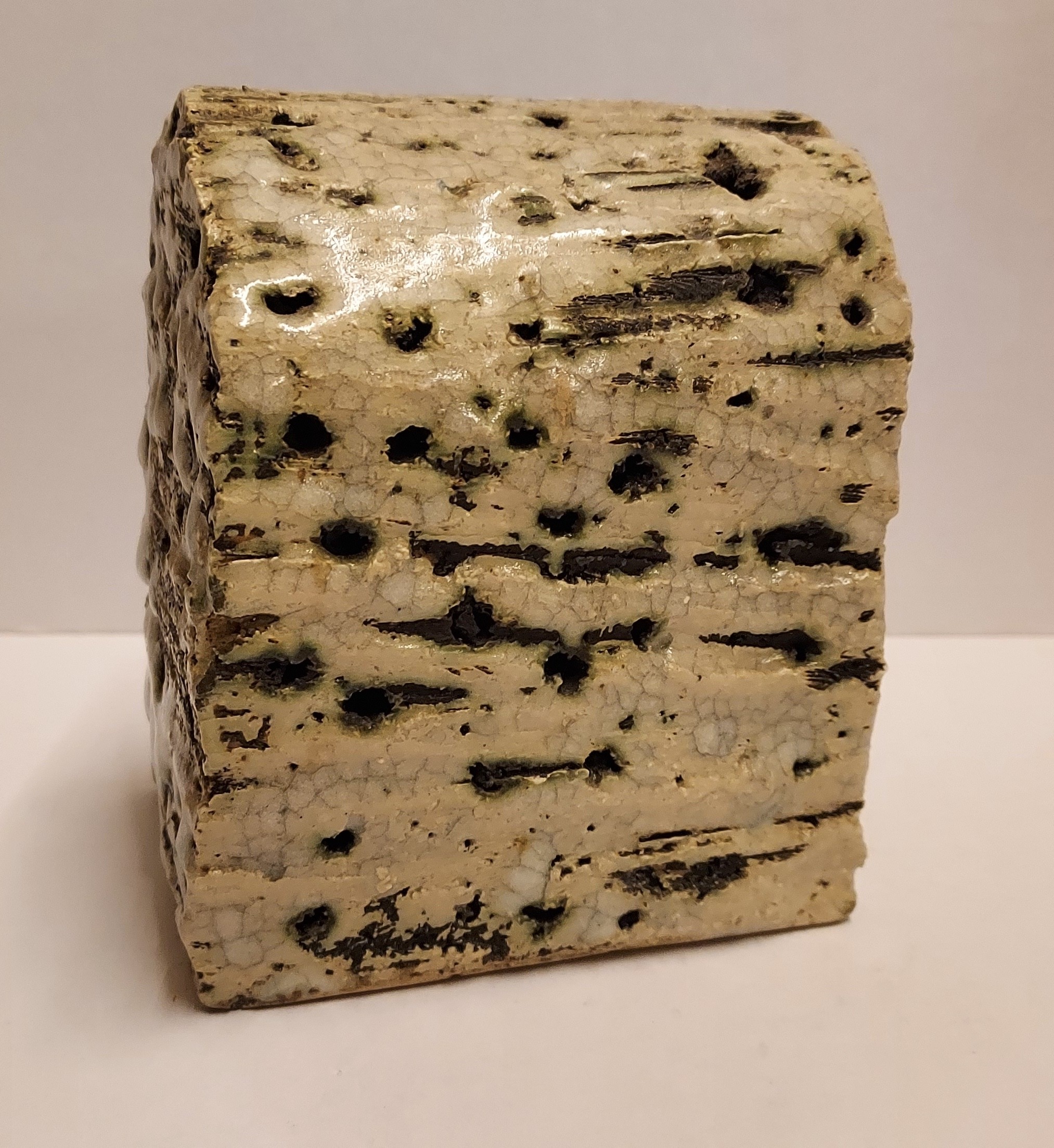 Architectural sculpture with green glaze and multiple holes. Signed on the bottom.