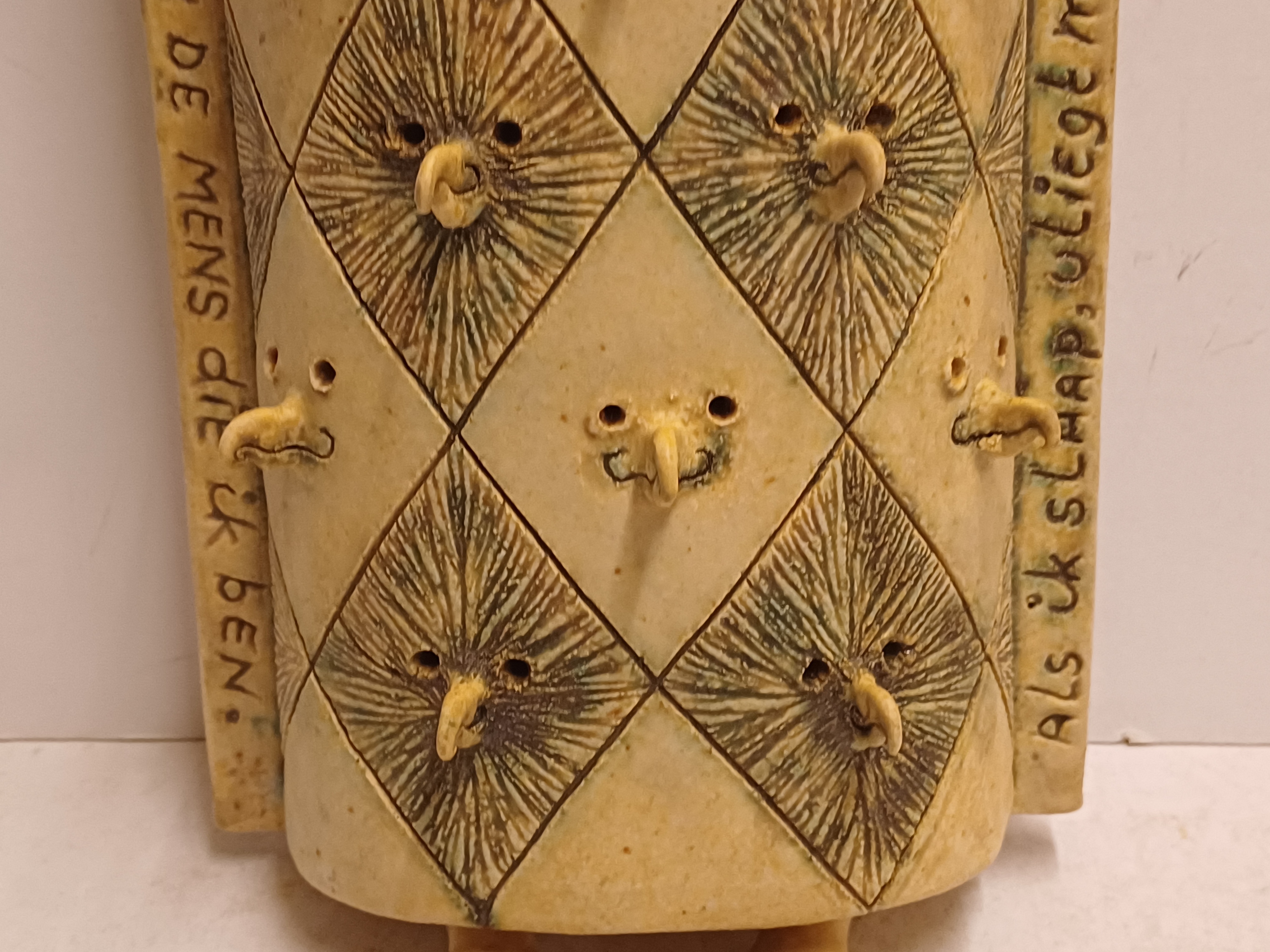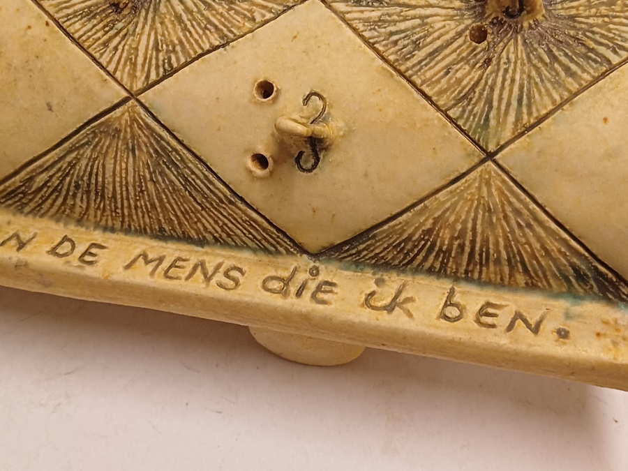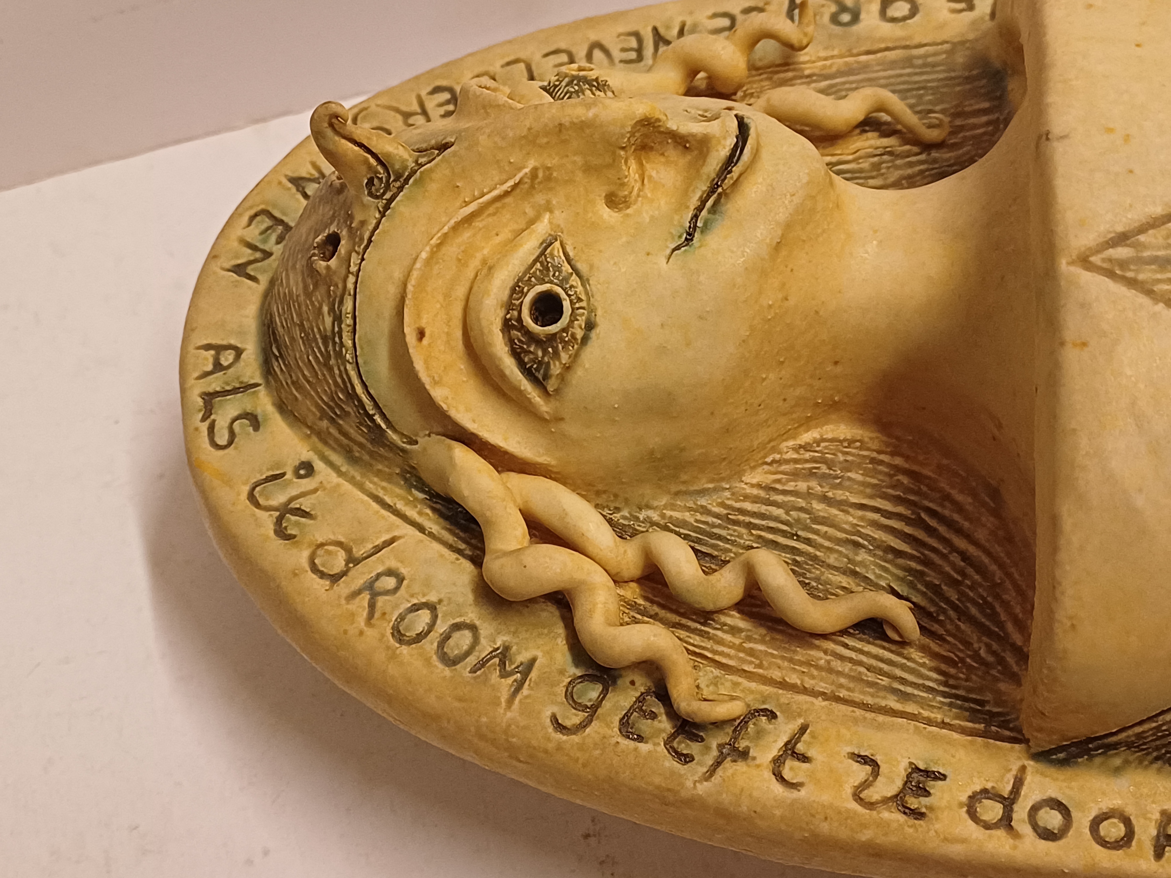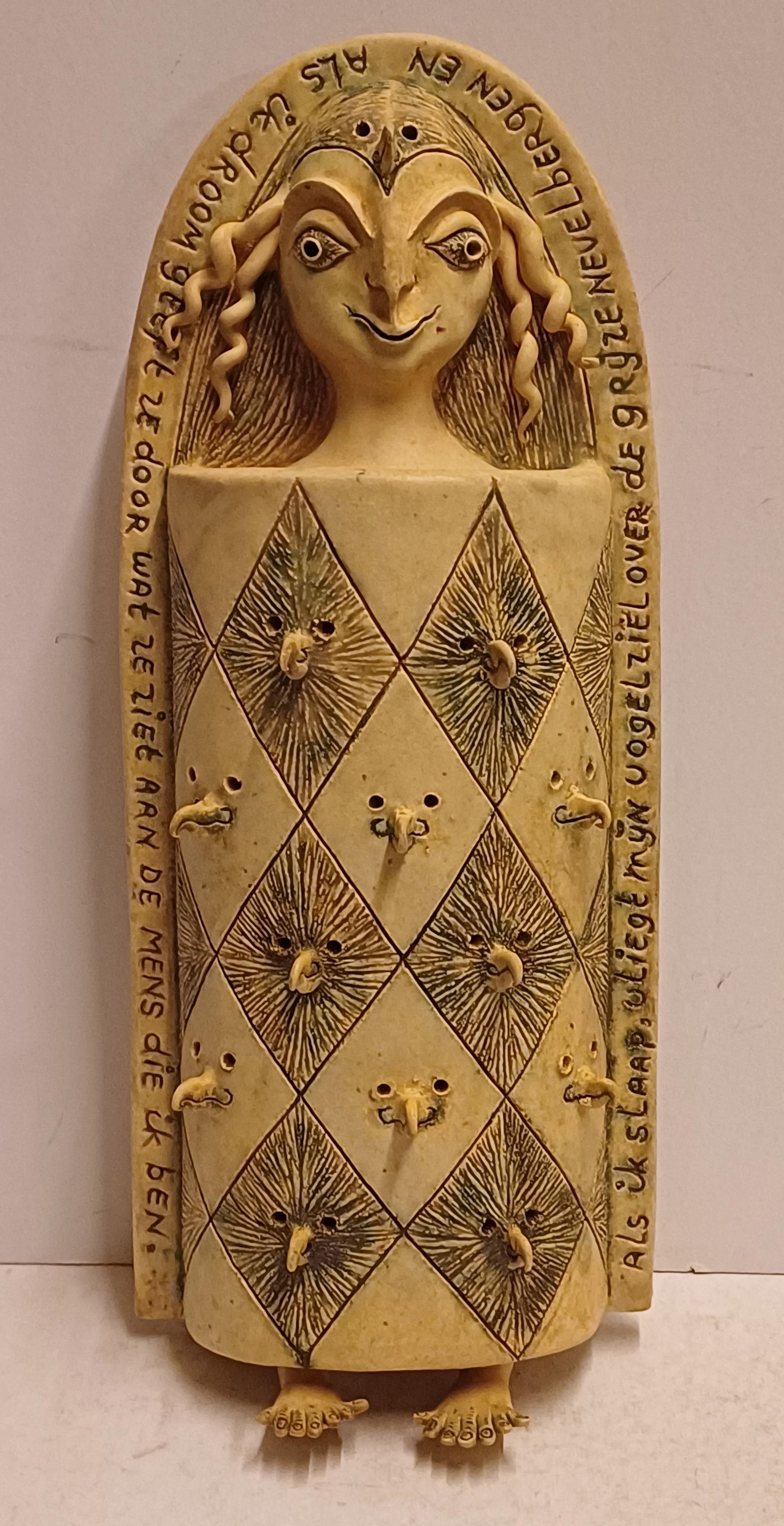 "Sleeping Girl" - Large reclining ceramic sculpture of a sleeping girl in bed. Signed and dated '72.