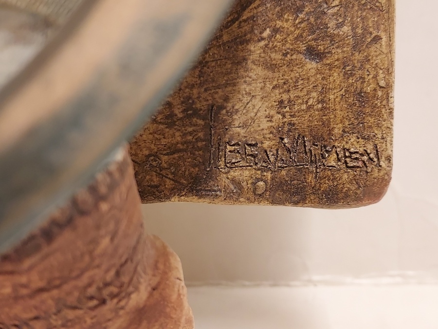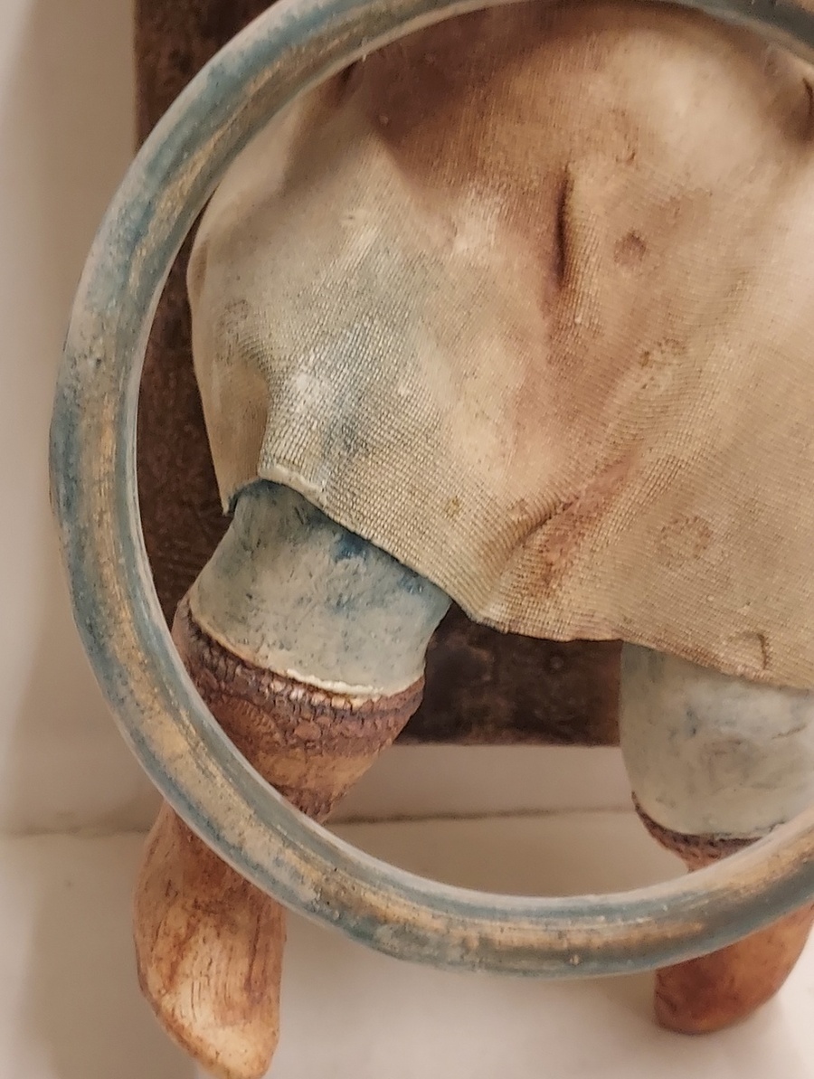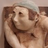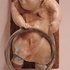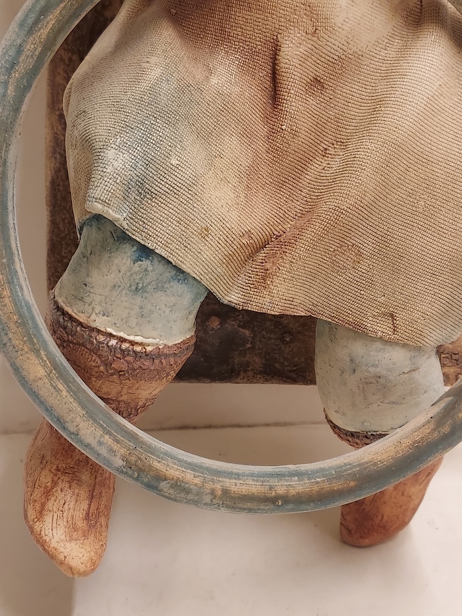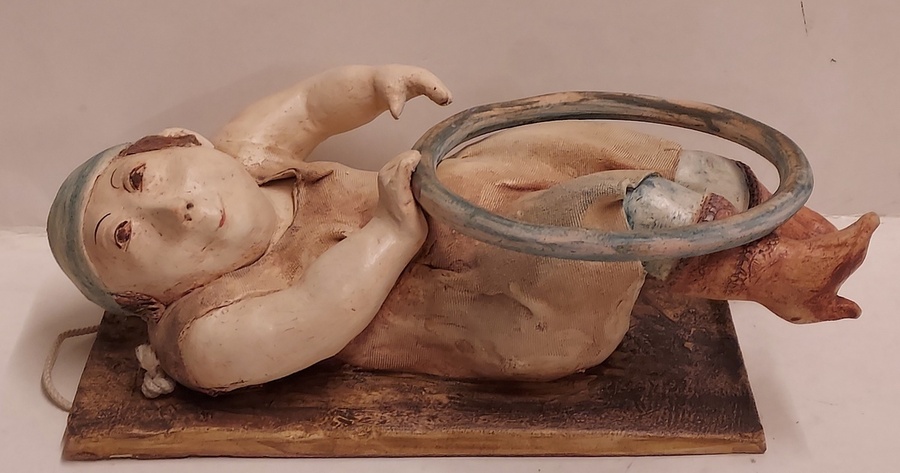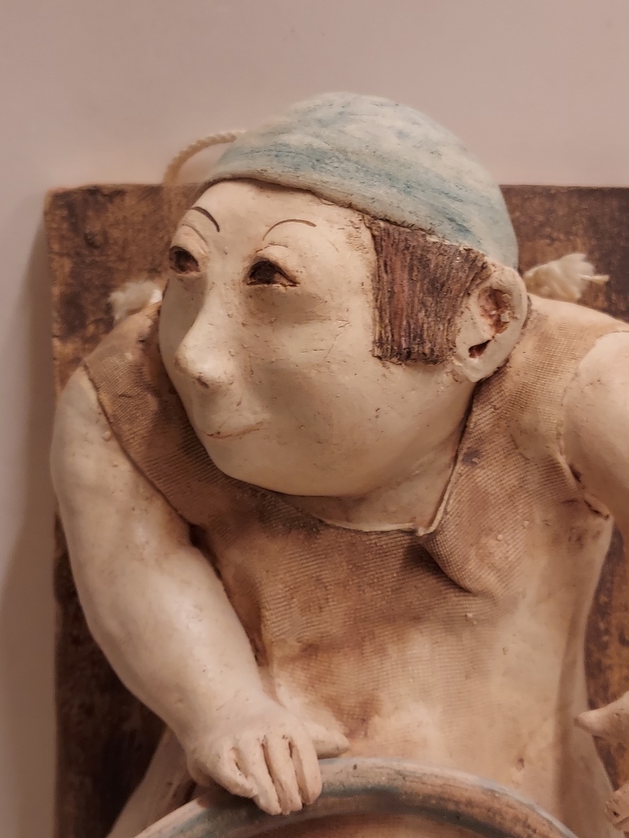 Ceramic wall sculpture of a girl with a hoop. Signed on the lower right.
