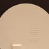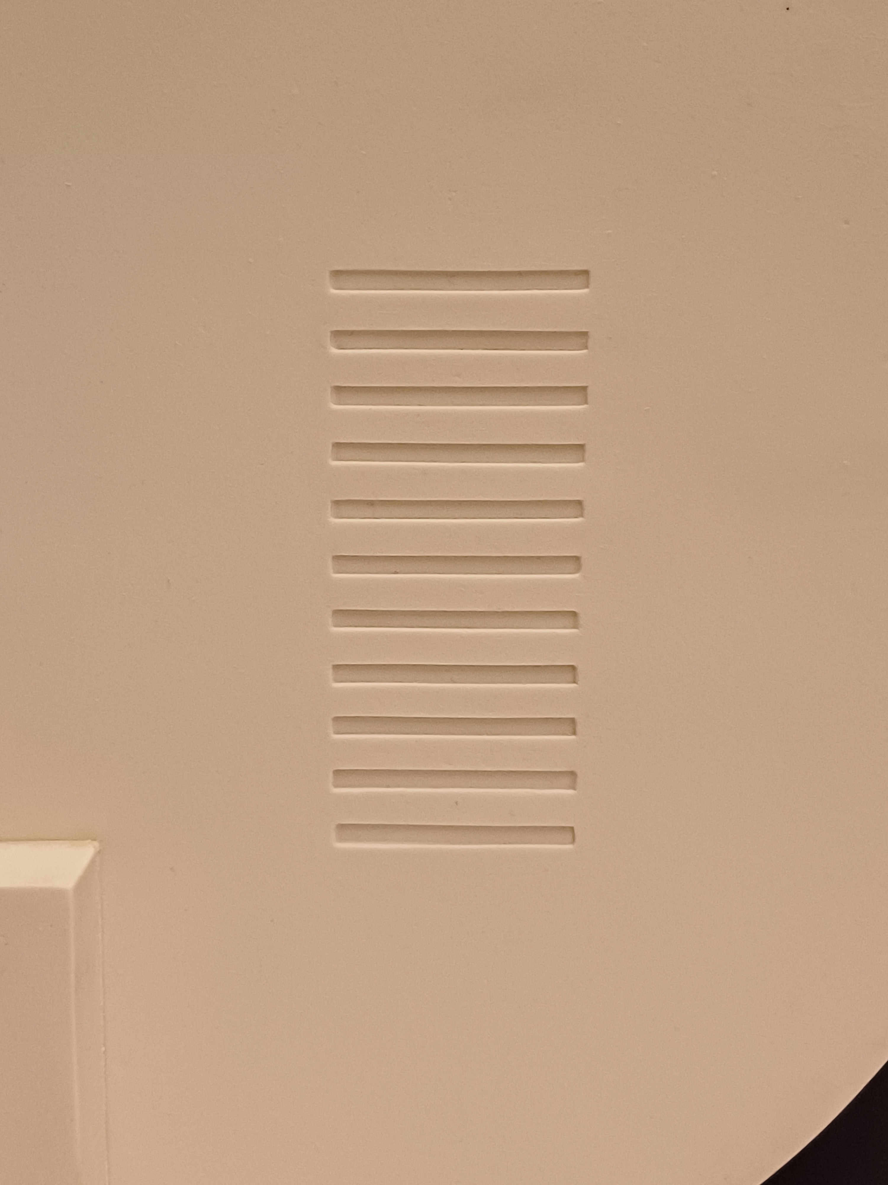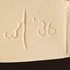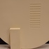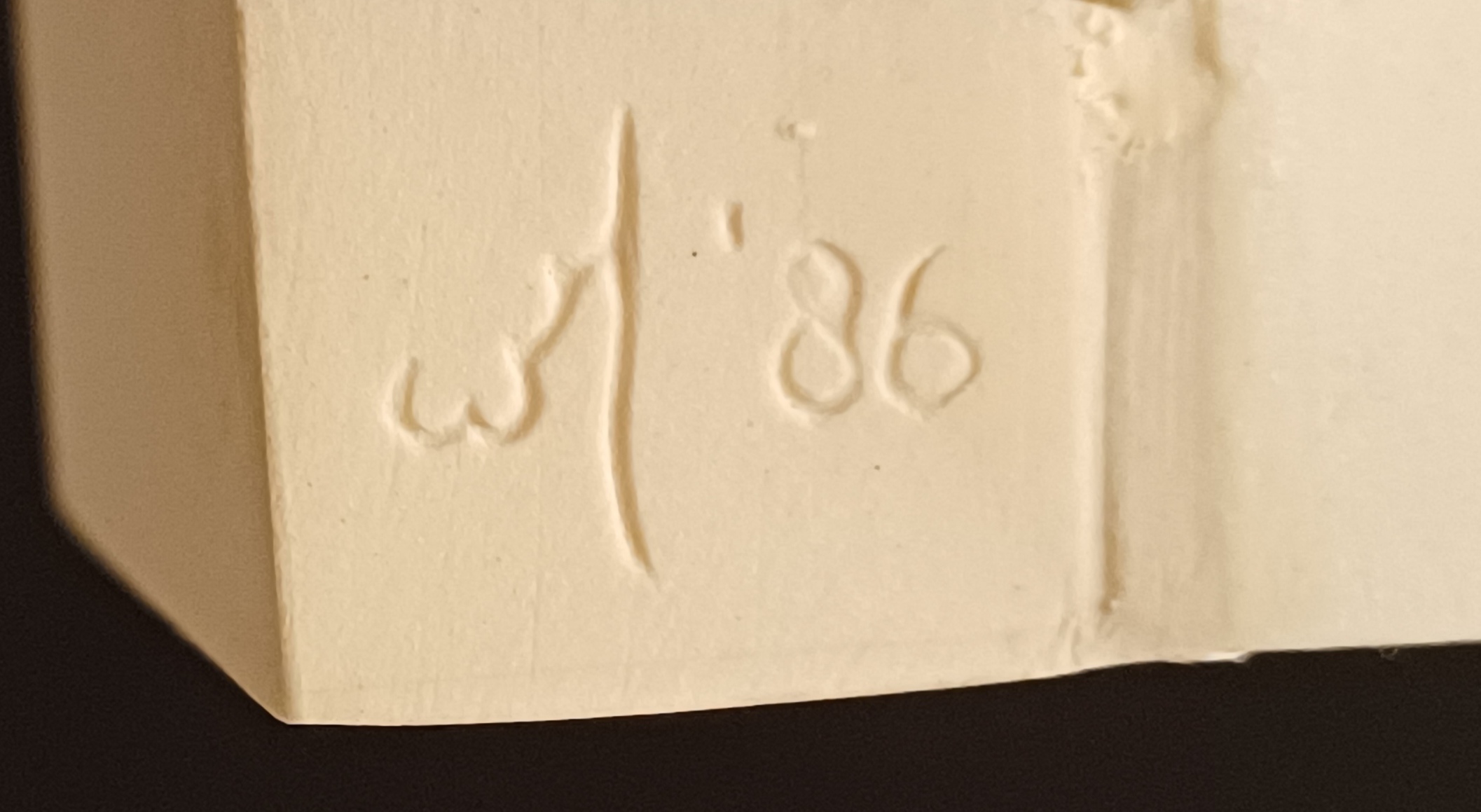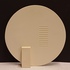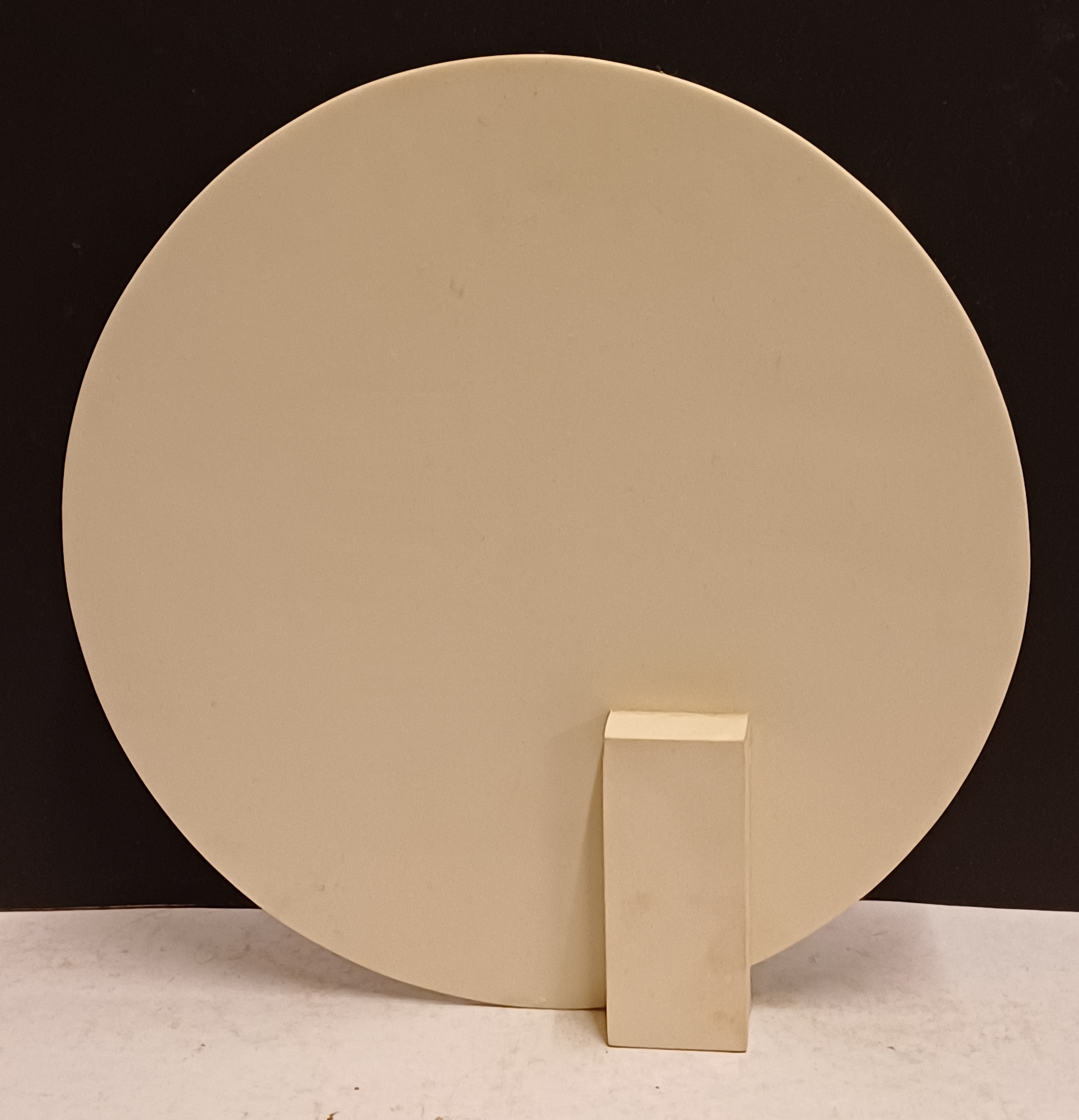 Porseleinen schijf met verticale lijnen op rechthoekig voetstuk. Aan de zijkant gesigneerd.