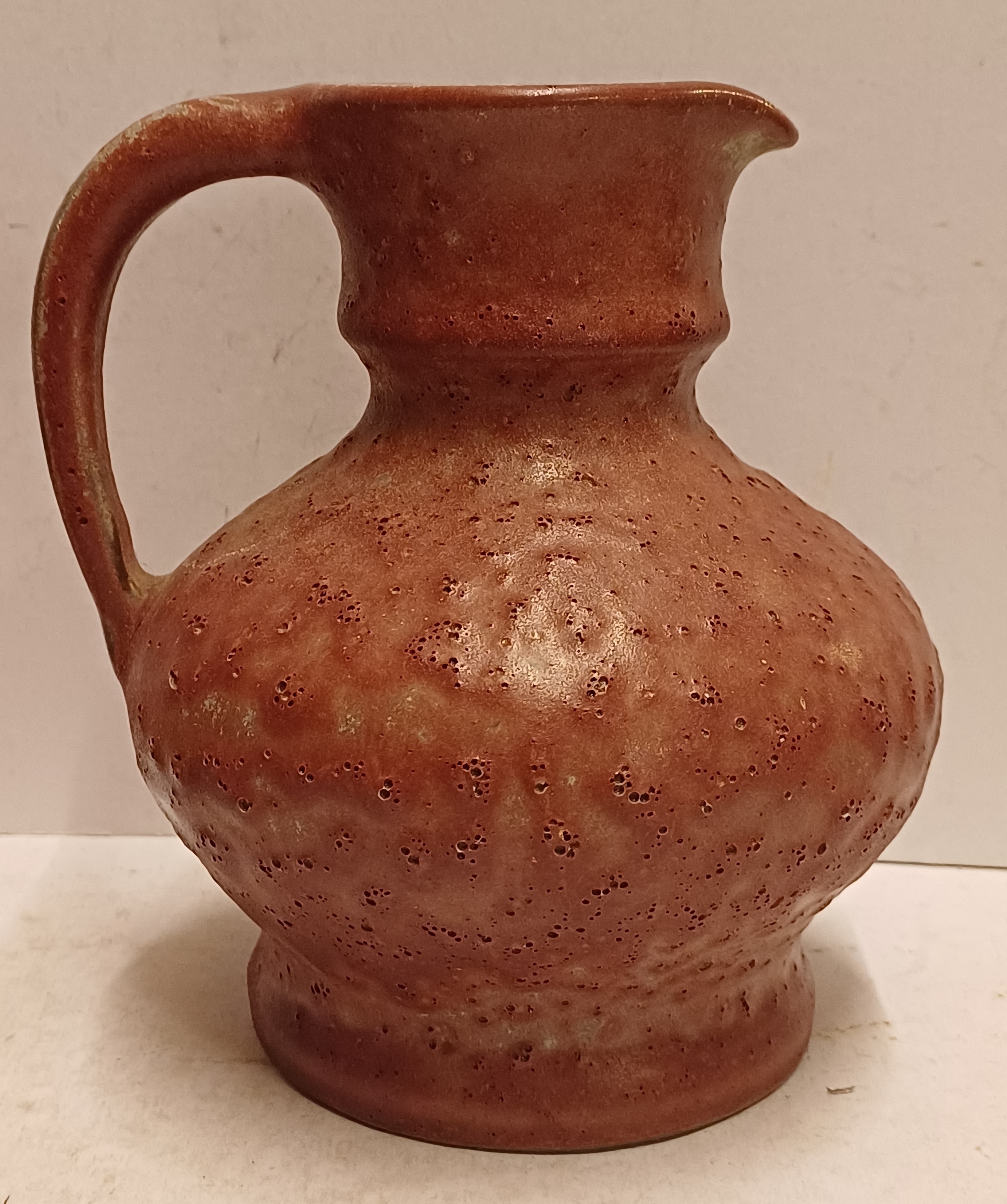 Aardewerken rood geglazuurde sierkan. Onderzijde gesigneerd.