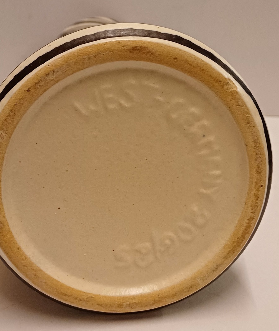 Sixties aardewerken gegoten sierkan met decor van Cilli Worsdorfer, voor Jasba.