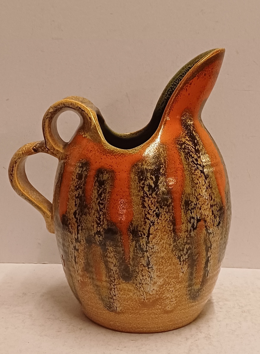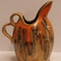 Platelen sierkan met oranje Muvelee glazuur. Onderzijde met fabrieksmerk.