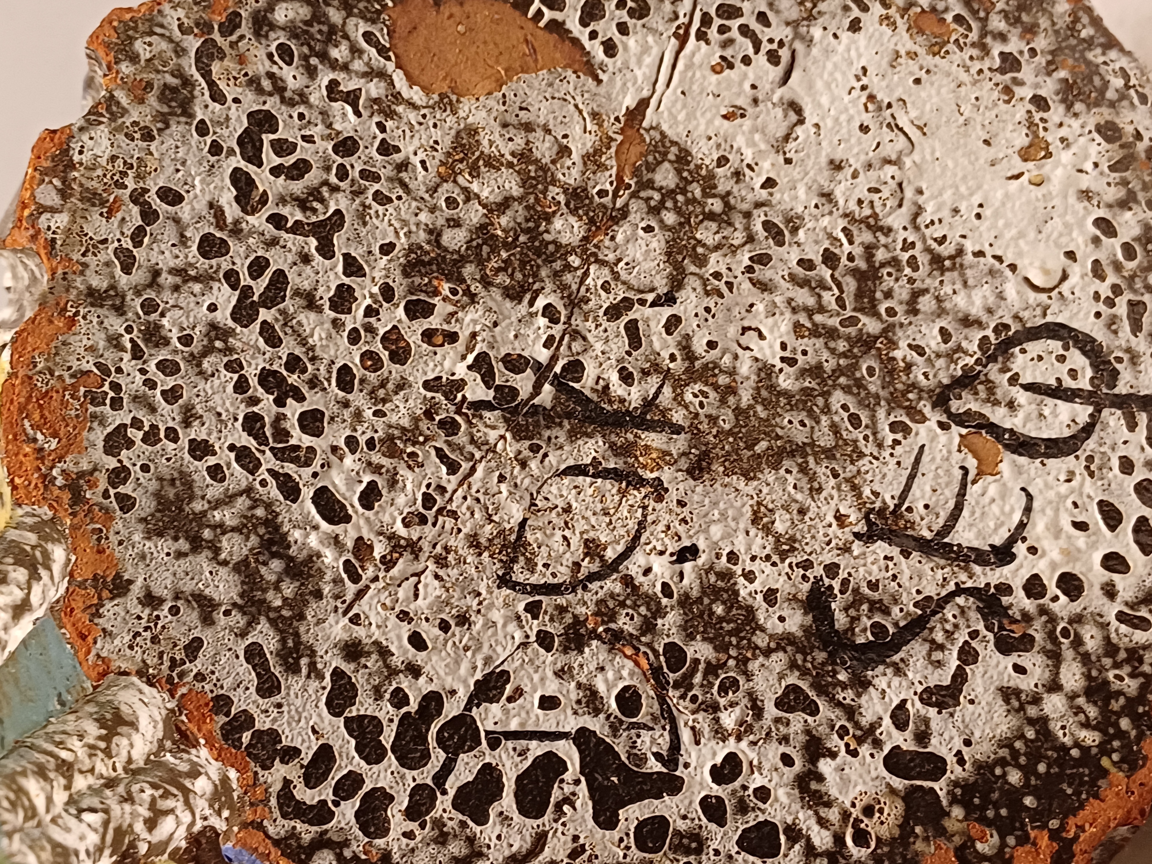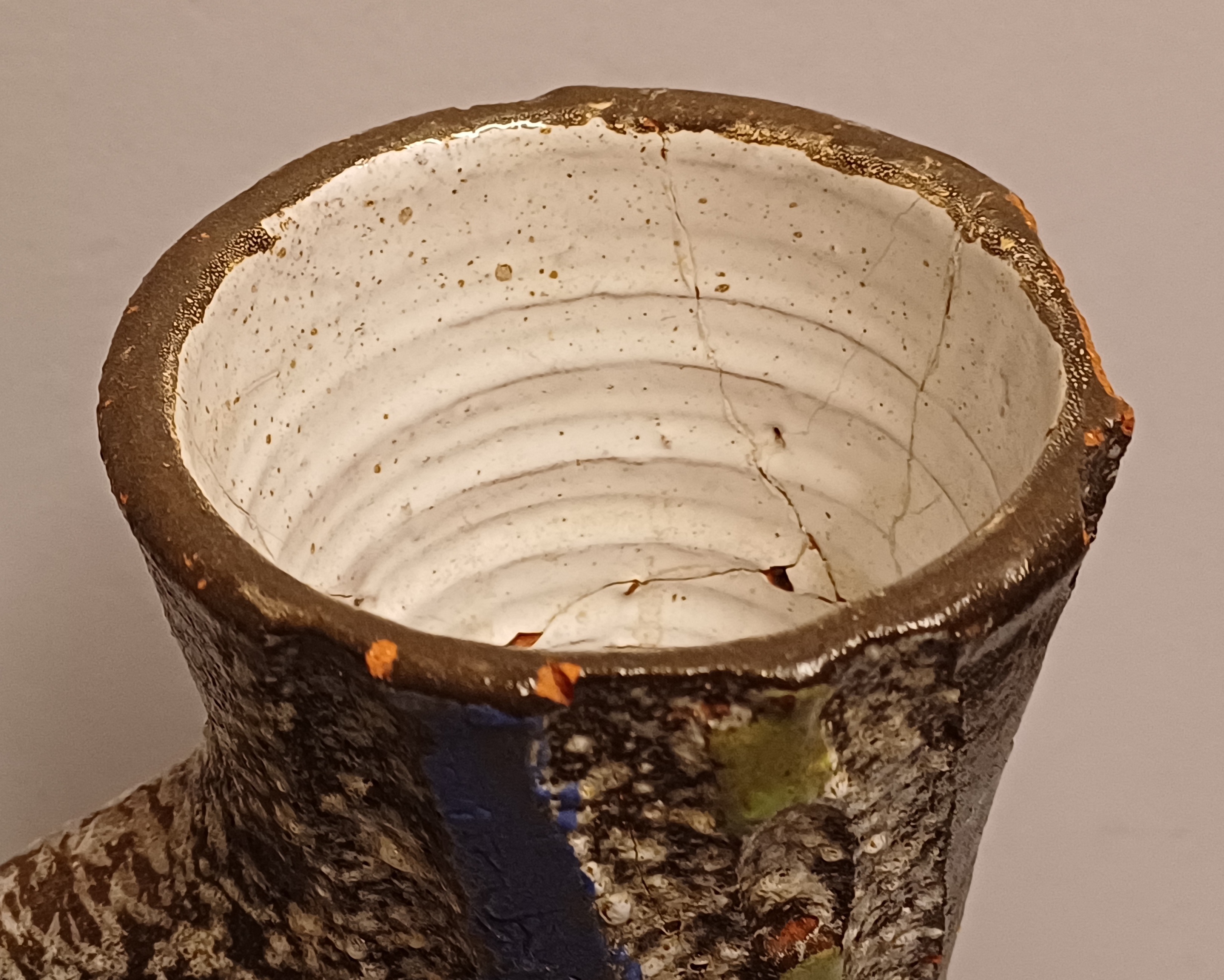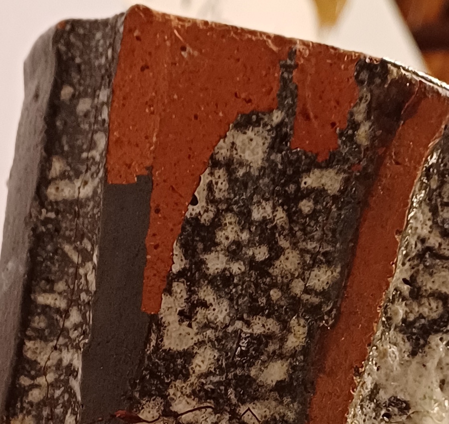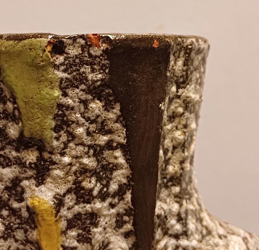 Gelijmde scherf aan de bovenkant, en meerdere chips.