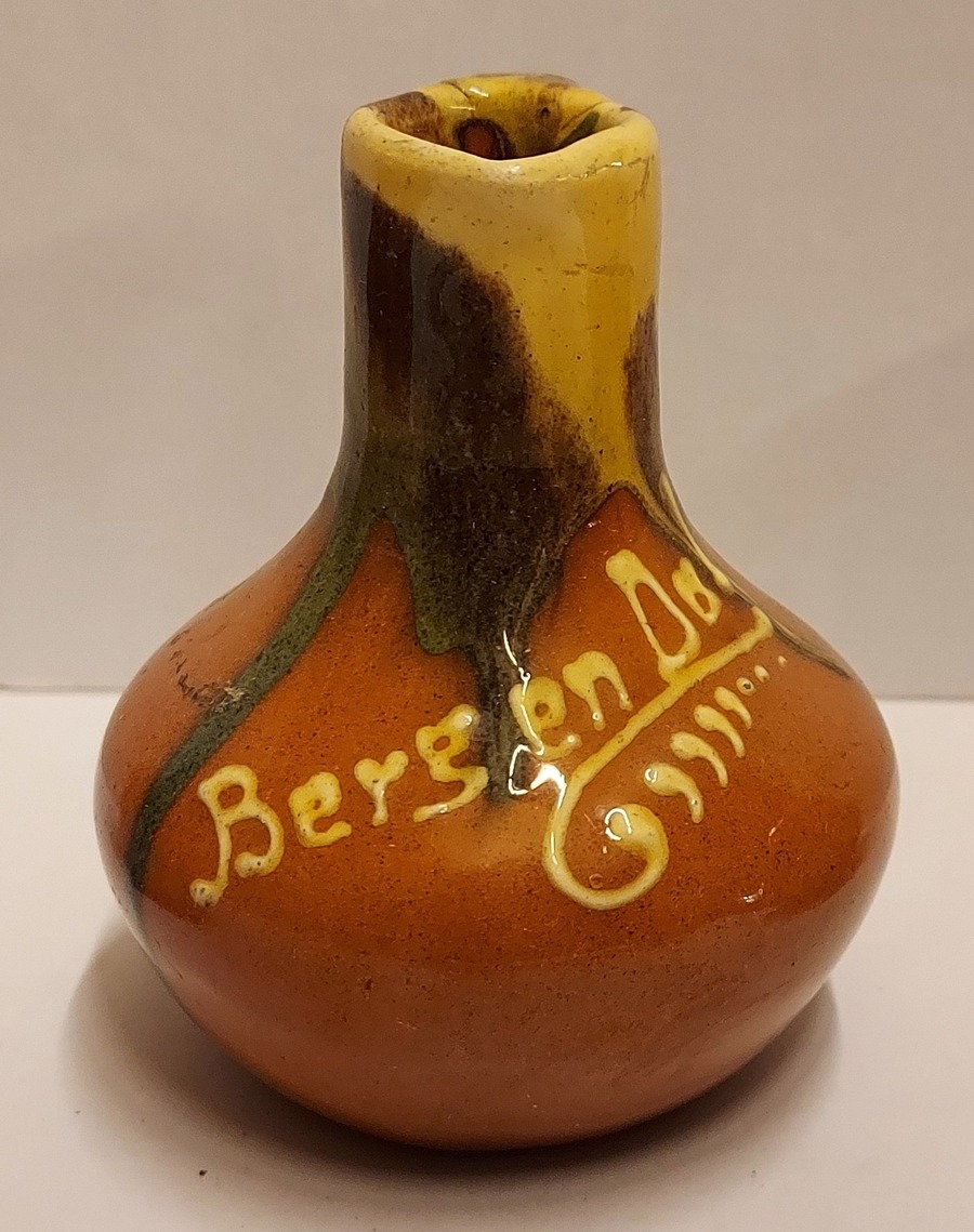 Terracotta jug with green-yellow glaze on the upper side. The place name Berg en Dal inscribed in slip.