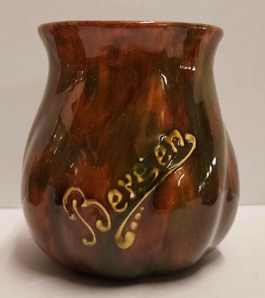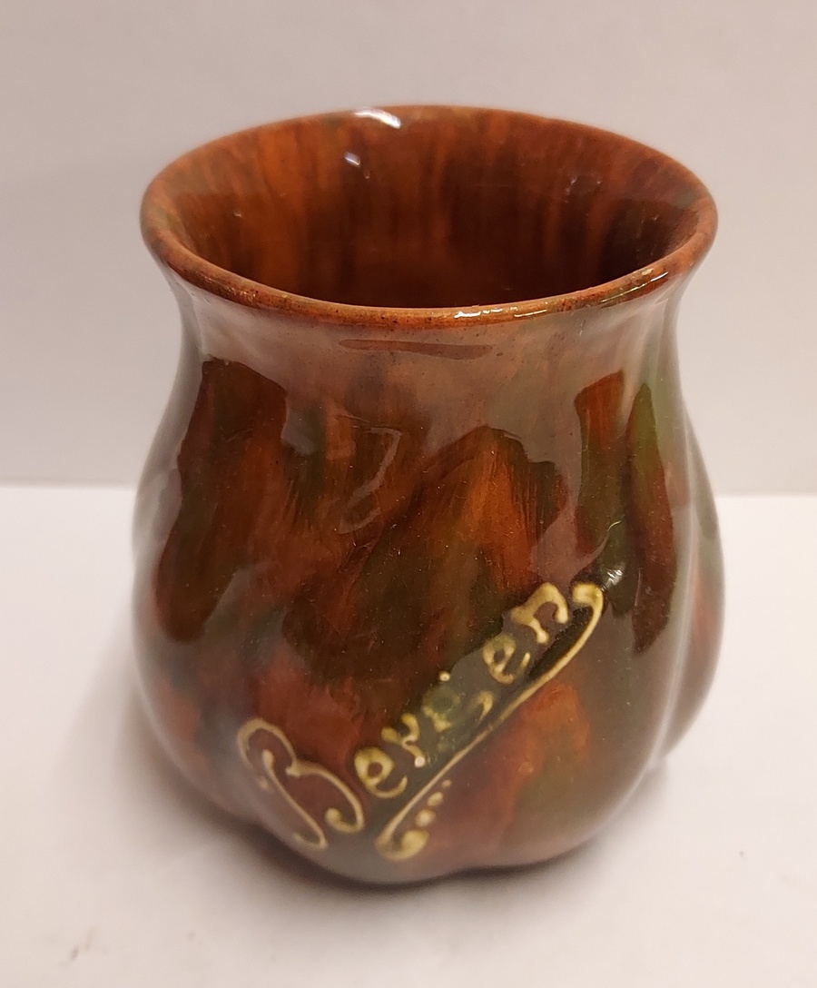 Terracotta vase with slip decor, place name Bergen. Signed on the bottom.
