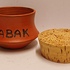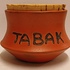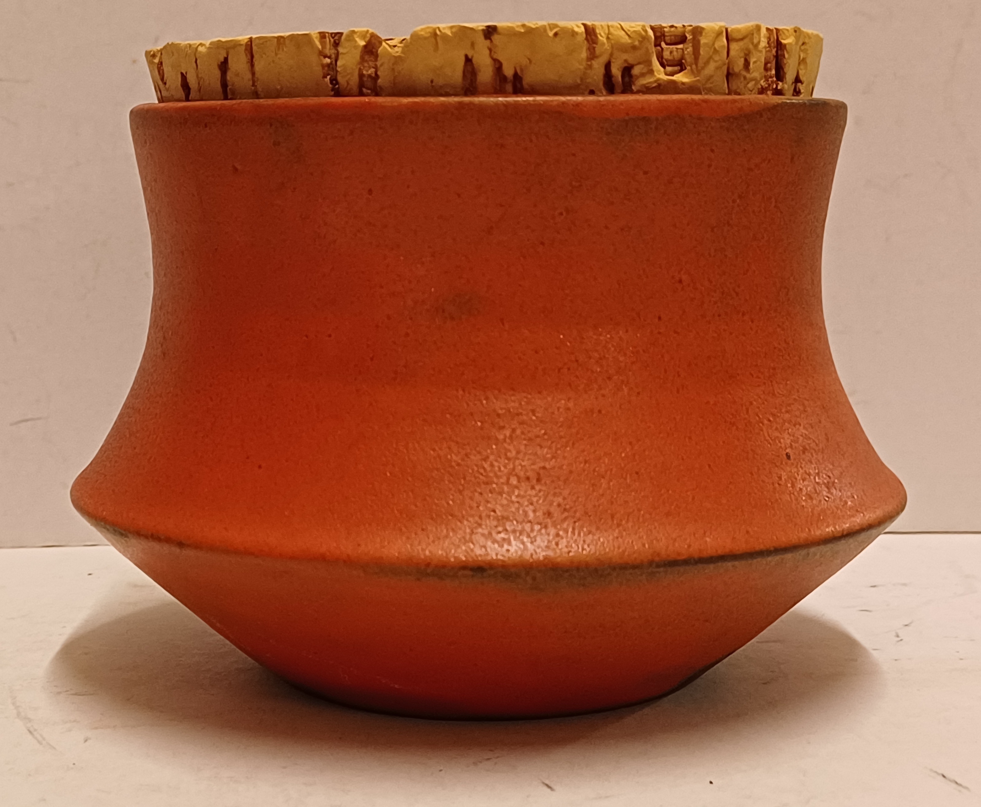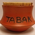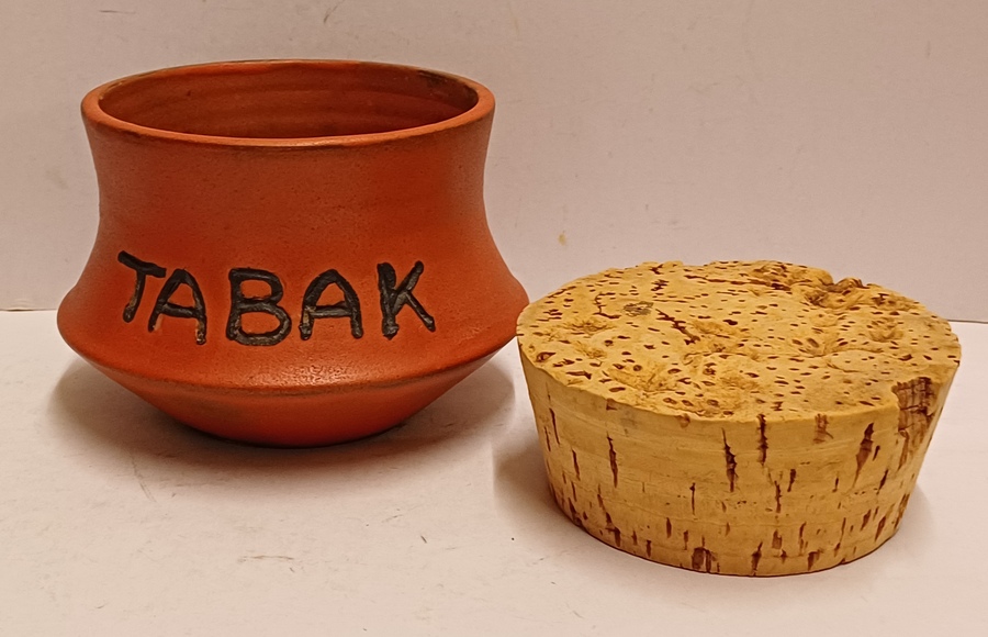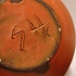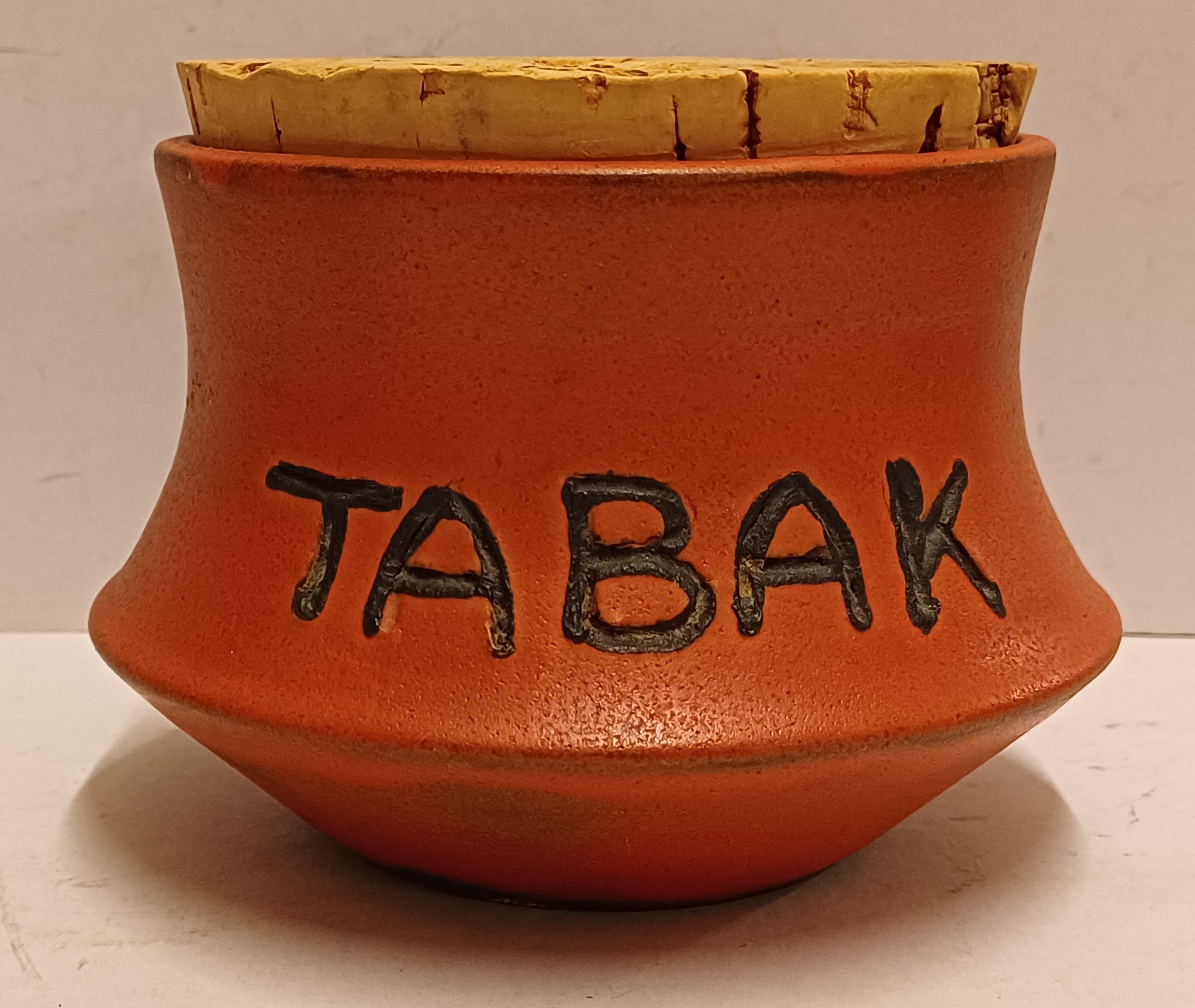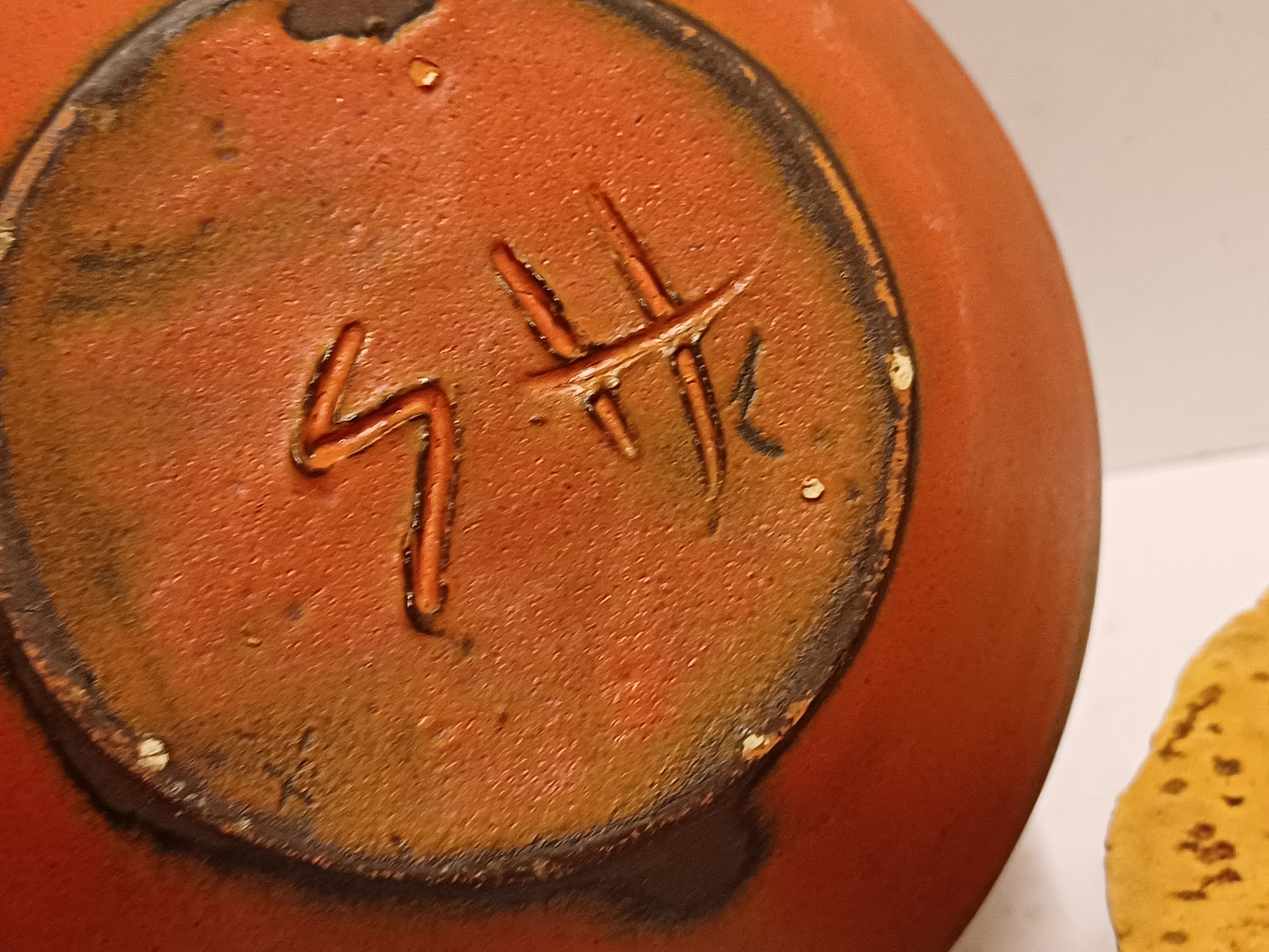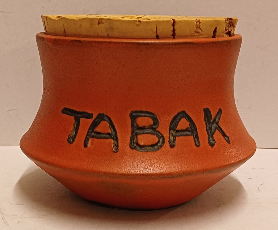 Aardewerken tabakspot met oranje glazuur. ~onderzijde met monogram.