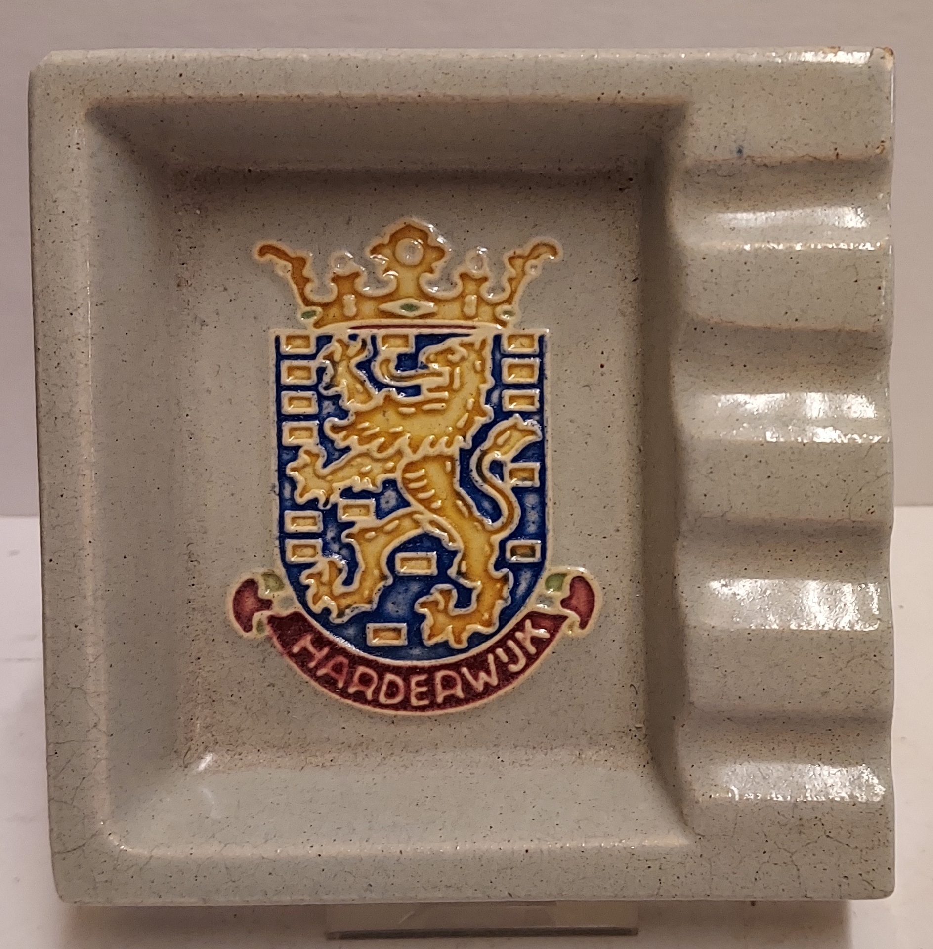 Cloisonné ashtray with the coat of arms of Harderwijk. Bottom with factory mark.