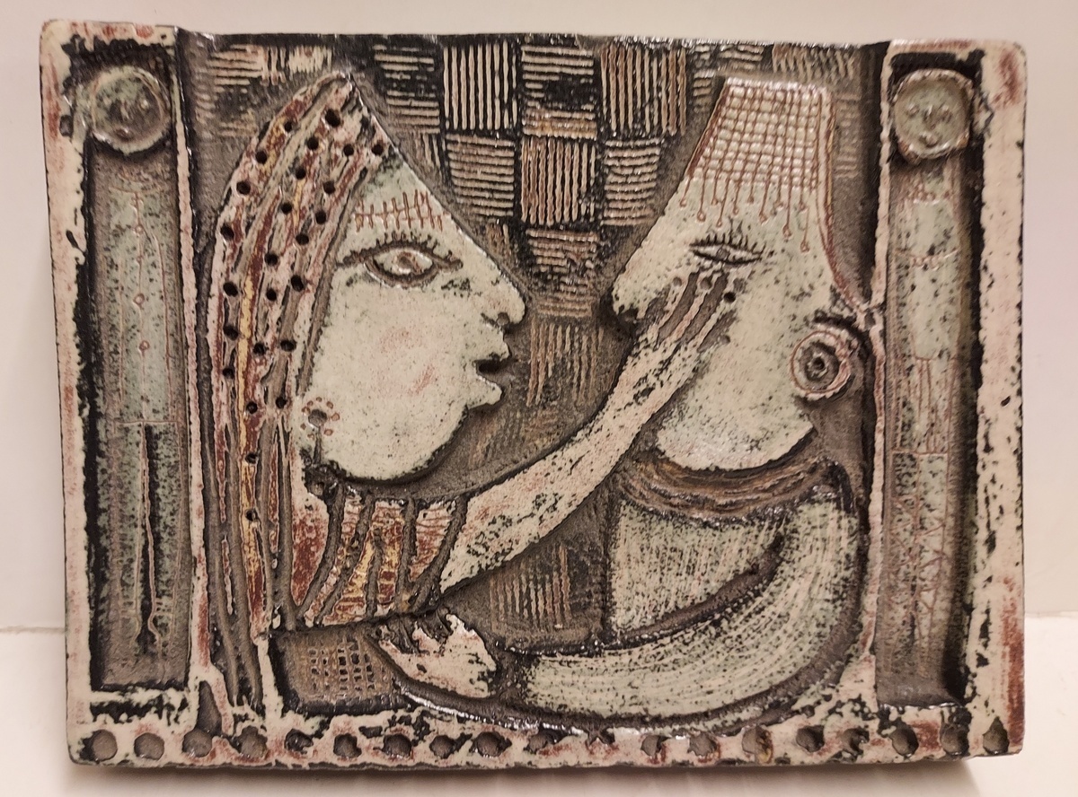 Depiction of 2 puppet show puppets.