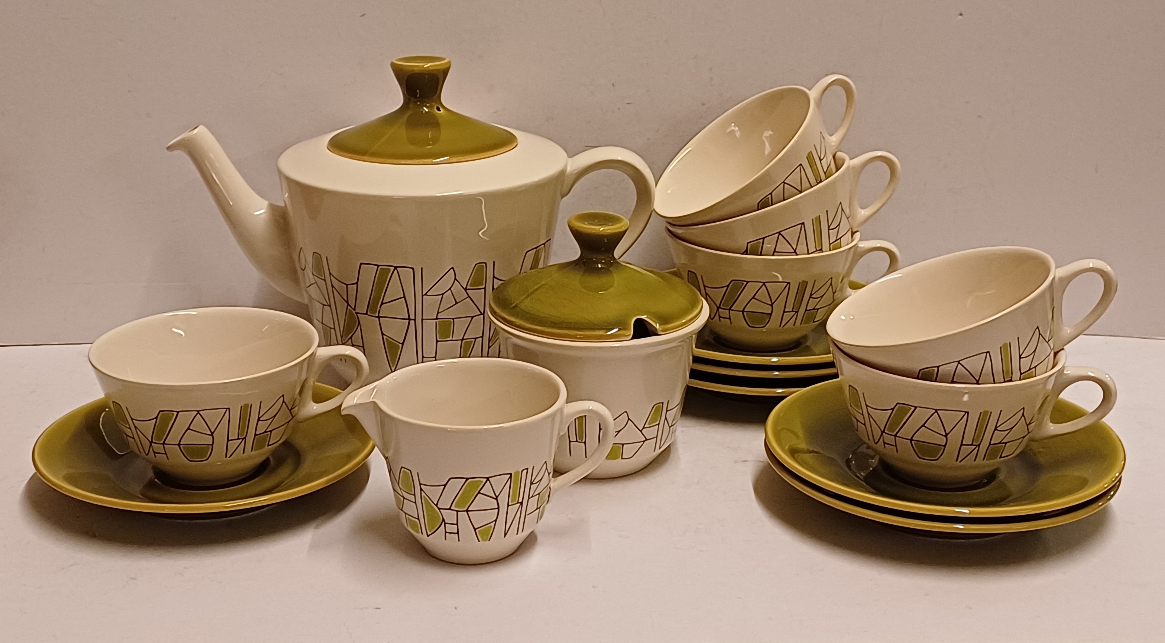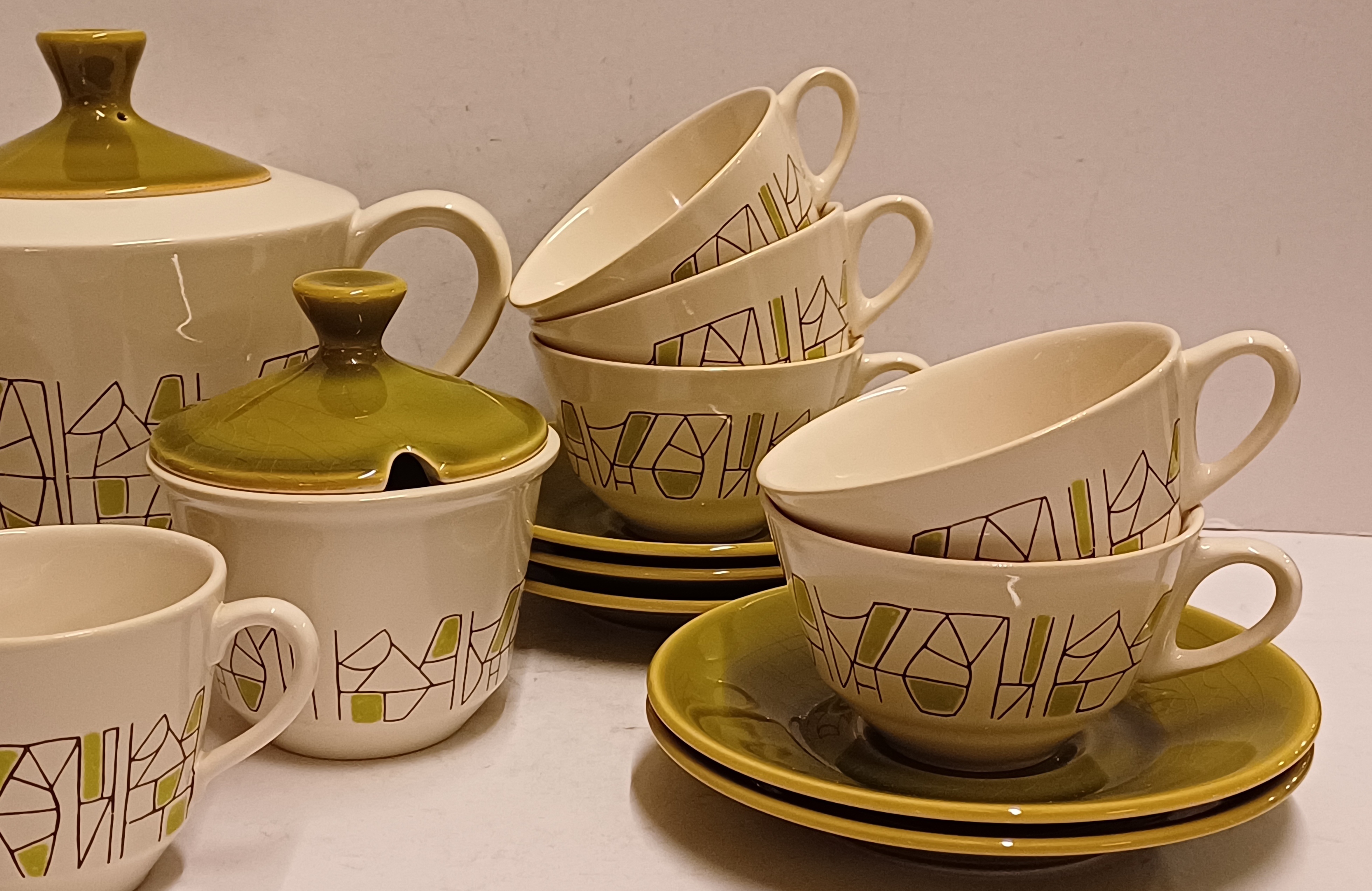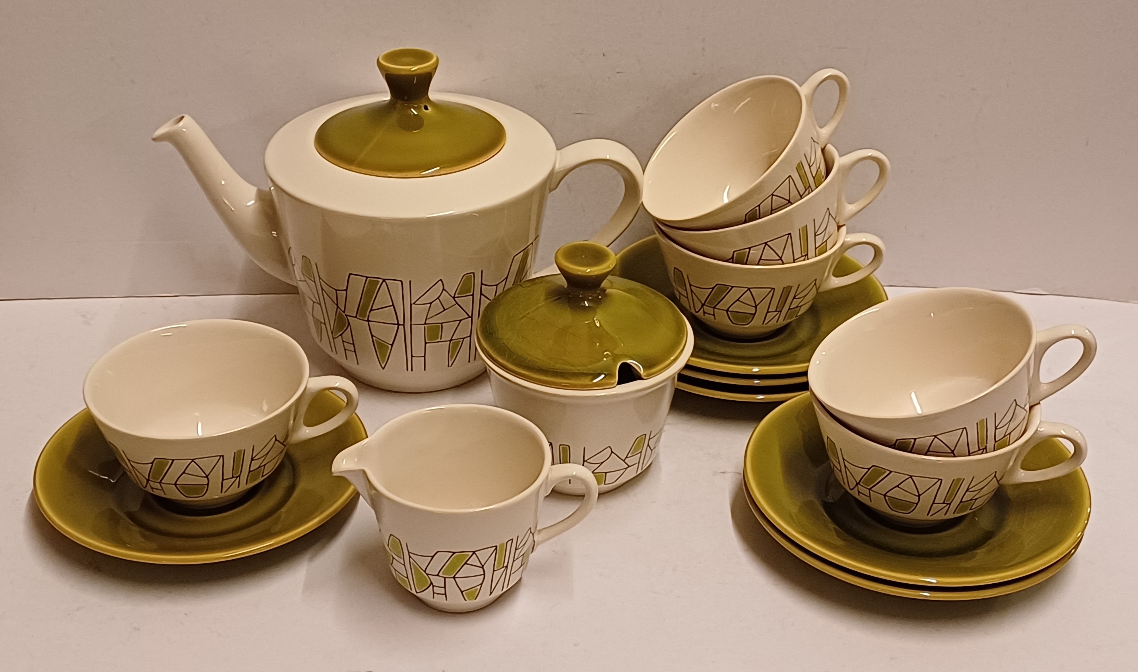 6 delig theeservies model Jubilant met decor 500 in groen. Onderzijdes met blindmerk.