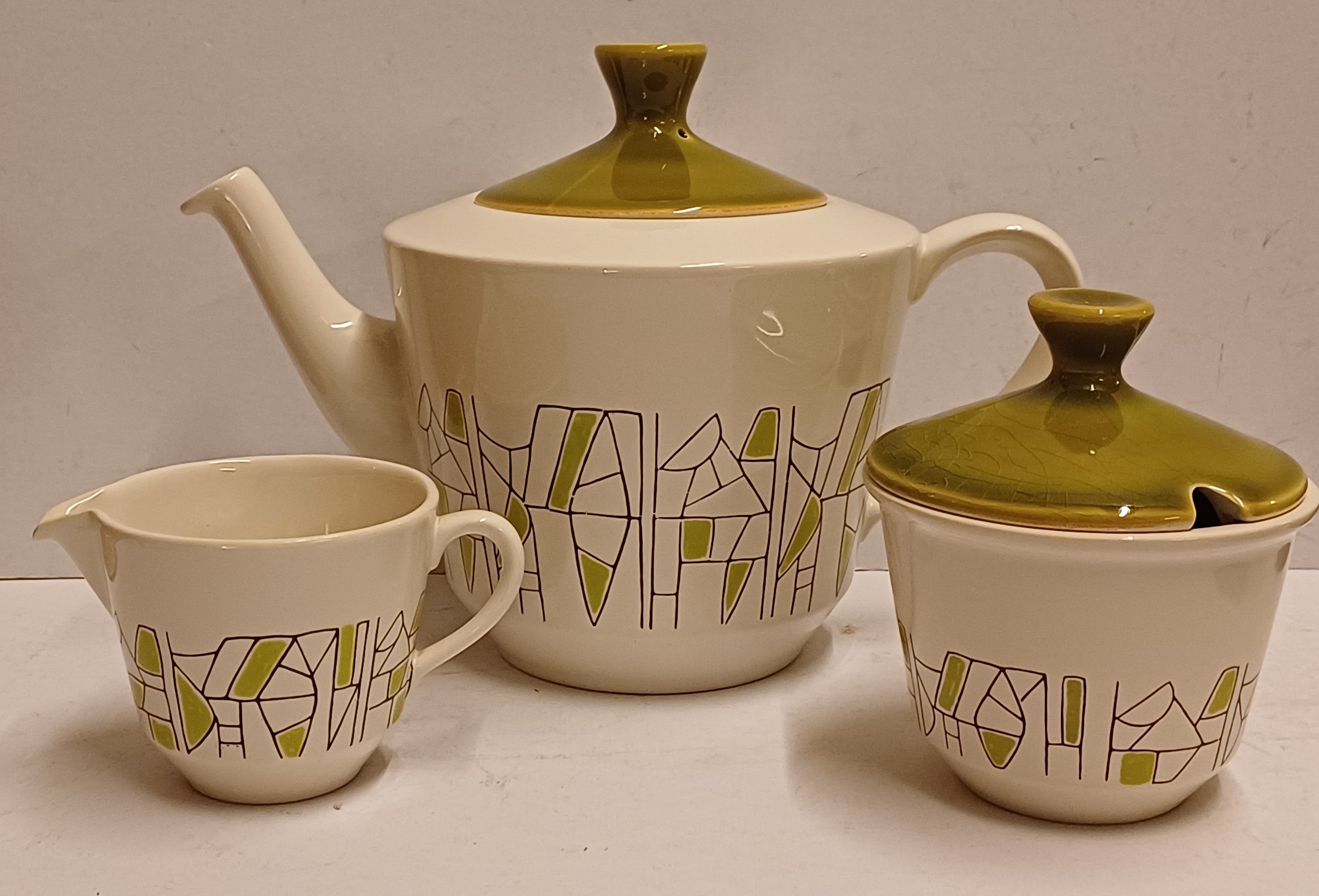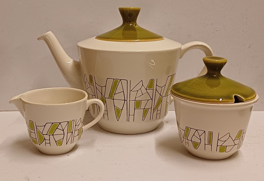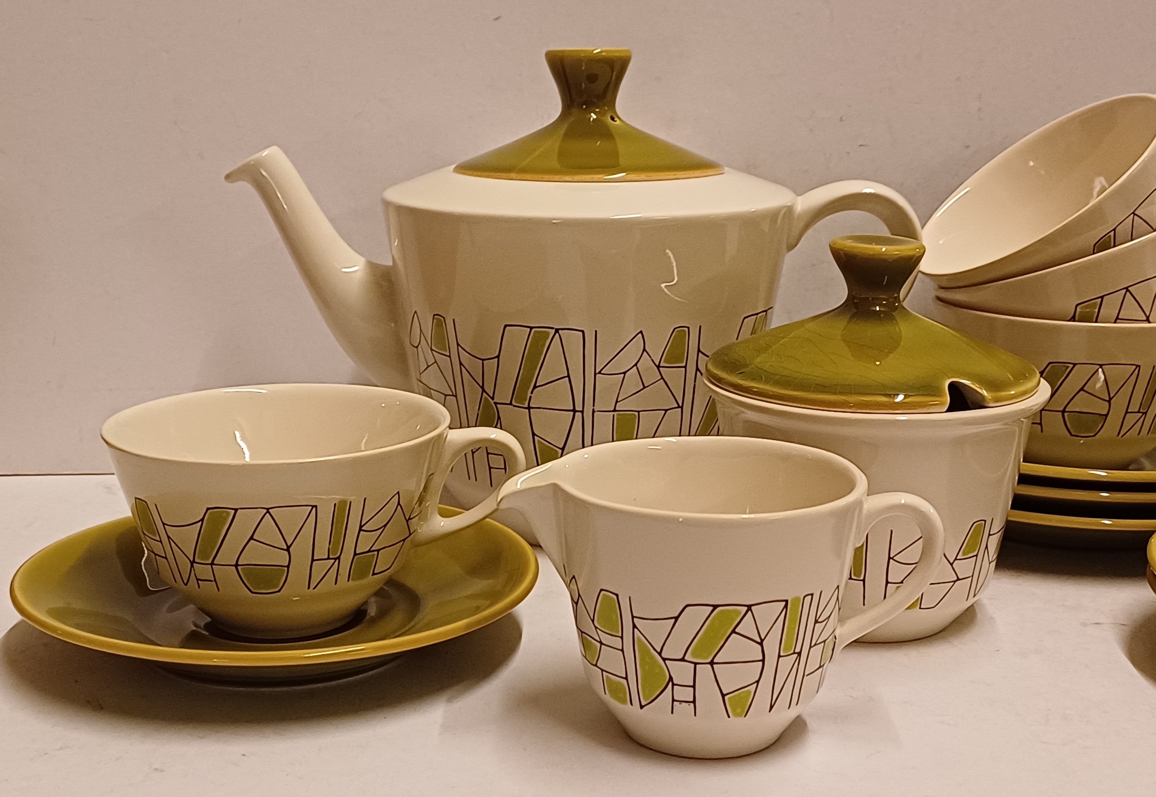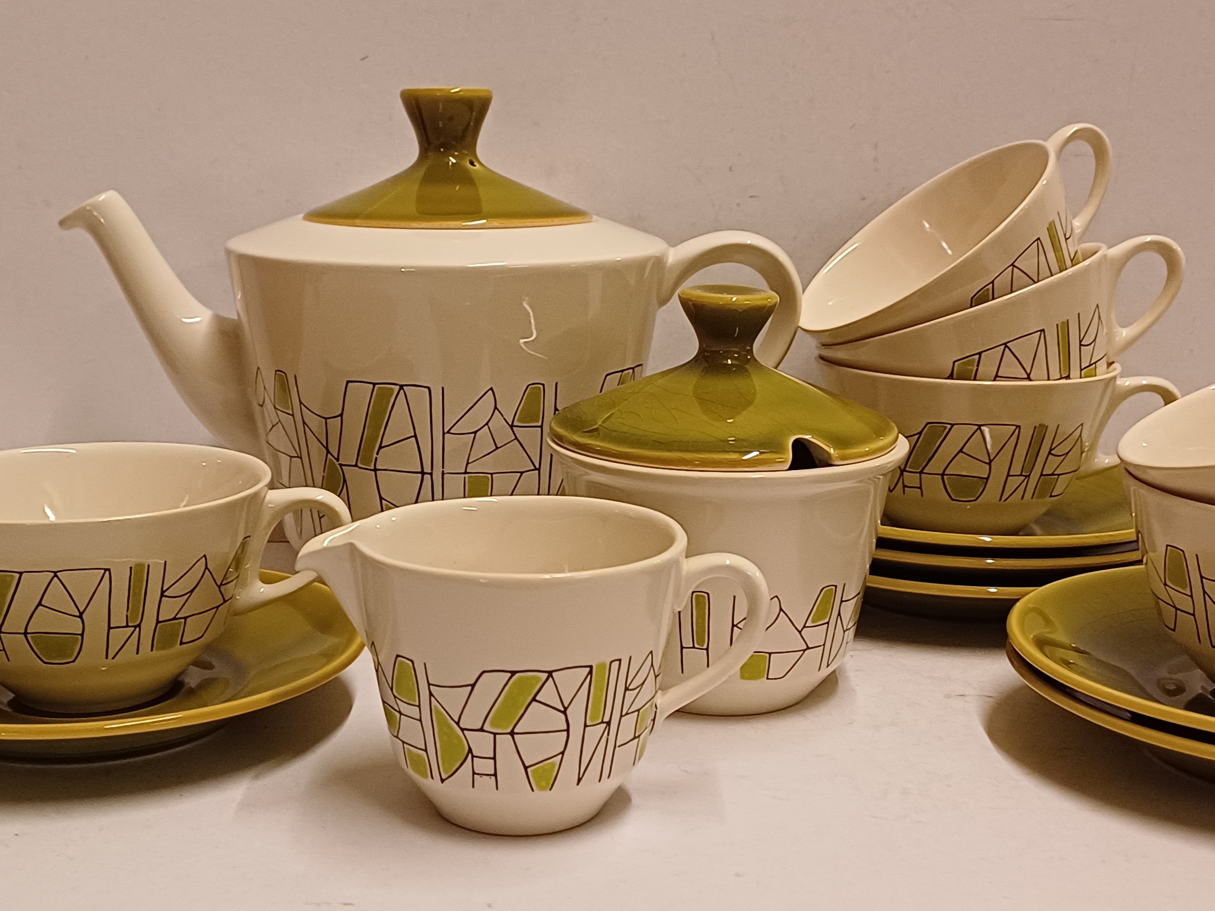 6 delig theeservies model Jubilant met decor 500 in groen. Onderzijdes met blindmerk.