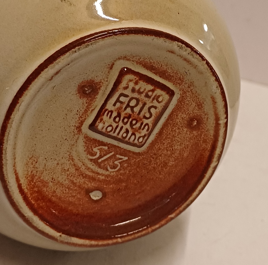 Vaas met grijze glazuur. Onderzijde met fabrieksmerk en modelnummer.